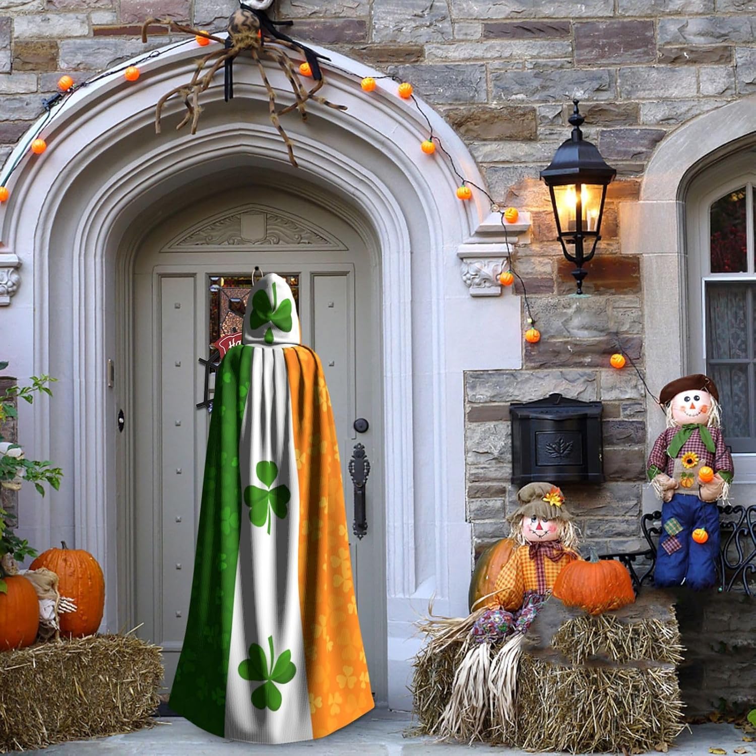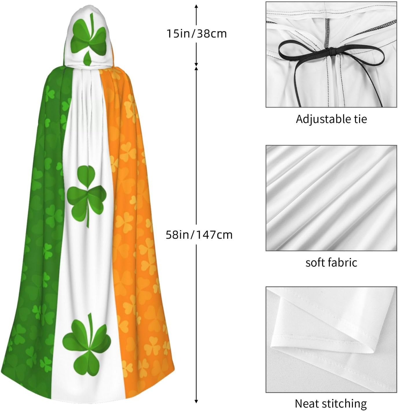 Materiale e design della bandiera irlandese: il tessuto è realizzato in 100% fibra di poliestere (poliestere) tessuto di alta qualità, morbido e confortevole. Il design con cappuccio non è solo elegante e bello, ma fornisce anche calore extra alla testa e al collo. \r Caratteristiche del prodotto: il poncho oversize con cappuccio è un poncho con cappuccio senza lacci, senza cerniera, comodo realizzato in tessuto lungo, resistente e non prurito. \r Dimensioni del prodotto: il cappello misura 38,1 cm di altezza, 147,3 cm di lunghezza, 154 cm di larghezza. \r Adatto per occasioni: feste di Natale, feste di Halloween, feste in costume, celebrazioni pagane. Ideale per travestimenti, cosplay, costumi da scena, streghe, vampiri, royalty, scelta regalo perfetta per amici o familiari. \r Persone applicabili: adulti, unisex.