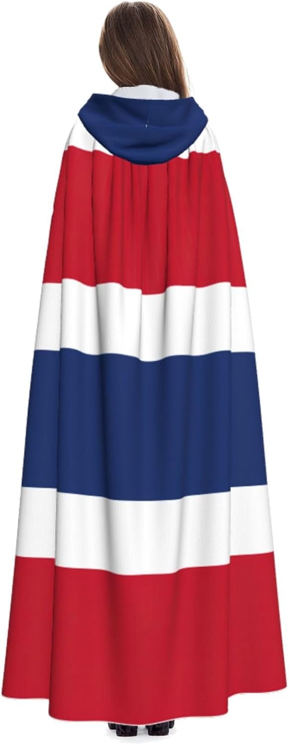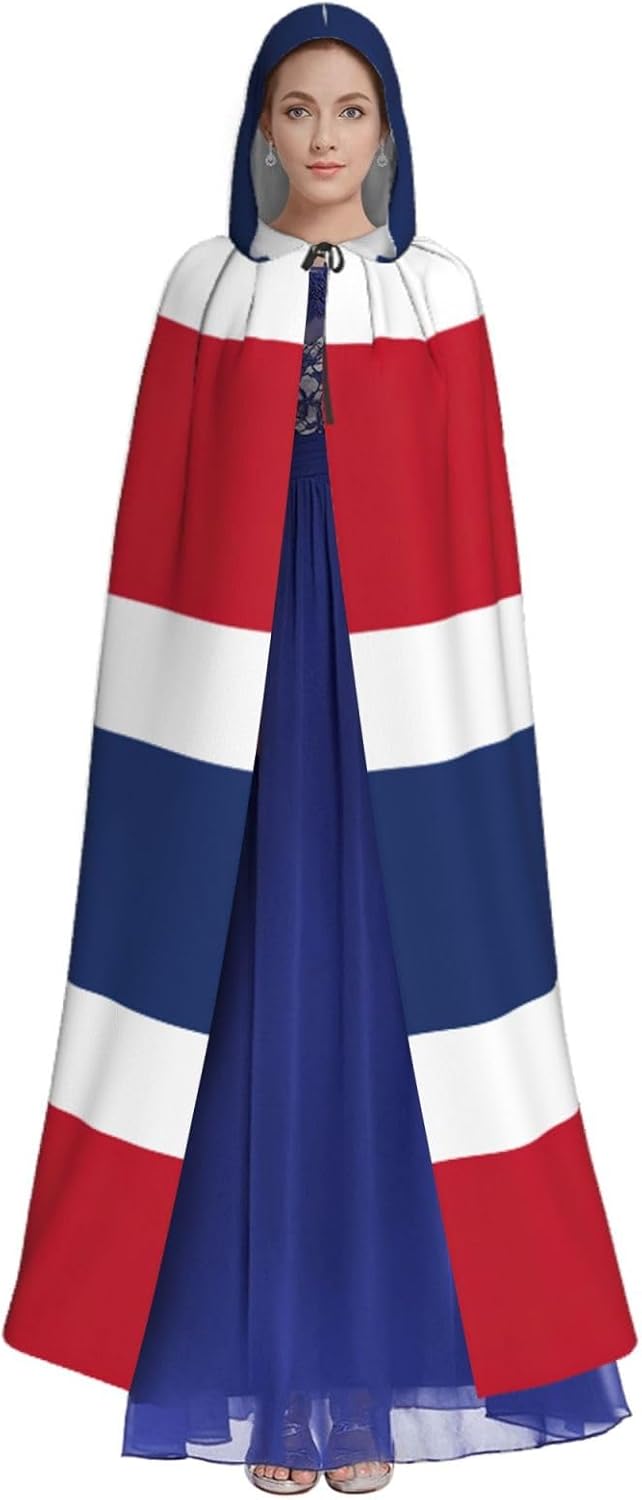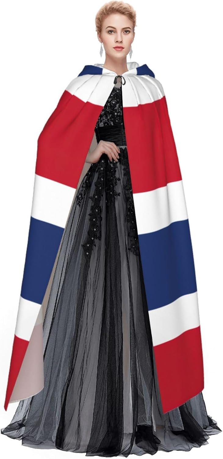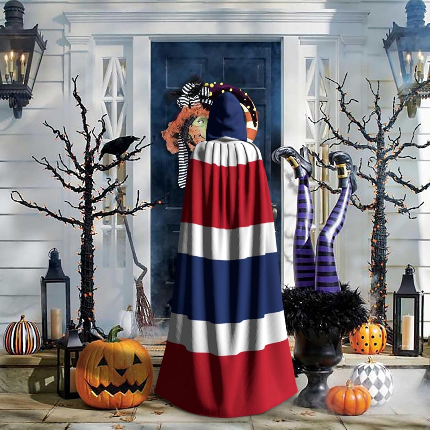 Mantello con cappuccio con bandiera olandese, mantello medievale per Halloween, mantello da mago mantello nero, costume da strega per adulti