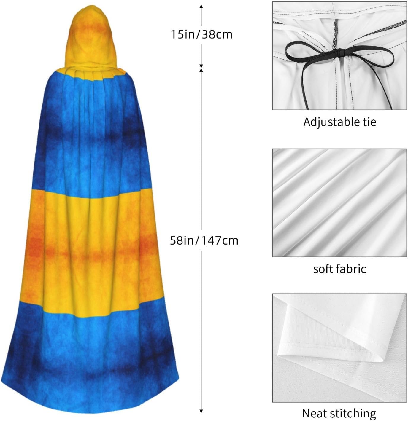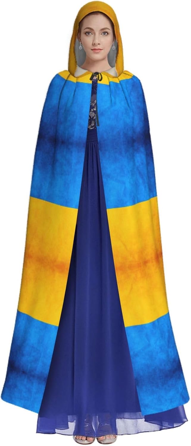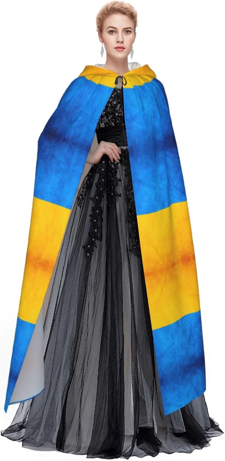 Mantello con cappuccio con bandiera ucraina mantello medievale mantello strega mantello nero mantello da strega costume adulto