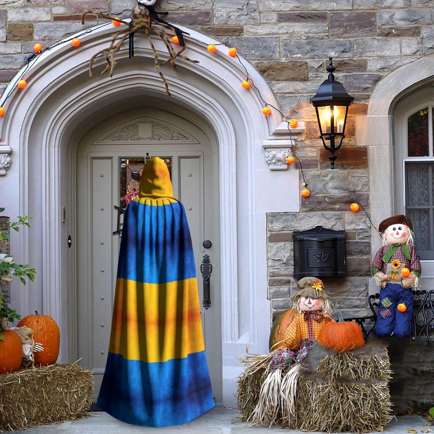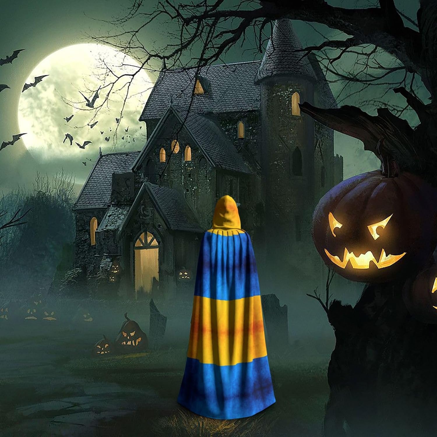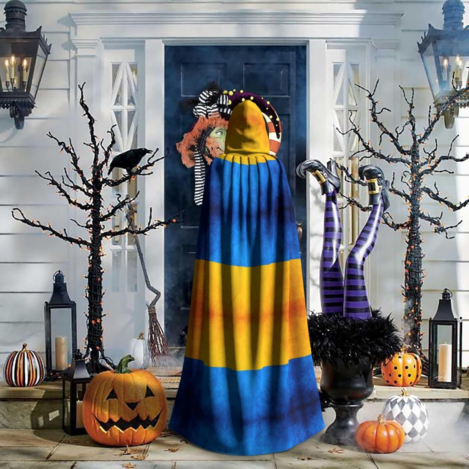 Mantello con cappuccio con bandiera ucraina mantello medievale mantello strega mantello nero mantello da strega costume adulto
