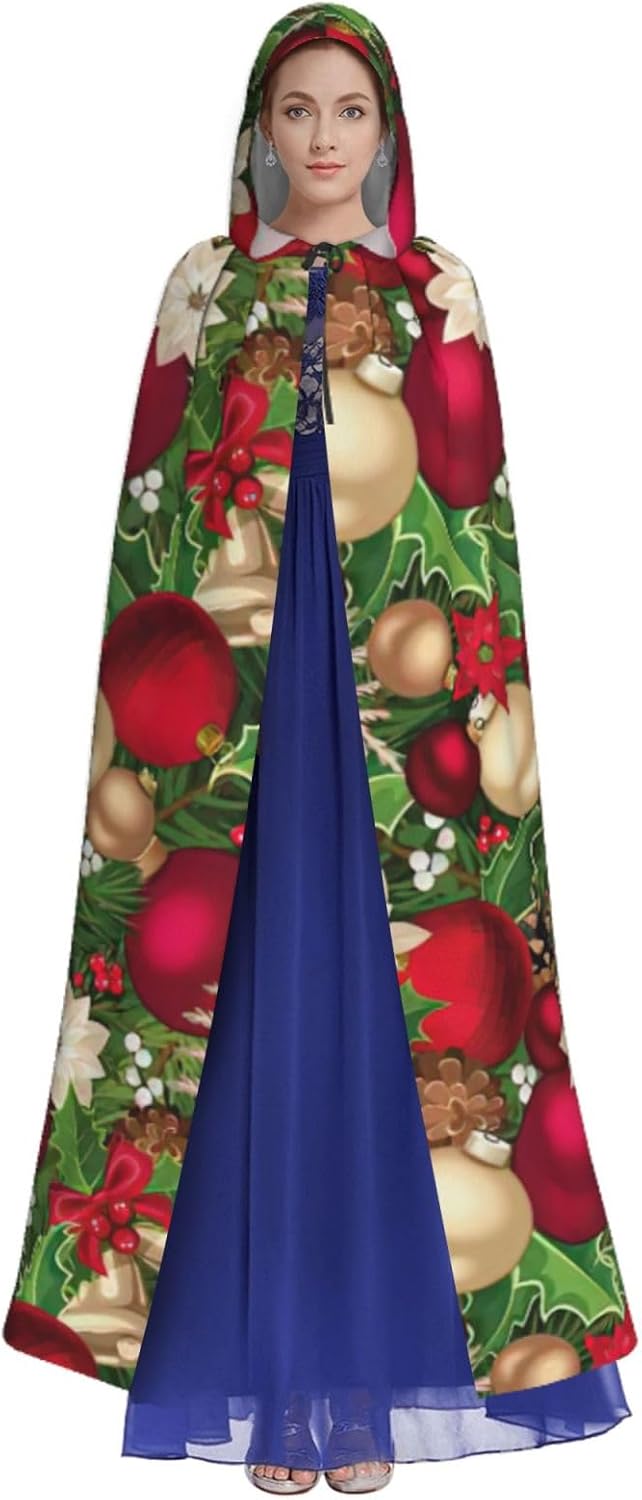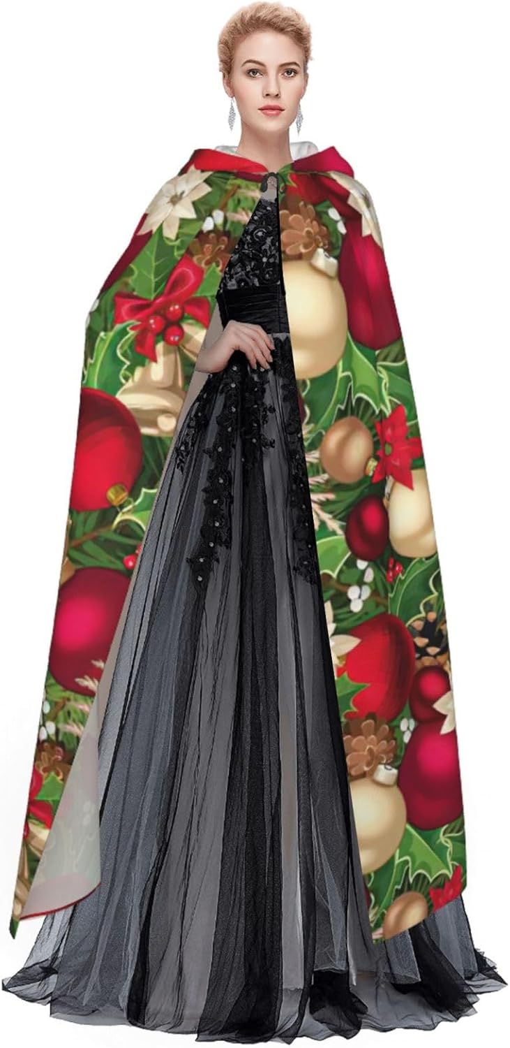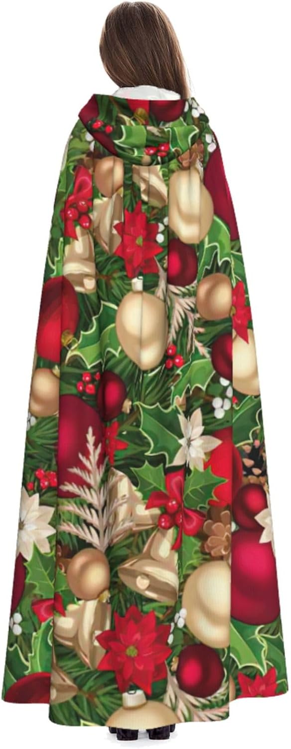 Mantello con cappuccio con cappuccio, motivo foglie di abete rosso, fiori, fiori, bacche, con cappuccio, un accattivante mantello per adulti per cosplay e Halloween