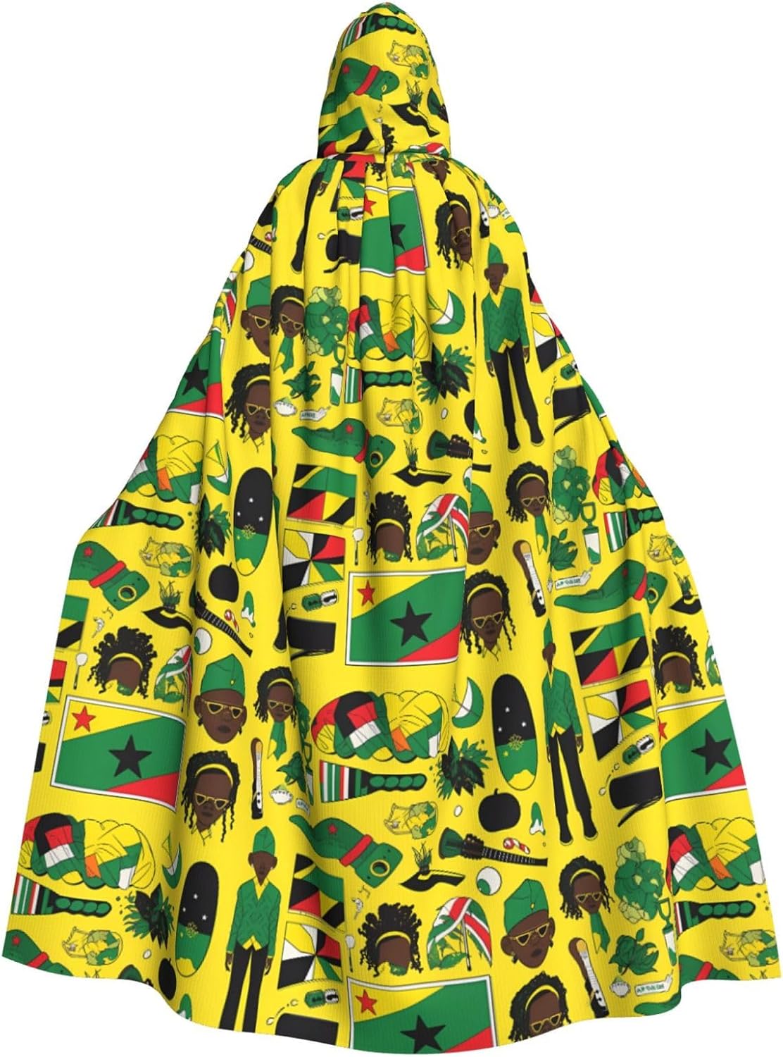 Materiale e design degli elementi giamaicani: il tessuto è realizzato in 100% fibra di poliestere (poliestere) tessuto di alta qualità, morbido e confortevole. Il design con cappuccio non è solo elegante e bello, ma fornisce anche calore extra alla testa e al collo. \r Caratteristiche del prodotto: il poncho oversize con cappuccio è un poncho con cappuccio senza lacci, senza cerniera, comodo realizzato in tessuto lungo, resistente e non prurito. \r Dimensioni del prodotto: il cappello misura 38,1 cm di altezza, 147,3 cm di lunghezza, 154 cm di larghezza. \r Adatto per occasioni: feste di Natale, feste di Halloween, feste in costume, celebrazioni pagane. Ideale per travestimenti, cosplay, costumi da scena, streghe, vampiri, royalty, scelta regalo perfetta per amici o familiari. \r Persone applicabili: adulti, unisex.