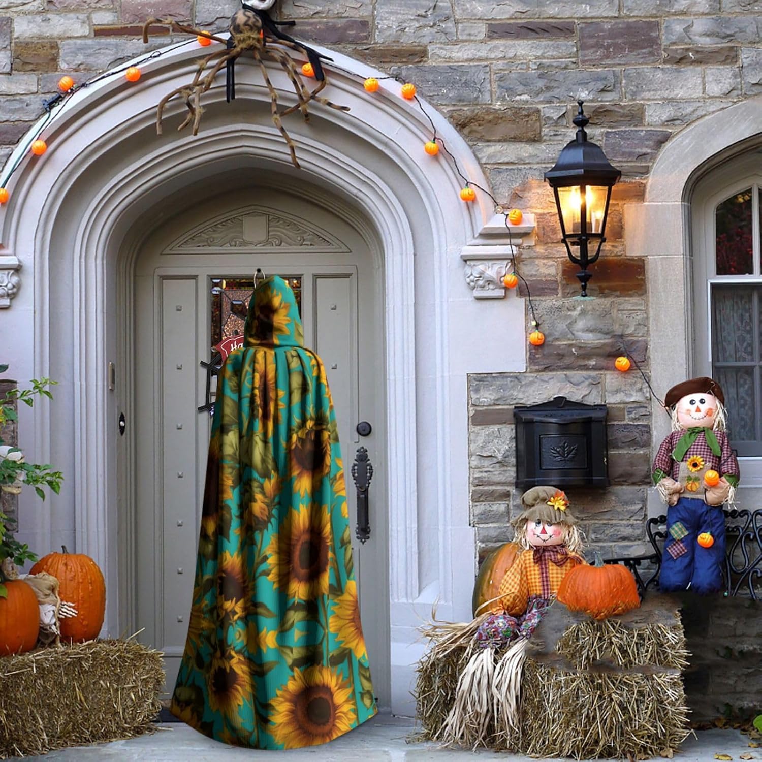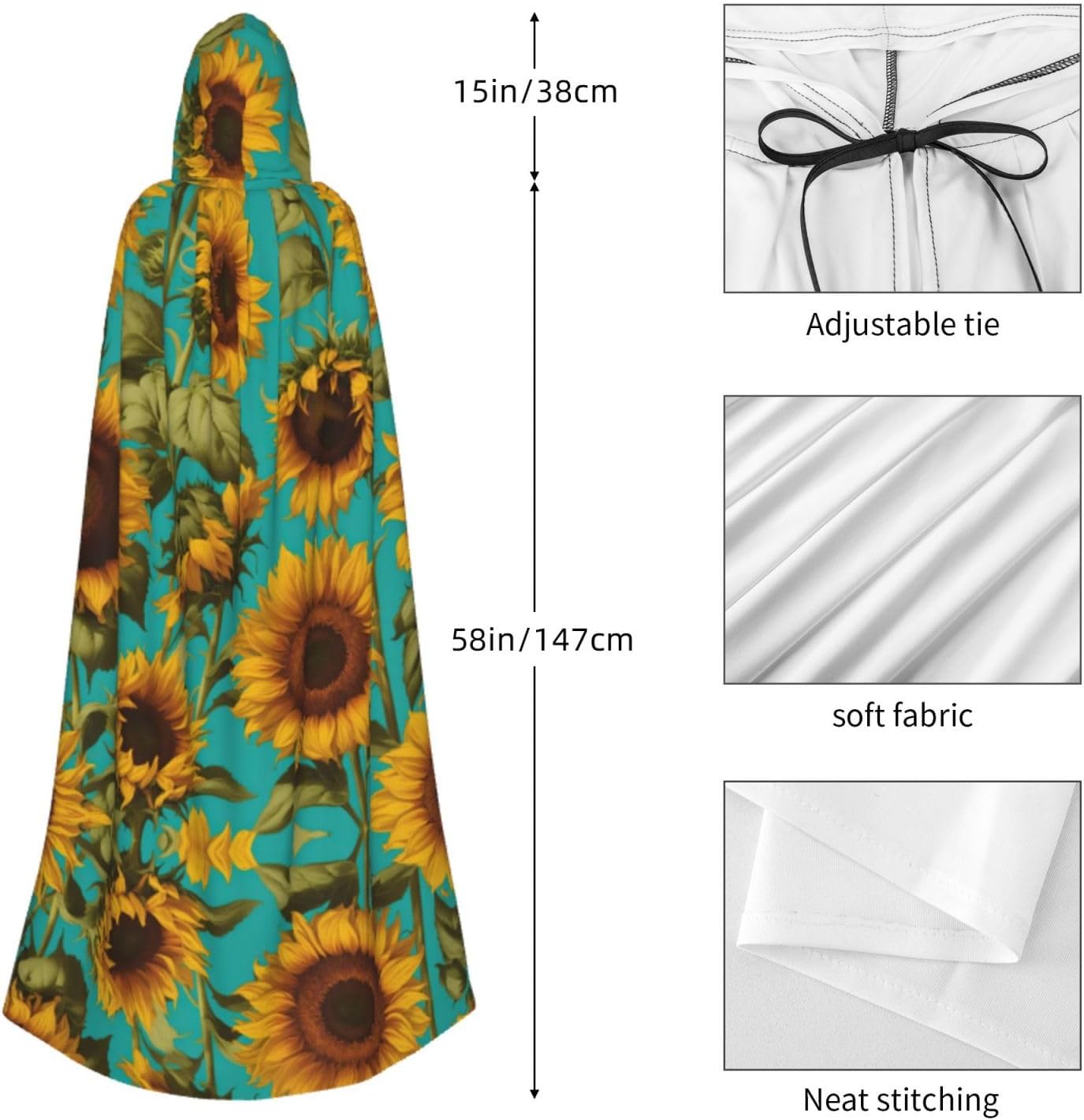 Mantello con cappuccio con girasoli mantello medievale mantello da mago mantello nero per adulti costume da strega