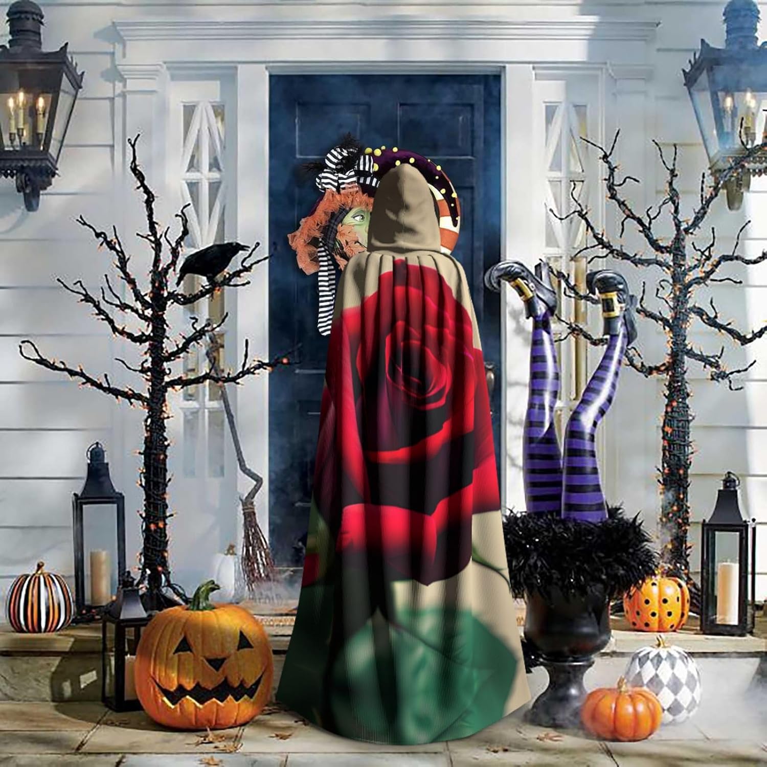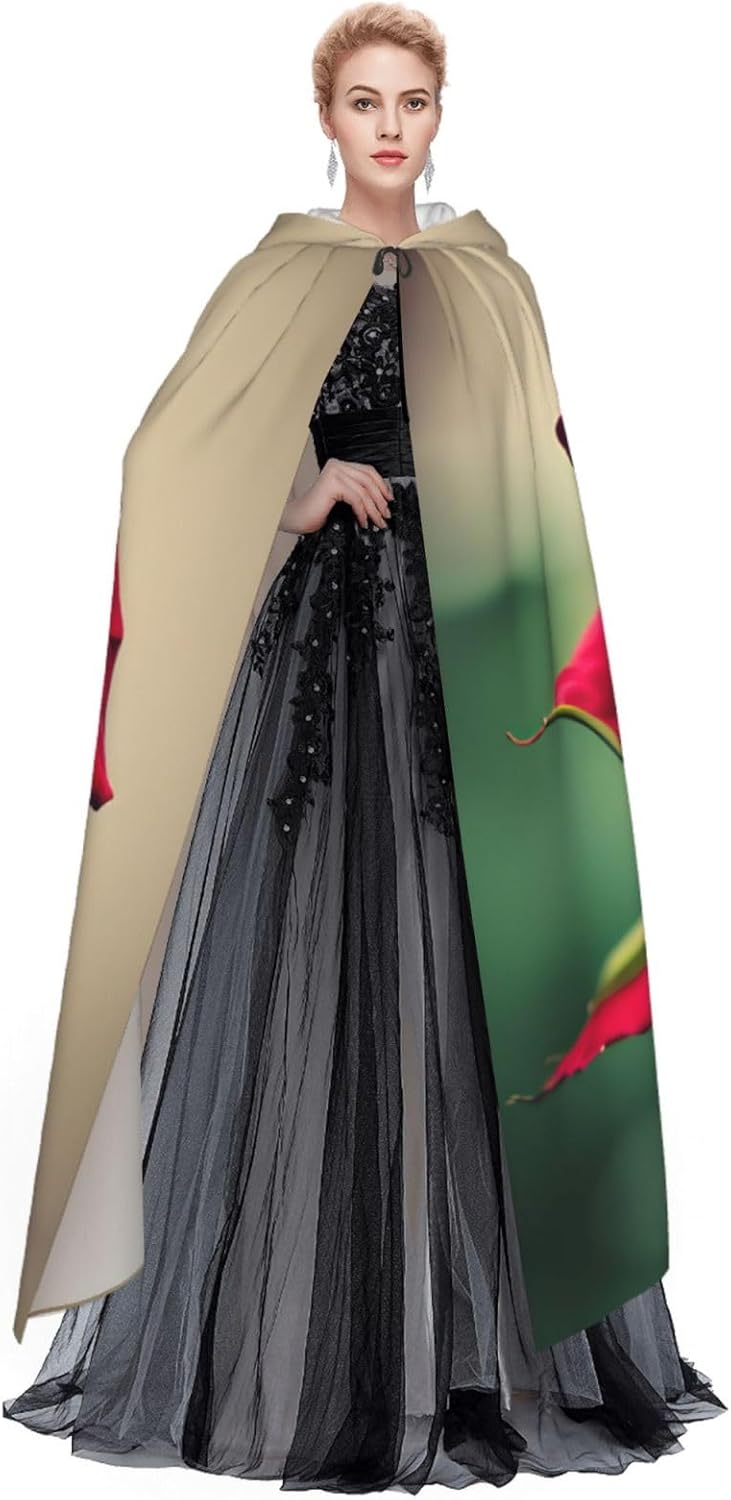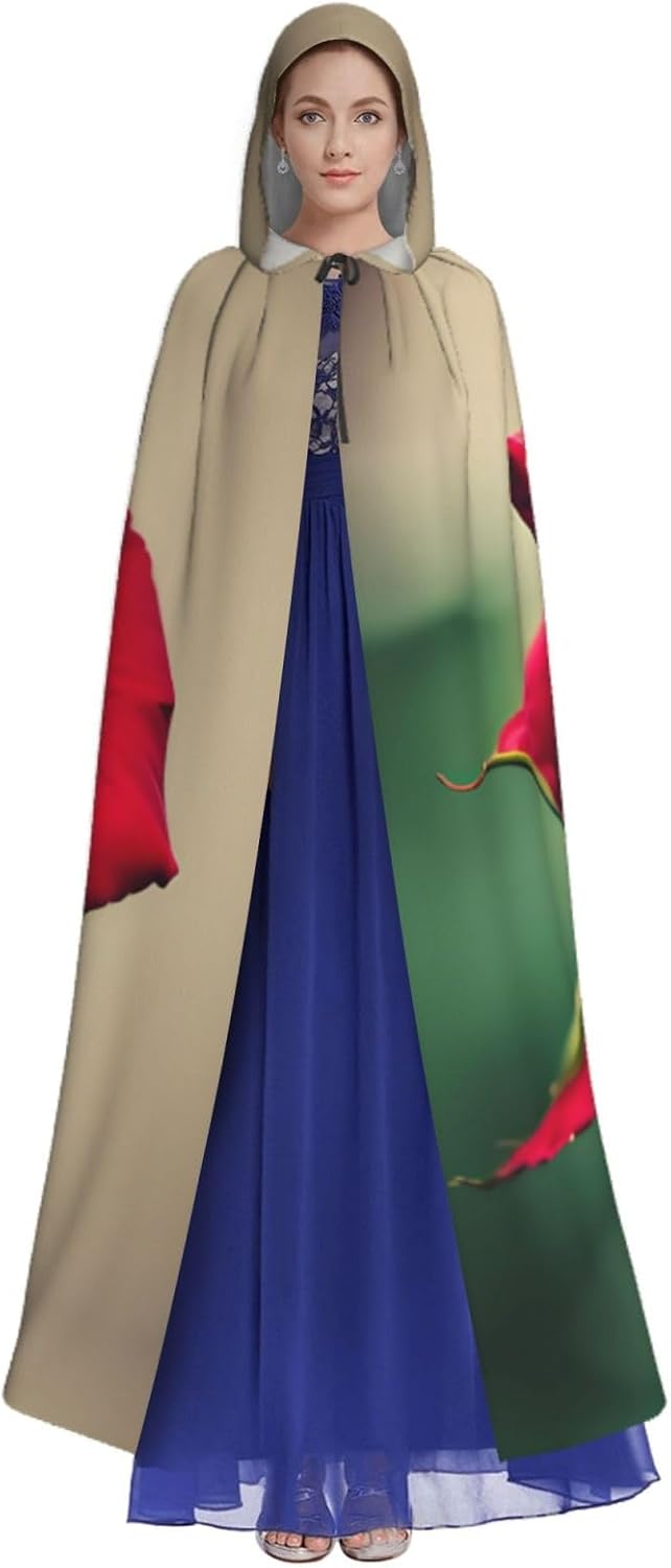 Mantello con cappuccio con rosa rossa, unisex, per Halloween, Natale, vampiro, stregone, costume cosplay