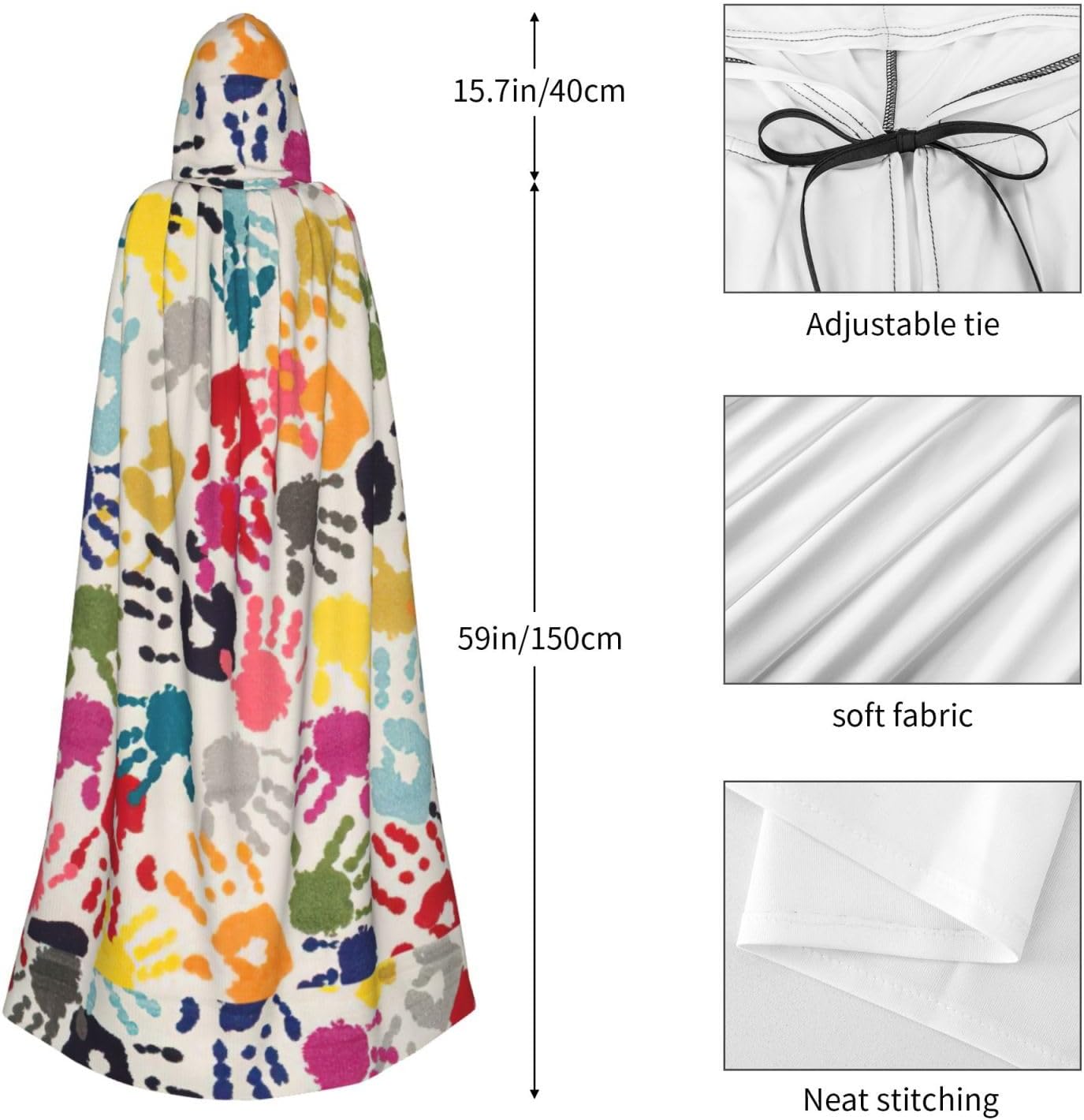 Migliora il tuo gioco di costumi con il nostro mantello con cappuccio, un'aggiunta versatile al tuo ensemble cosplay e alle decorazioni di Halloween. Questo mantello accattivante, con la sua stampa a figura intera e il suo design grandioso, aggiunge un elemento di mistero e fascino al tuo personaggio. \r Realizzato in fibra di poliestere, questo mantello garantisce senza compromettere il comfort. Il design della cravatta sul colletto e l'assenza di cerniere consentono una facile vestibilità, rendendolo una scelta ideale per rapidi cambi di costume durante spettacoli teatrali o convention comiche. \r Sia che tu stia partecipando a una festa di Halloween, vestendoti per un evento cosplay o partecipando a una palla a tema, il nostro mantello funge da accessorio entusiasmante che migliora il tuo look generale. Inoltre, è facile da pulire con il suo tessuto lavabile in lavatrice e lavabile a mano, garantendo un'esperienza senza problemi dall'inizio alla fine. Porta il tuo gioco di ruolo e le celebrazioni festive a un livello superiore con il nostro mantello con cappuccio. Che si tratti di un personaggio medievale, rinascimentale, strega, vampiro o qualsiasi altro personaggio a tema fantasia, il nostro mantello ti farà distinguere dalla massa. Prova l'emozione di vestire come mai prima d'ora!