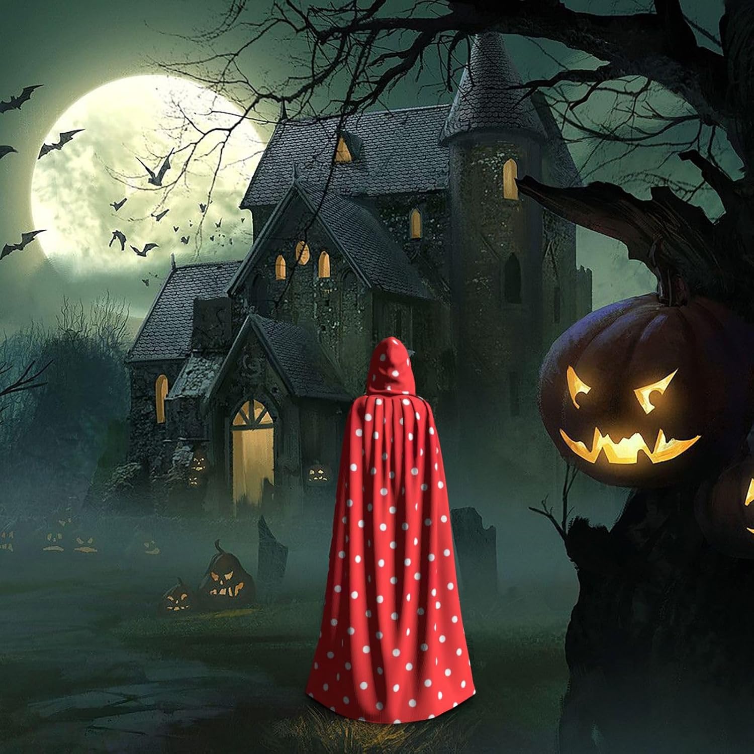 Mantello con cappuccio con stampa a pois rossi e bianchi, un accattivante mantello con cappuccio per adulti per cosplay e Halloween