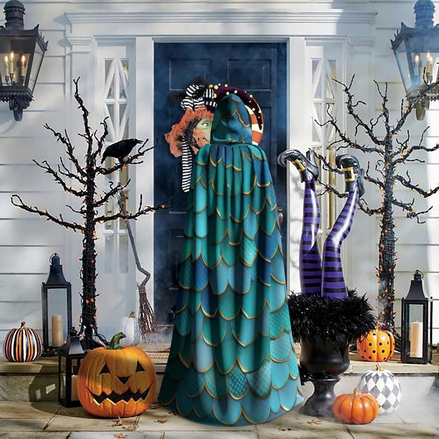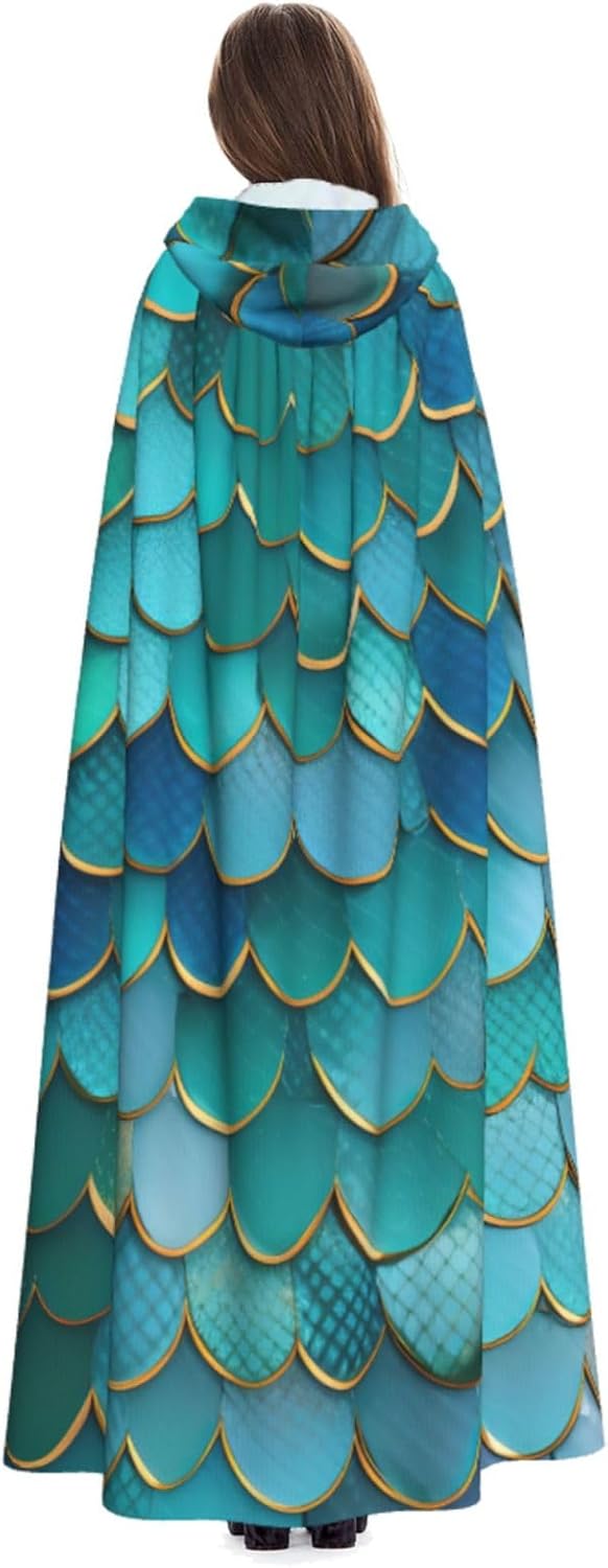 Il design senza cerniera, abbinato a un grande mantello con cappuccio e cravatta al collo, migliora il tuo mistero mantenendoti comodo con il suo tessuto non prurito. Con una lunghezza di 147 cm, larghezza di 154 cm e un'altezza del cappuccio di 38 cm, il nostro mantello con cappuccio con stampa a squame di sirena offre una copertura completa, assicurandoti di distinguerti in ogni occasione. Vari eventi come Halloween, cosplay, costumi da palcoscenico, feste a tema, balli, convegni di fumetti e molto altro ancora, il nostro mantello è versatile e conveniente. Facile da mantenere e di lunga durata, il nostro mantello con cappuccio con stampa a squame di sirena è lavabile in lavatrice e lavabile a mano. Con un design neutro, il nostro mantello è perfetto per uomini e donne.