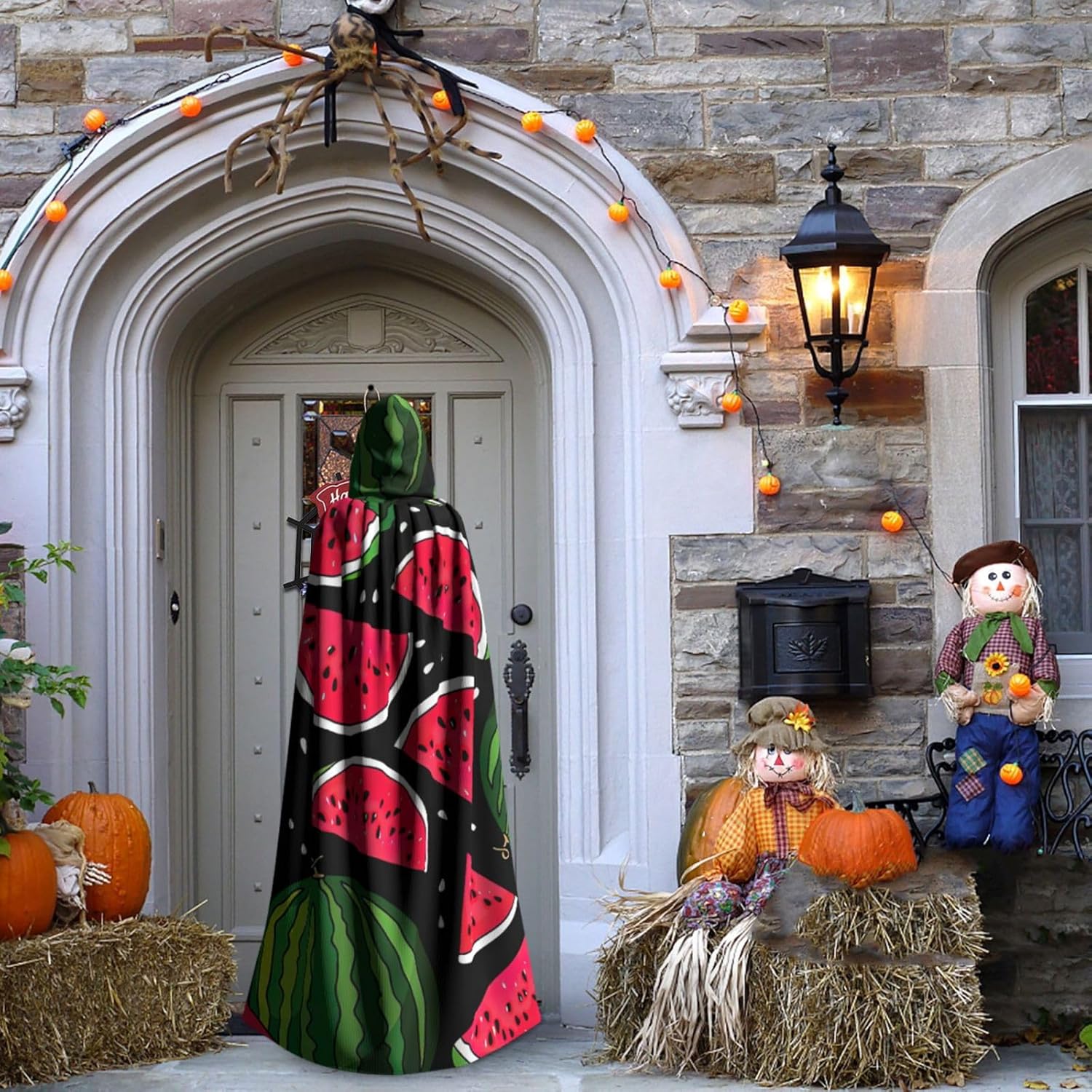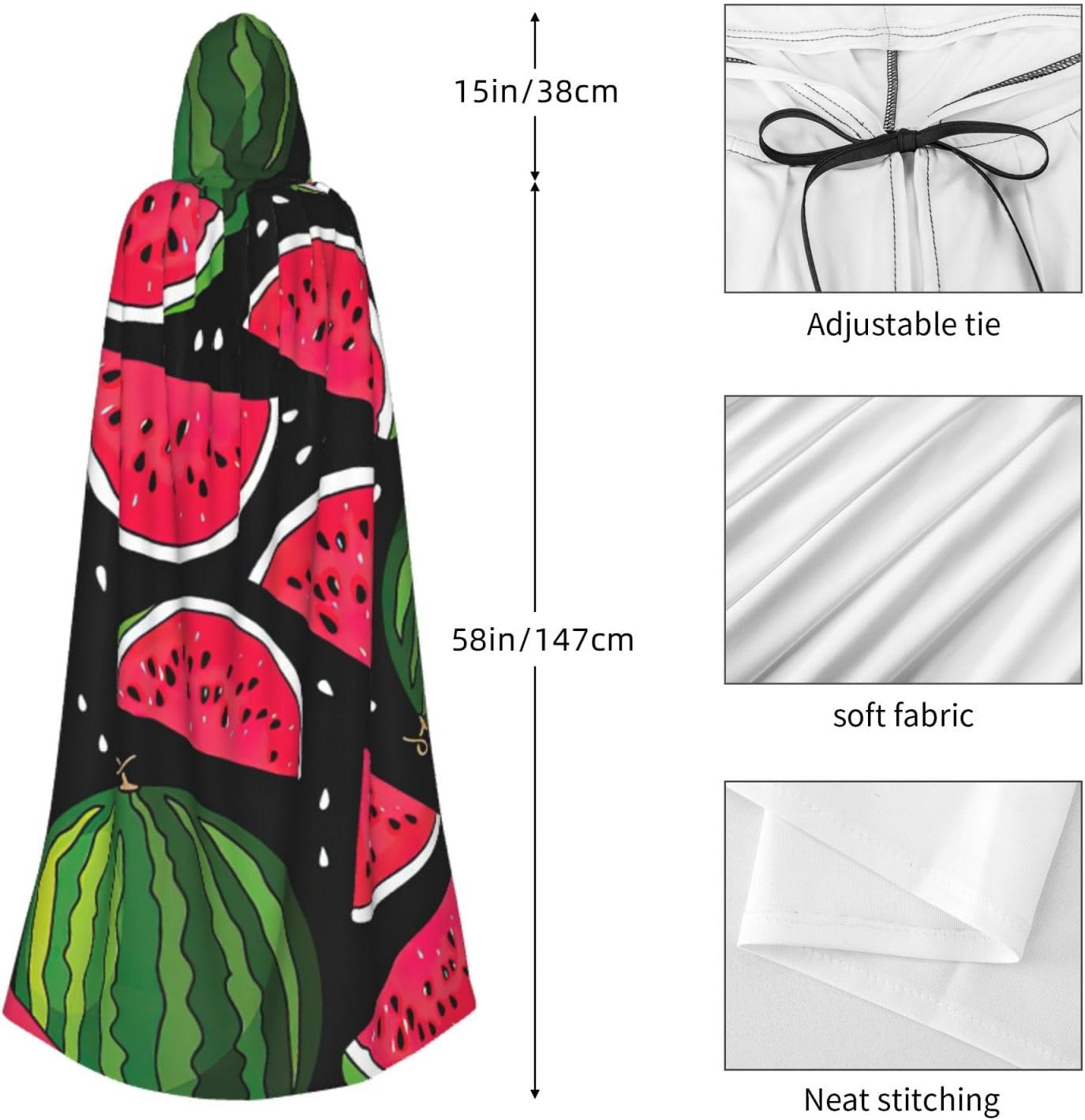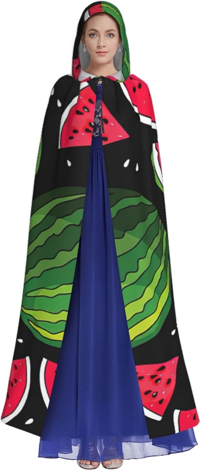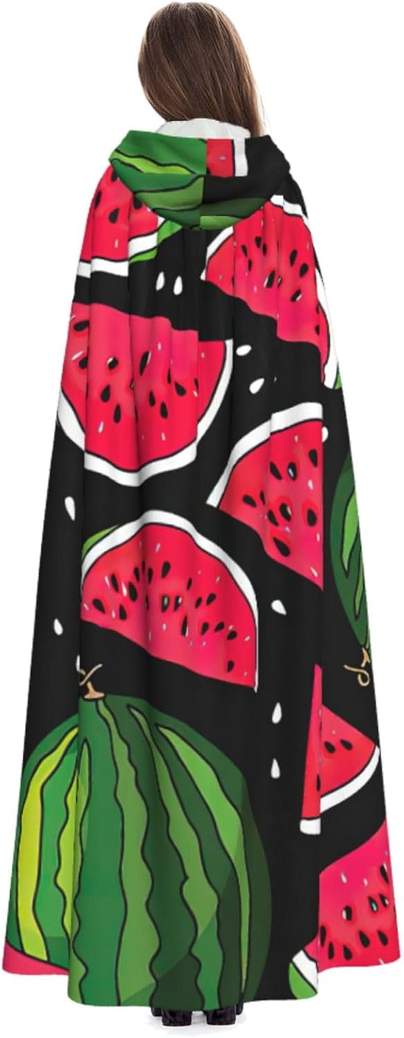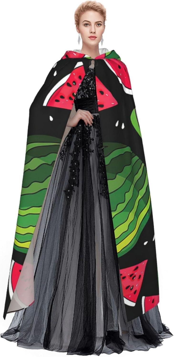 Mantello con cappuccio con stampa anguria, per adulti, elegante, per carnevale, feste a tema, cosplay