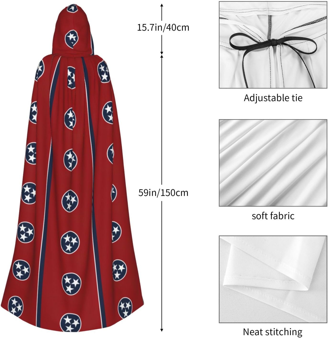 Mantello con cappuccio con stampa bandiera del Tennessee per tutti i costumi cosplay unisex decorazione di Halloween forniture di carnevale