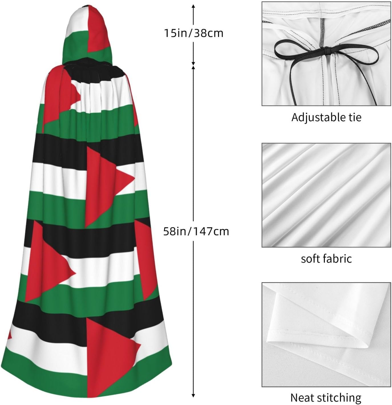 Migliora il tuo gioco di costumi con il mantello con cappuccio di Halloween stampato con bandiera palestinese 1 per adulti: un'aggiunta versatile ed elegante al tuo guardaroba. Realizzato al 100% in poliestere, questo mantello offre una consistenza morbida e liscia che garantisce comfort durante tutto l'evento. La generosa lunghezza di 147 cm e l'altezza del cappuccio di 38 cm lo rendono adatto alla maggior parte degli adulti, offrendo una vestibilità perfetta sia per gli uomini che per le donne. Il mantello da uomo con cappuccio e chiusura a laccio lo rende facile da indossare e regolare, garantendo una vestibilità sicura e confortevole. Che tu stia partecipando a una fiera rinascimentale, a una festa di Halloween, a un raduno di Natale o a un evento a tema medievale, questo mantello aggiungerà un tocco di eleganza e autenticità al tuo outfit. Ideale per una vasta gamma di occasioni, tra cui cosplay, balli in maschera e feste a tema, questo mantello da ballo in maschera è anche una scelta fantastica per costumi gotici, da vampiro, da strega e da mago. Abbraccia lo spirito del Medioevo o aggiungi un tocco di mistero al tuo prossimo evento con il mantello con cappuccio per Halloween per adulti. Ordina il tuo oggi ed entra nel mondo dello stile e dell'incanto senza tempo
