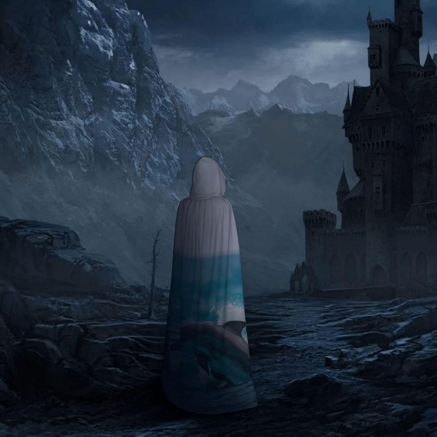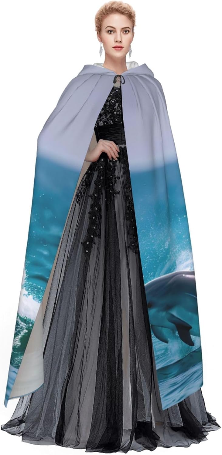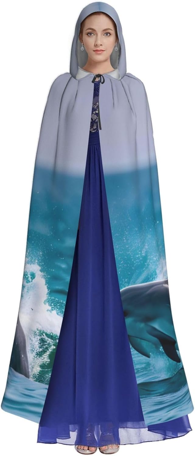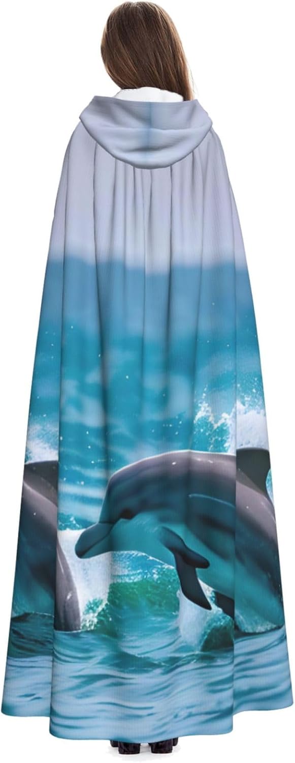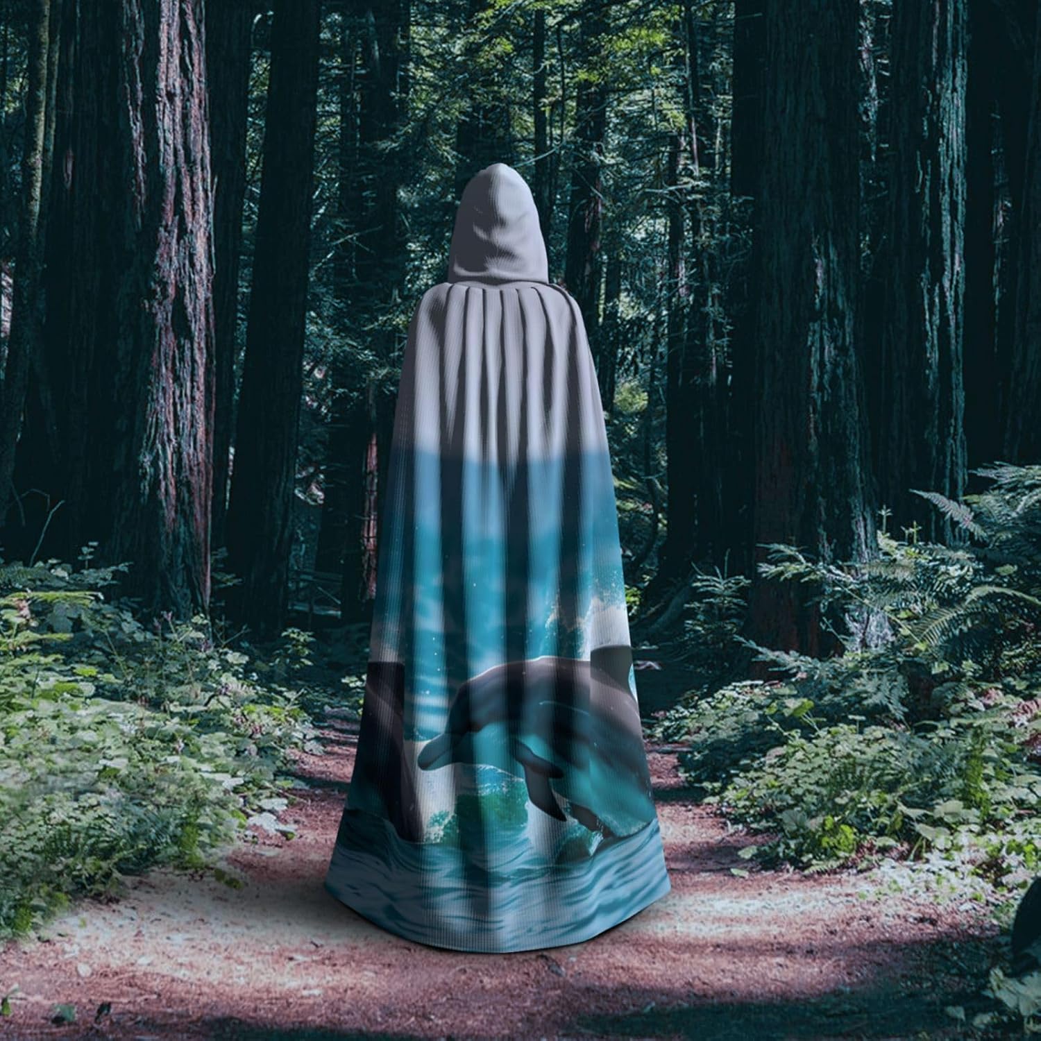 Mantello con cappuccio con stampa delfini nel mare per tutti i costumi cosplay unisex decorazione di Halloween forniture di carnevale