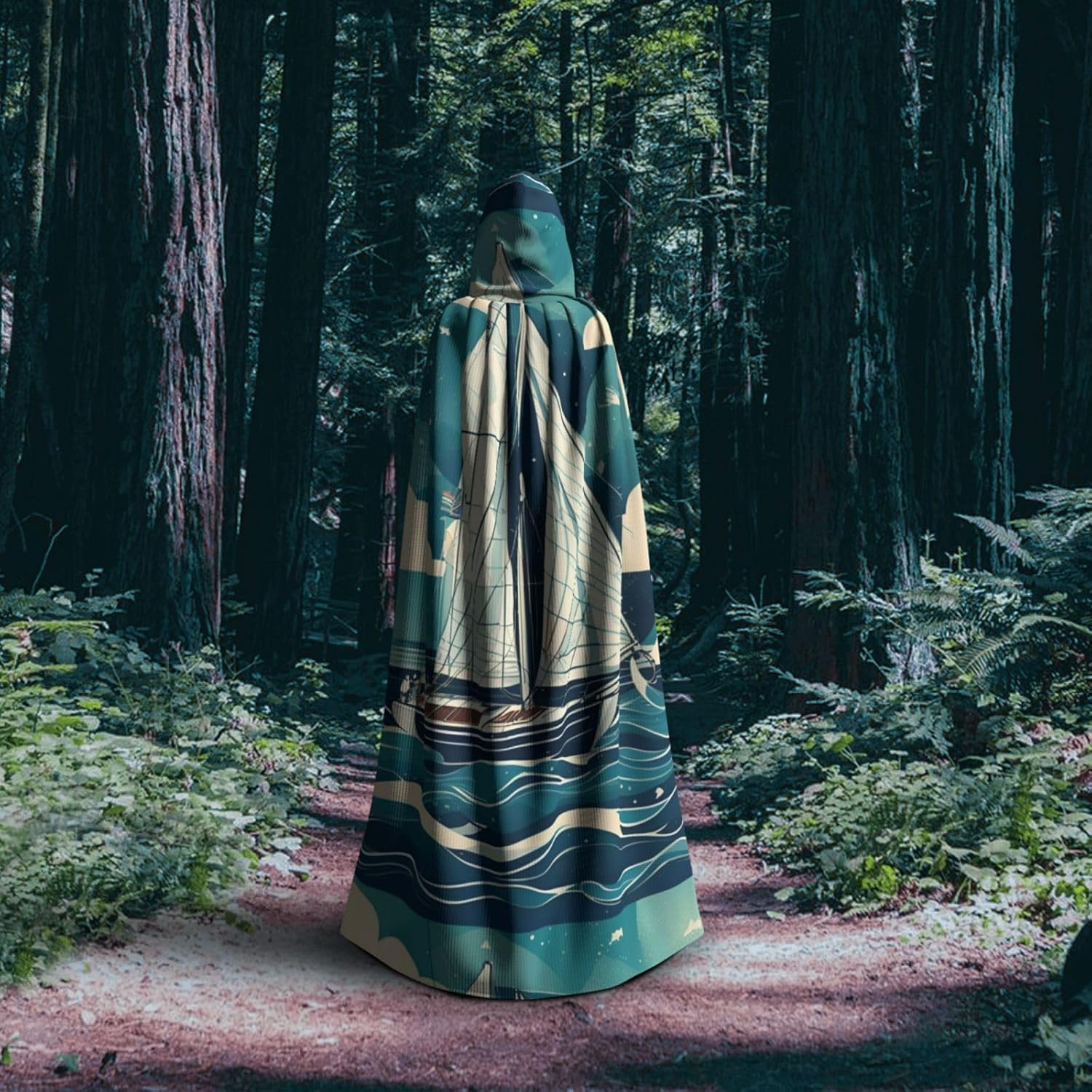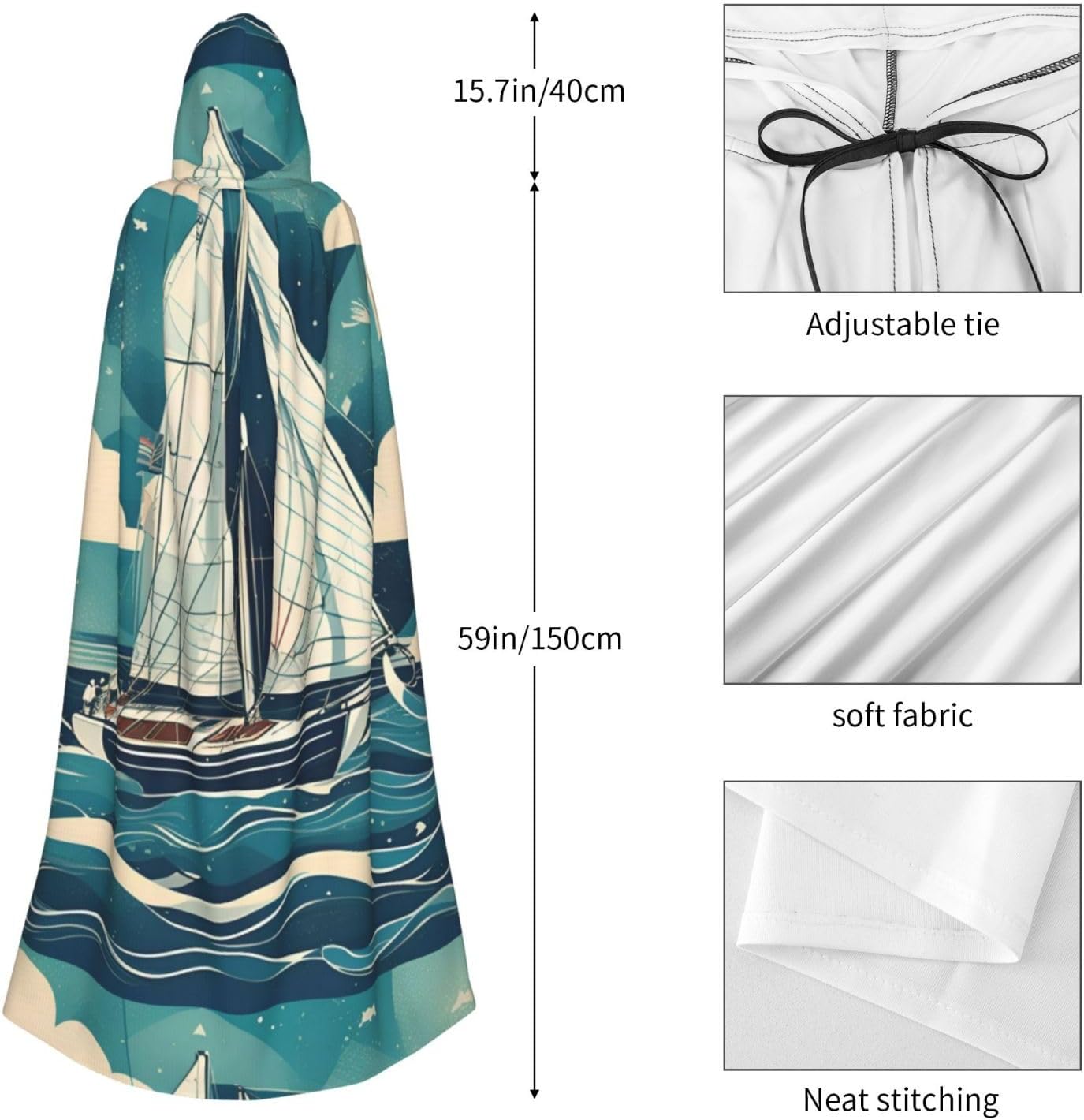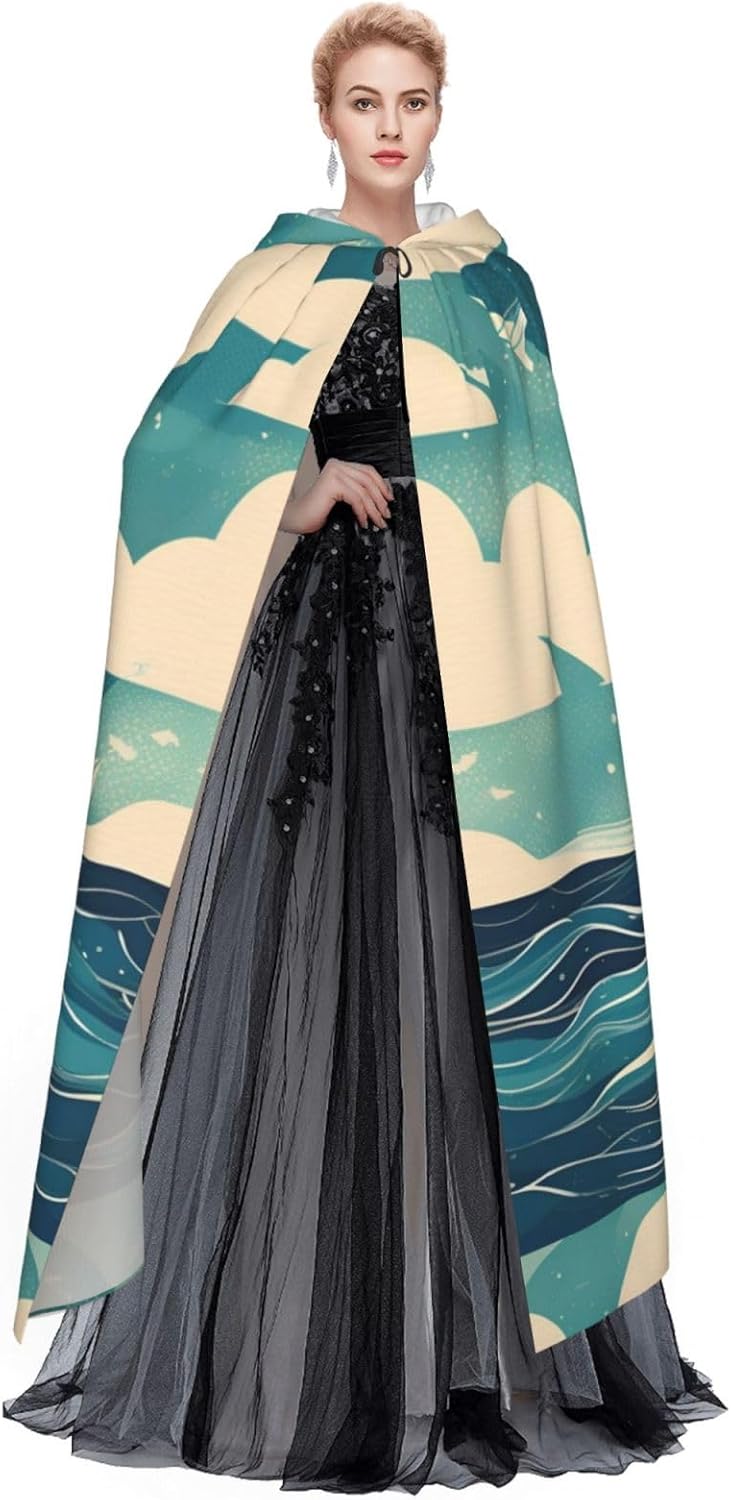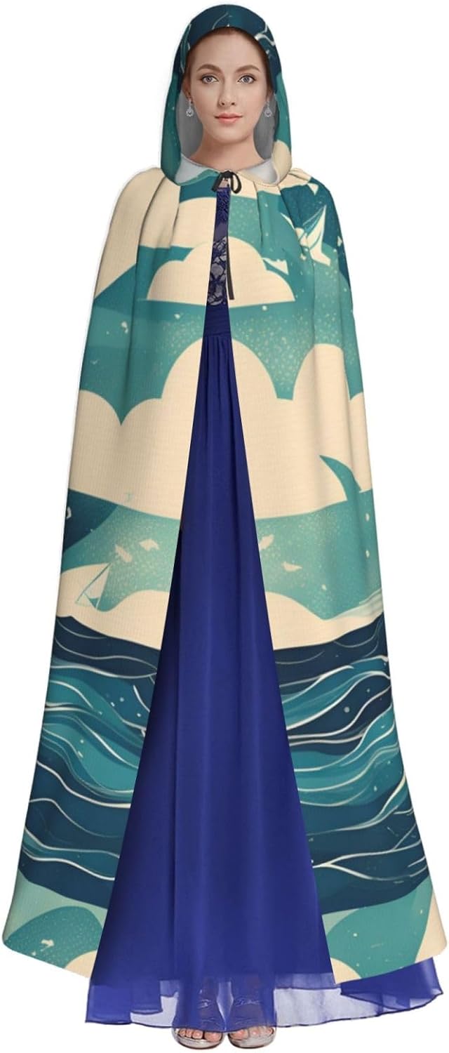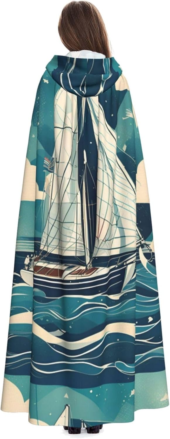 Mantello con cappuccio con stampa di barca a vela oceano per tutti i costumi cosplay unisex decorazione Halloween forniture di carnevale