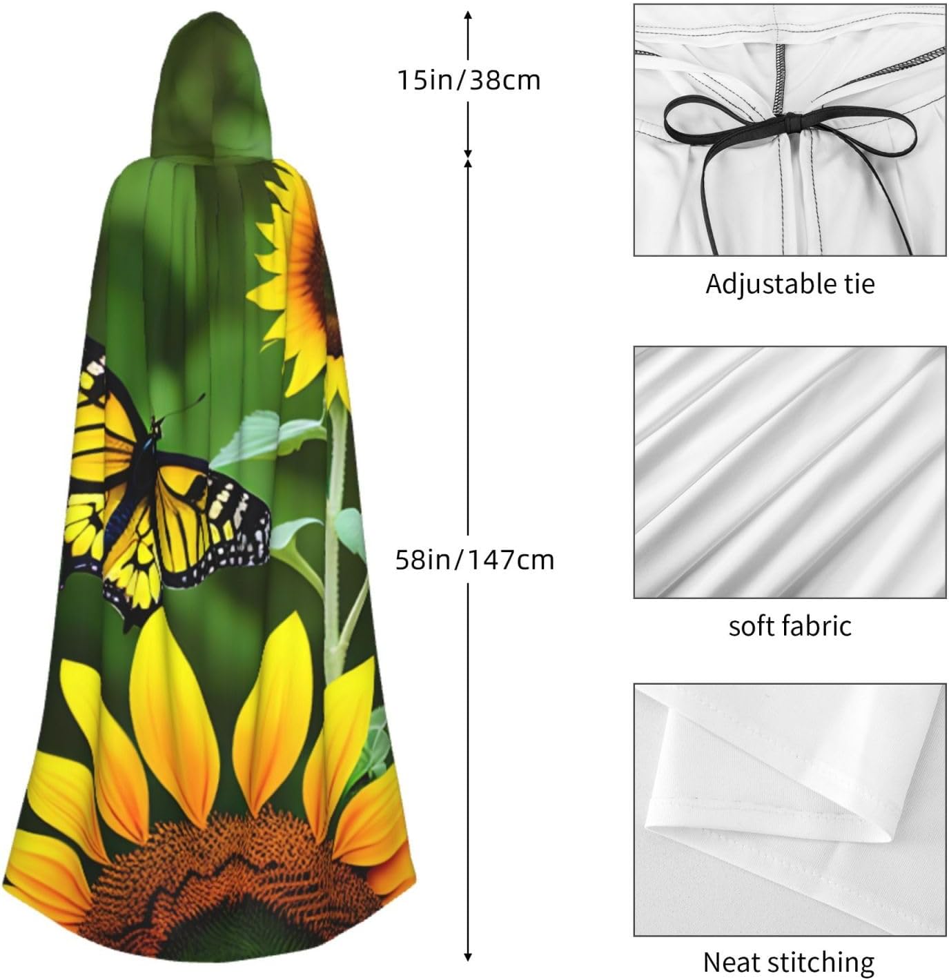 Mantello con cappuccio con stampa di girasole e farfalla con cappuccio, un accattivante mantello con cappuccio per adulti per cosplay e Halloween