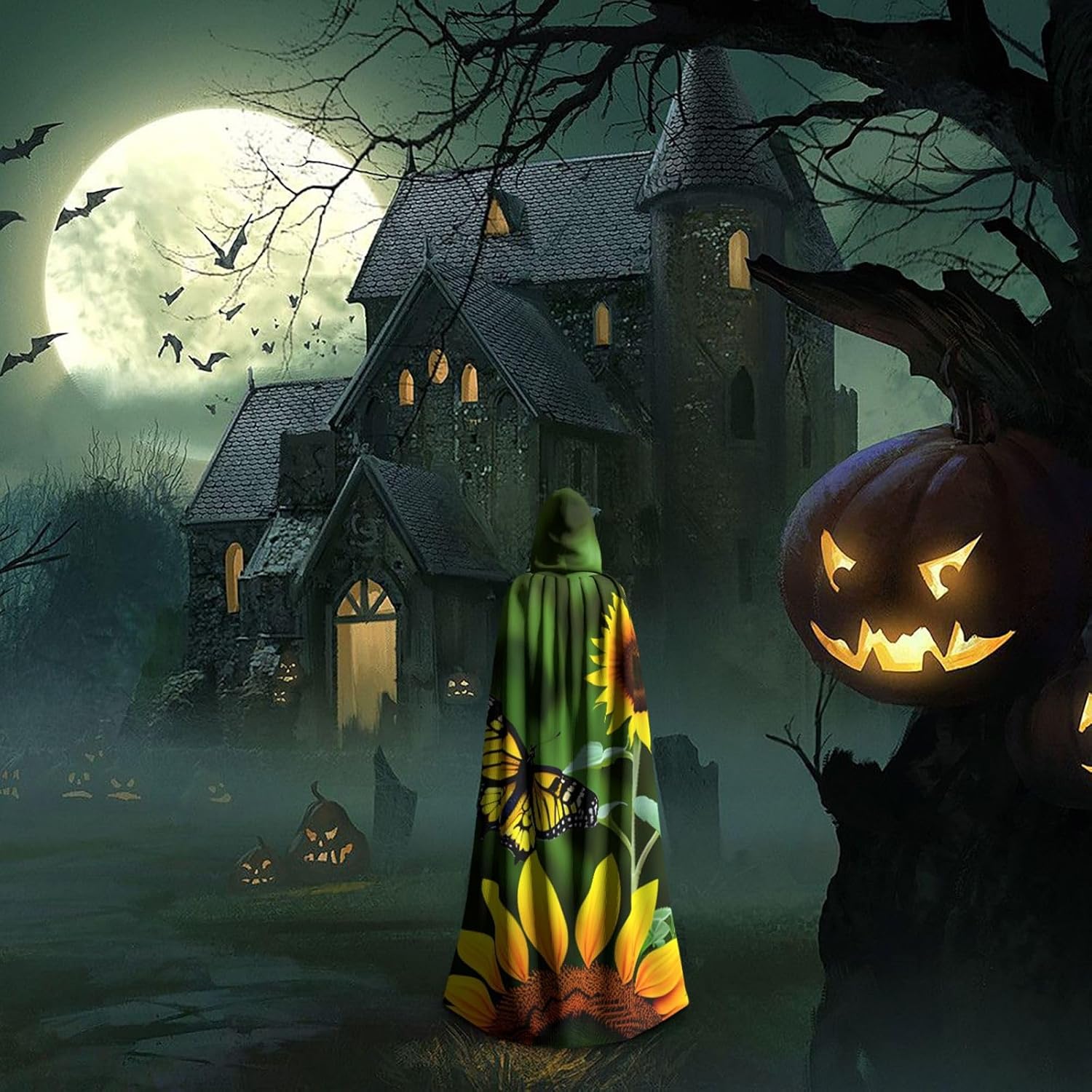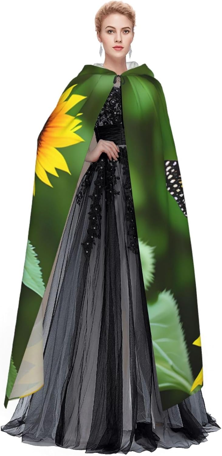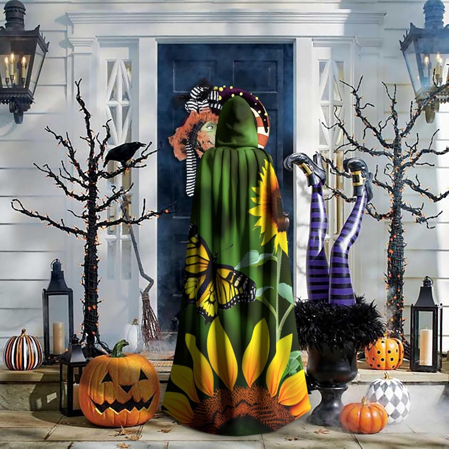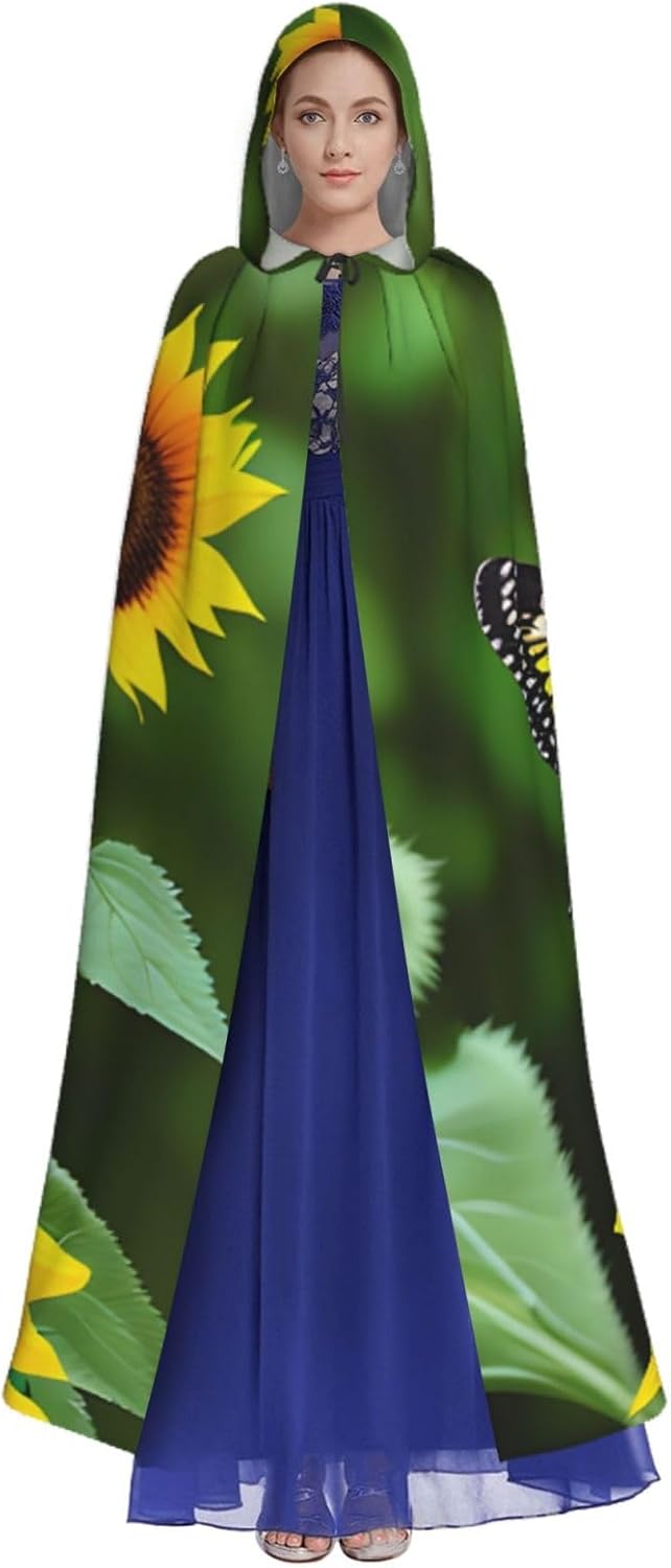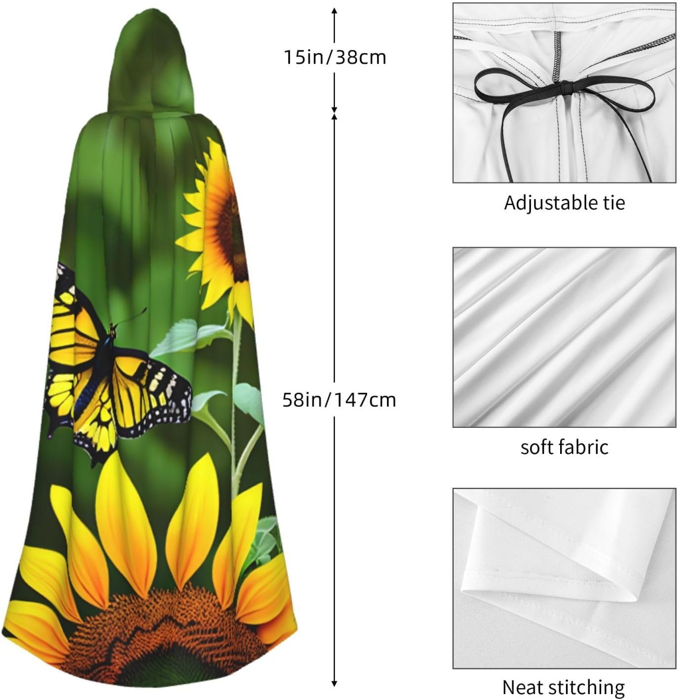 Mantello con cappuccio con stampa di girasole e farfalla con cappuccio, un accattivante mantello con cappuccio per adulti per cosplay e Halloween