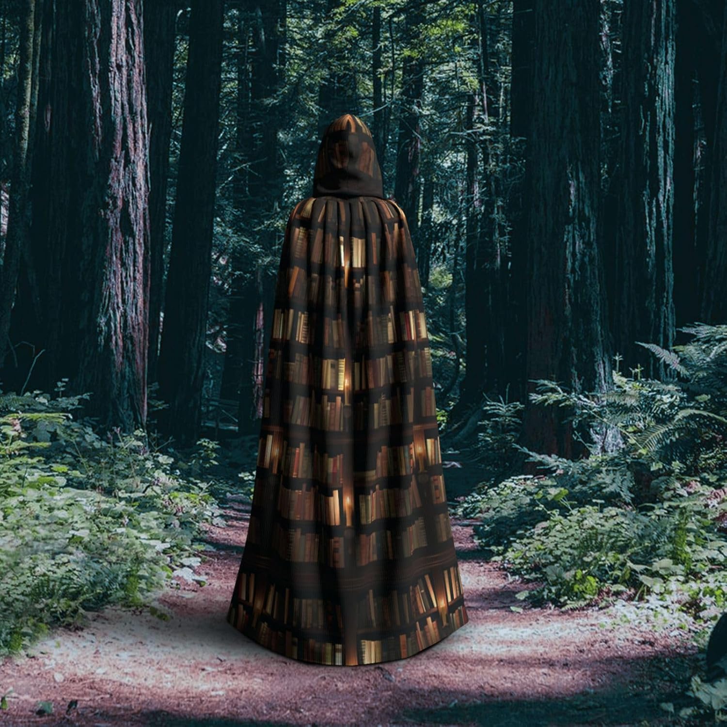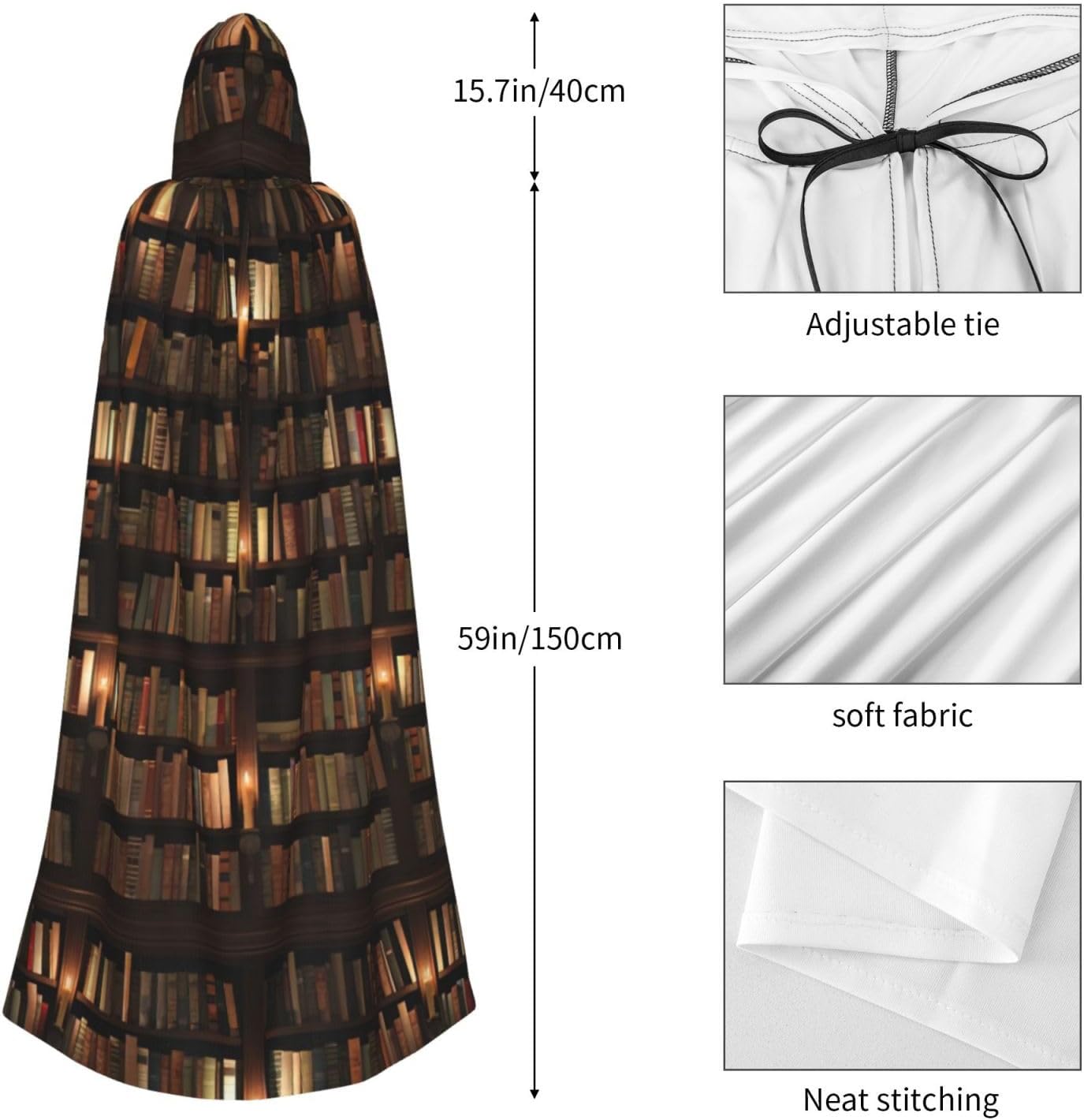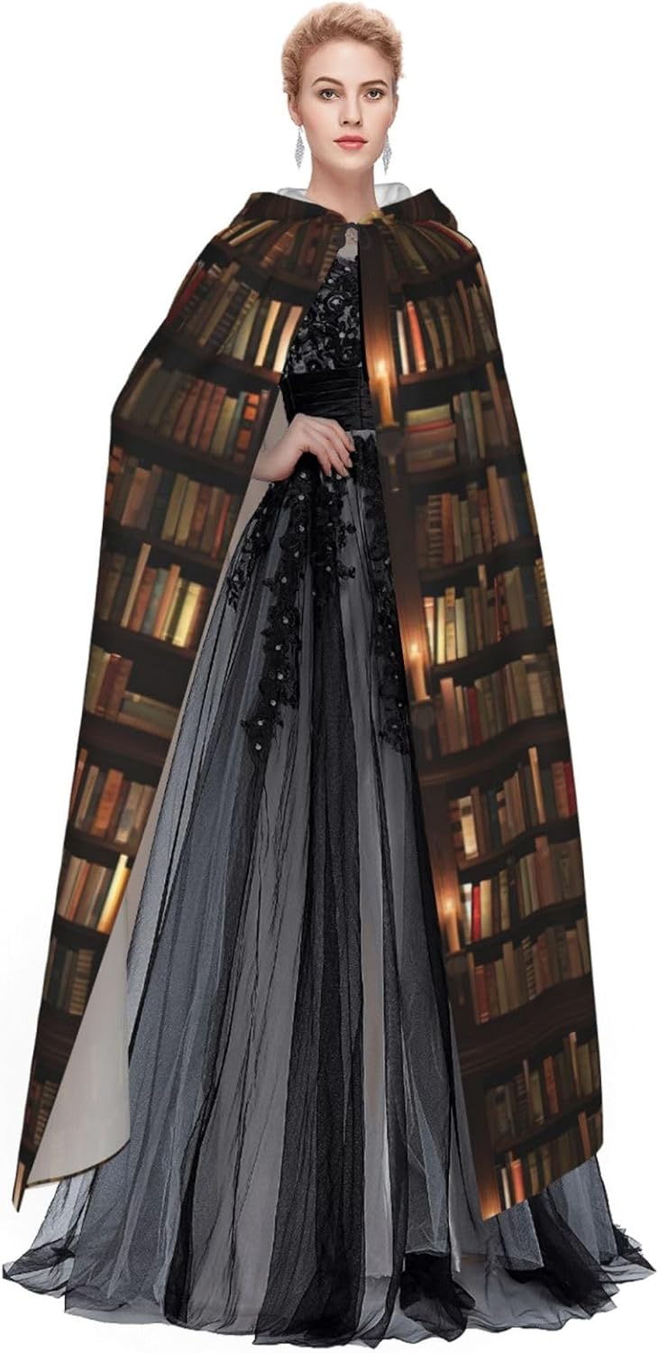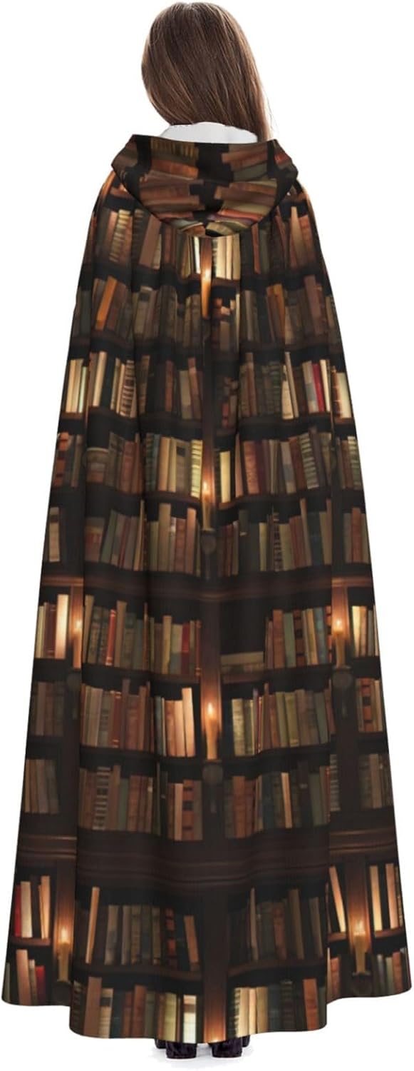 Mantello con cappuccio con stampa di libri per biblioteca, unisex, per cosplay, Halloween, carnevale, forniture