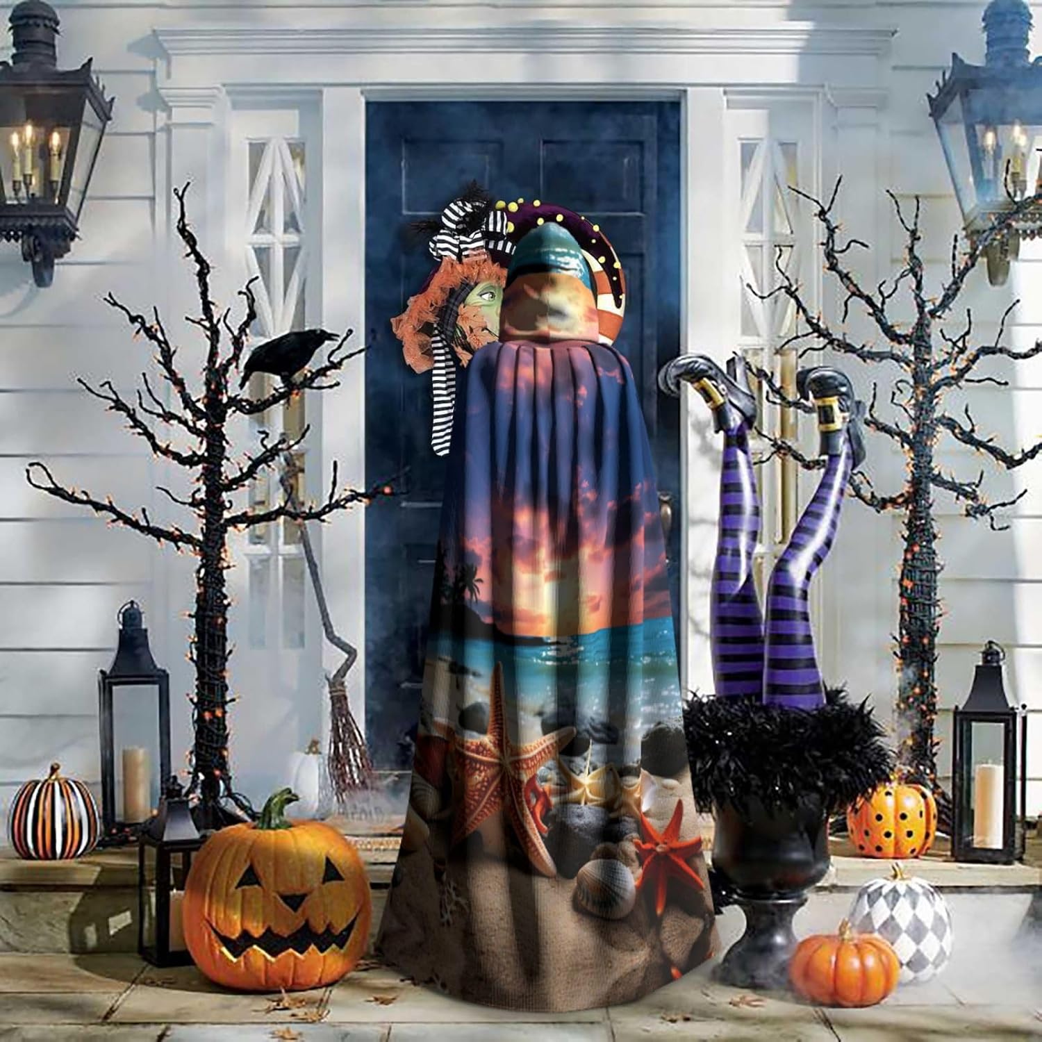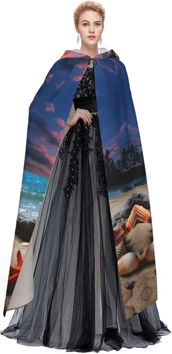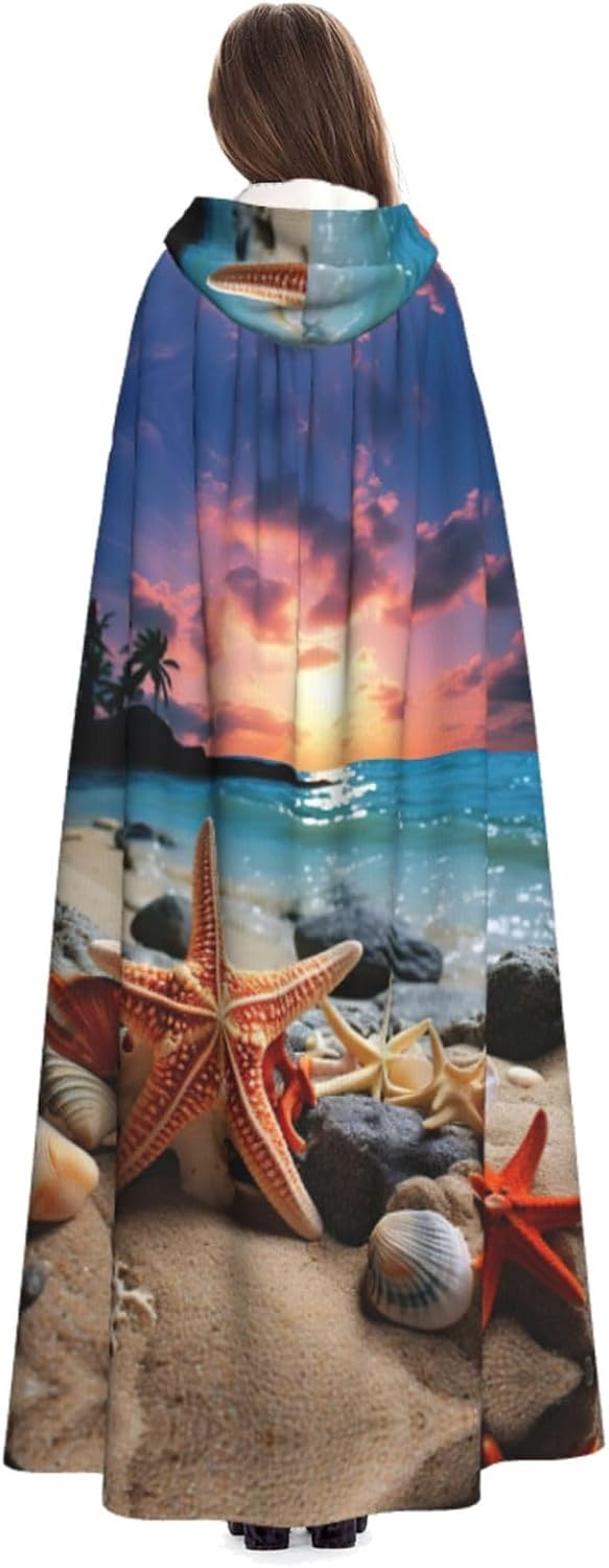 Mantello con cappuccio con stampa di stelle marine e corallo sulla spiaggia, un accattivante mantello con cappuccio per adulti per cosplay e Halloween