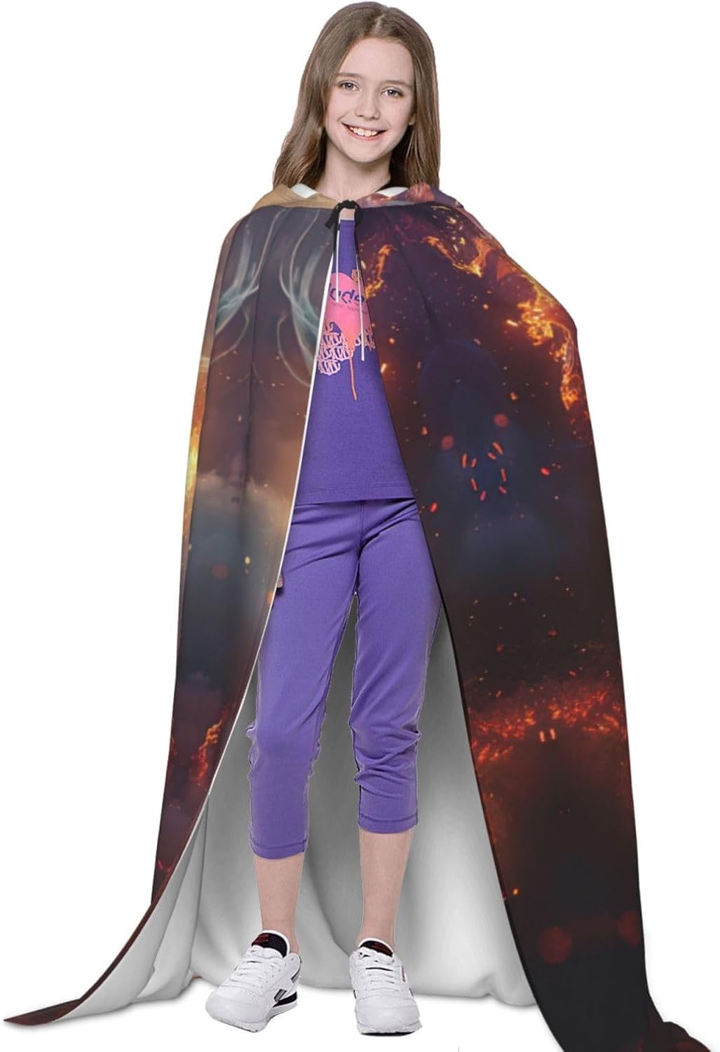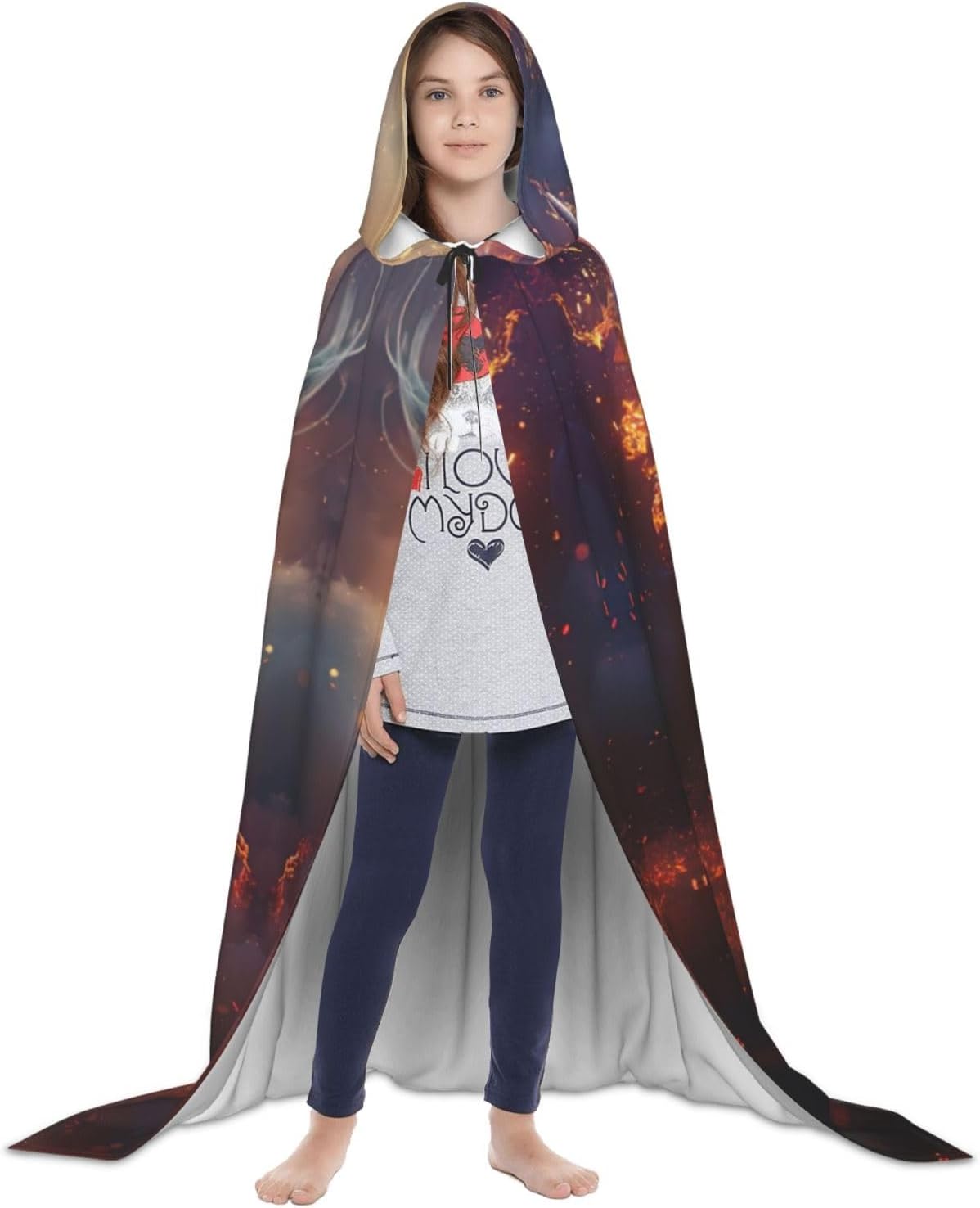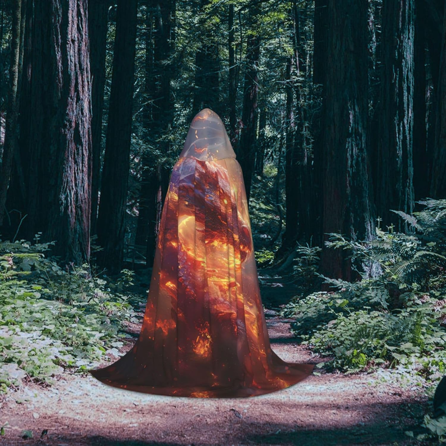 Il Capo con cappuccio con stampa Drago della notte è perfetto per chi vuole aggiungere un tocco di eleganza e mistero al proprio costume. Realizzato in tessuto di alta qualità, combina comfort e durata, mentre la chiusura regolabile del collo consente una vestibilità sicura e personalizzabile. L'orlo fluente raggiunge il suolo, aggiungendo un tocco regale e drammatico che esalta qualsiasi personaggio, dai supereroi ai nobili medievali, rendendolo una scelta eccellente per eventi cosplay e celebrazioni di Halloween.