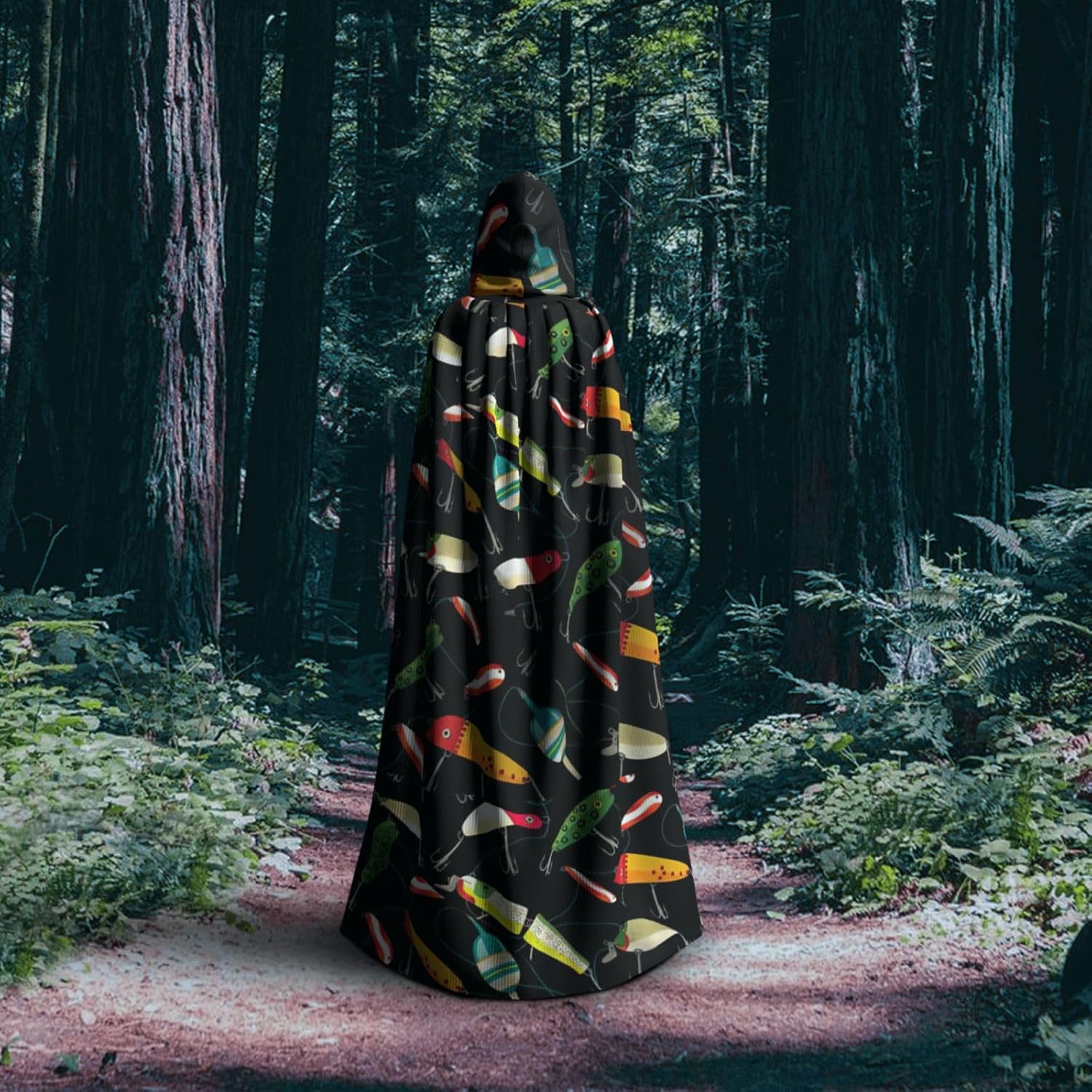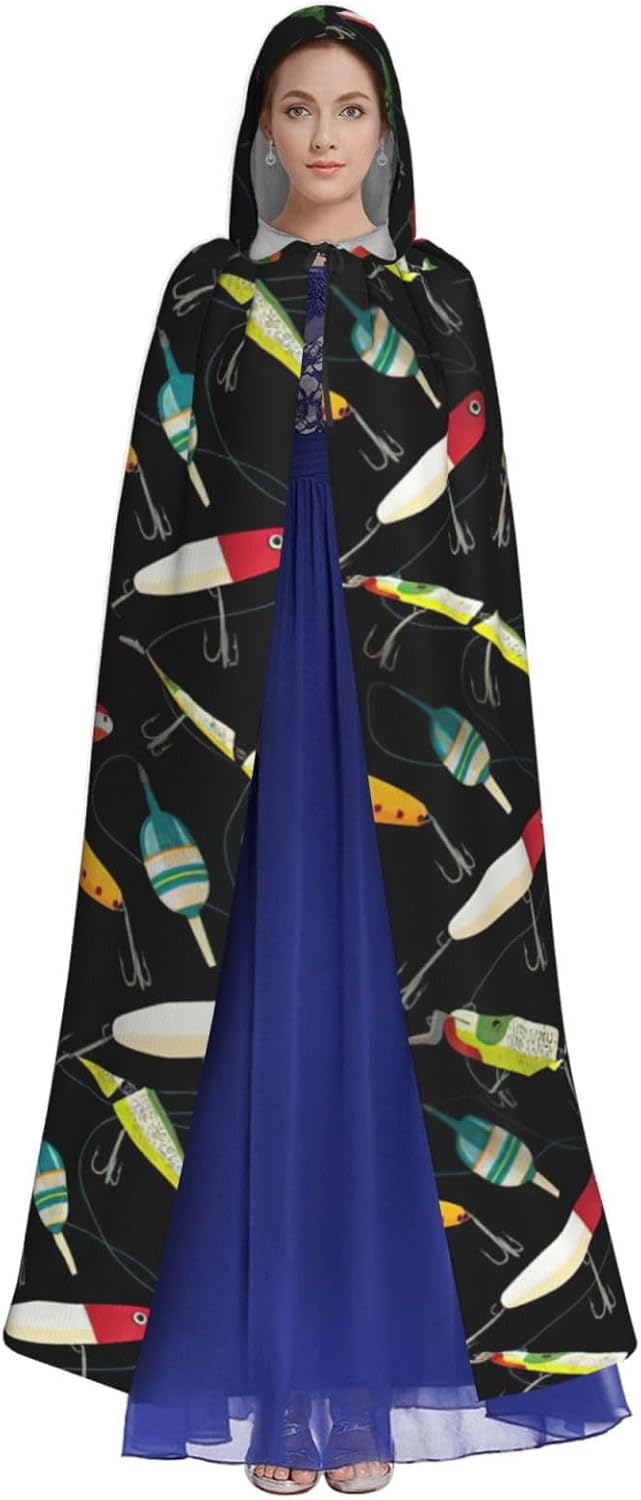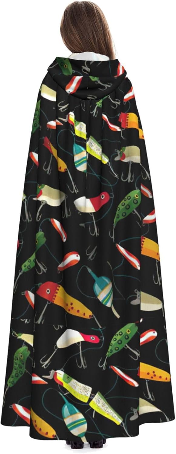 Mantello con cappuccio con stampa esca da pesca per tutti i costumi cosplay unisex decorazione di Halloween forniture di carnevale