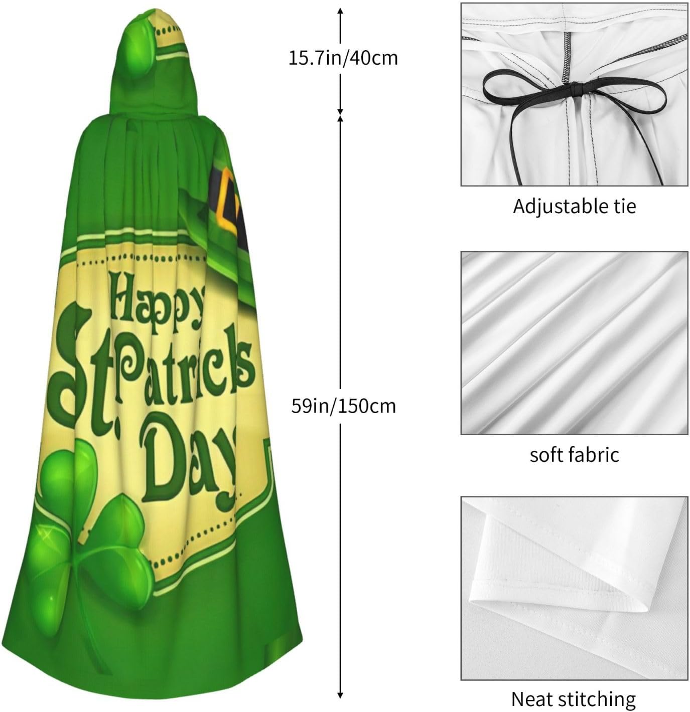 Mantello con cappuccio con stampa Happy St. Patrick's Day per tutti i costumi cosplay unisex decorazione di Halloween forniture di carnevale