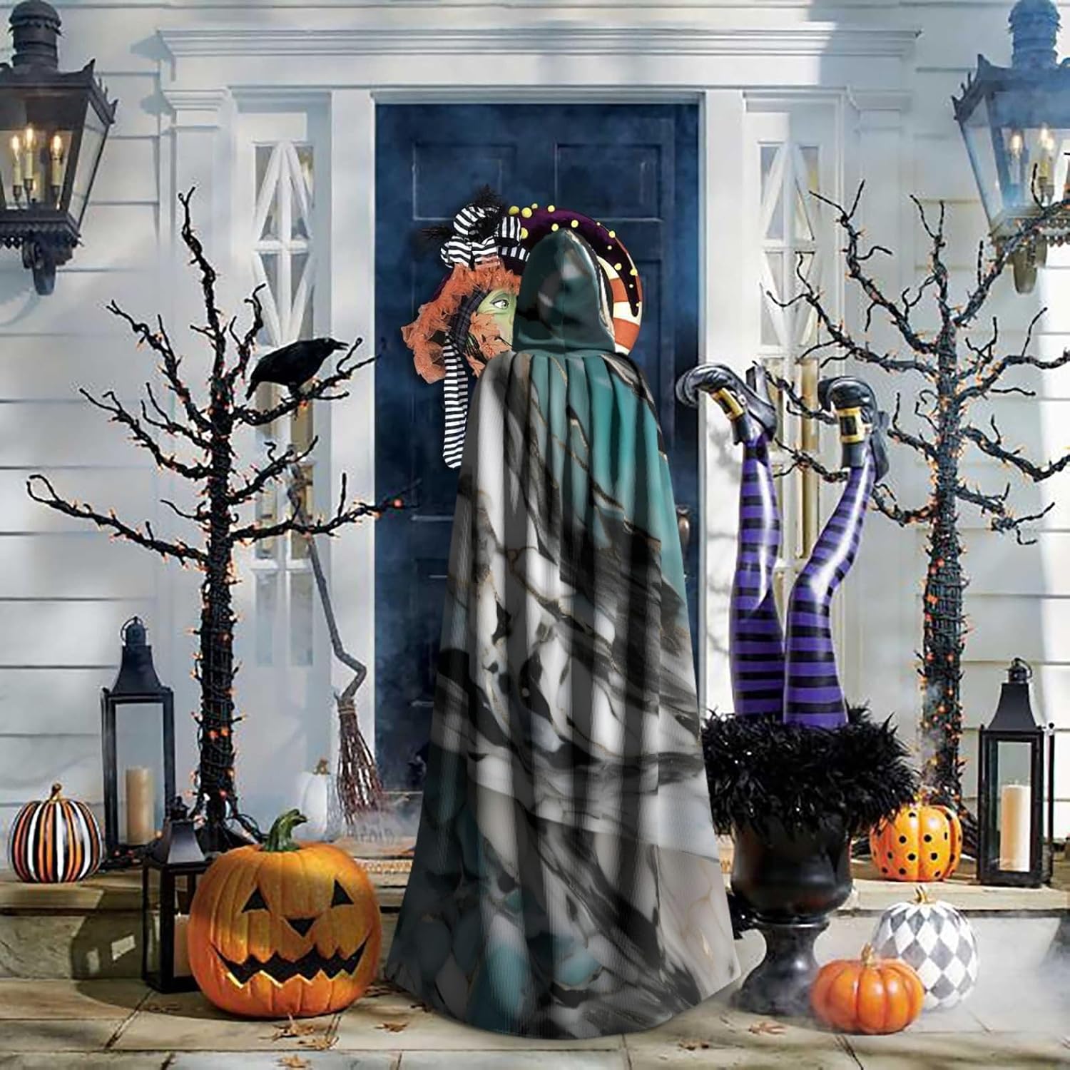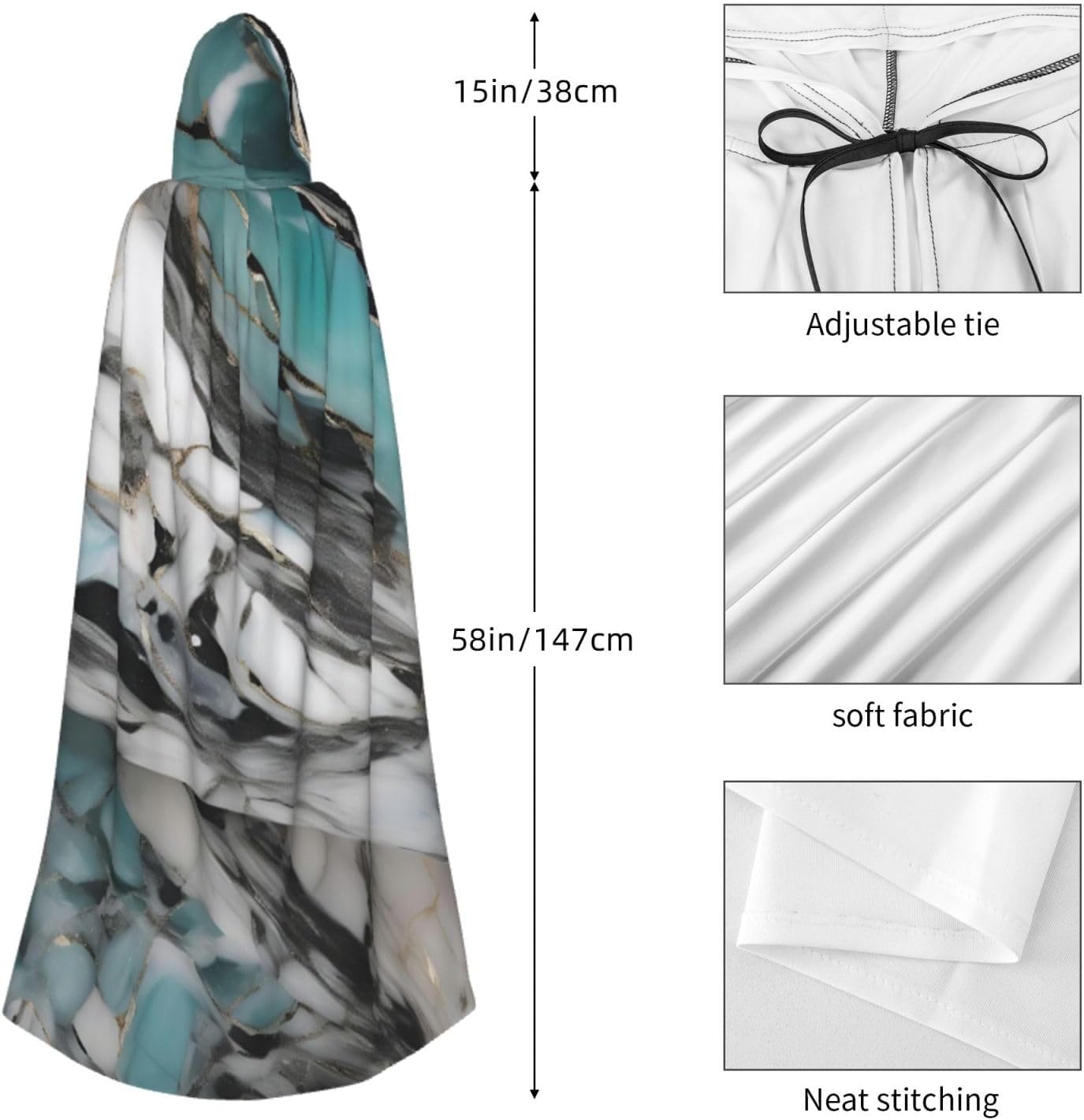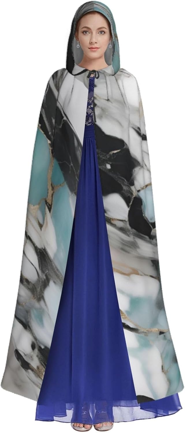 Mantello con cappuccio con stampa marmorizzata con cappuccio, un accattivante mantello con cappuccio per adulti per cosplay e Halloween