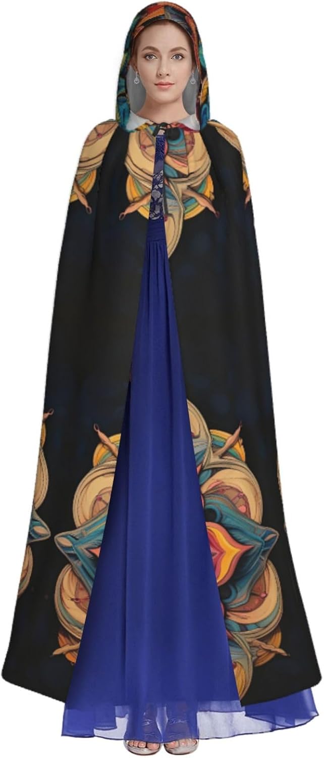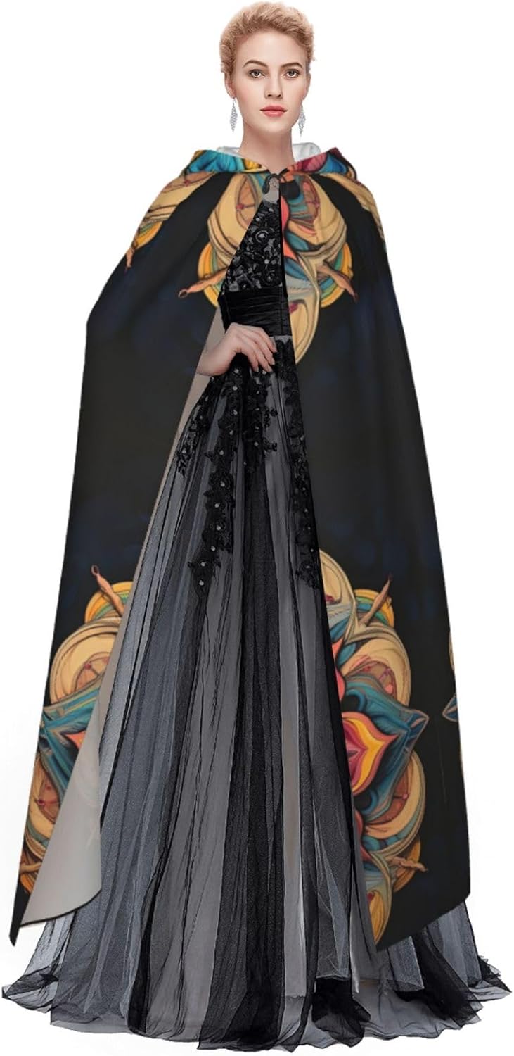 Mantello con cappuccio con stampa multipla con medaglione un accattivante mantello con cappuccio per adulti per cosplay e Halloween