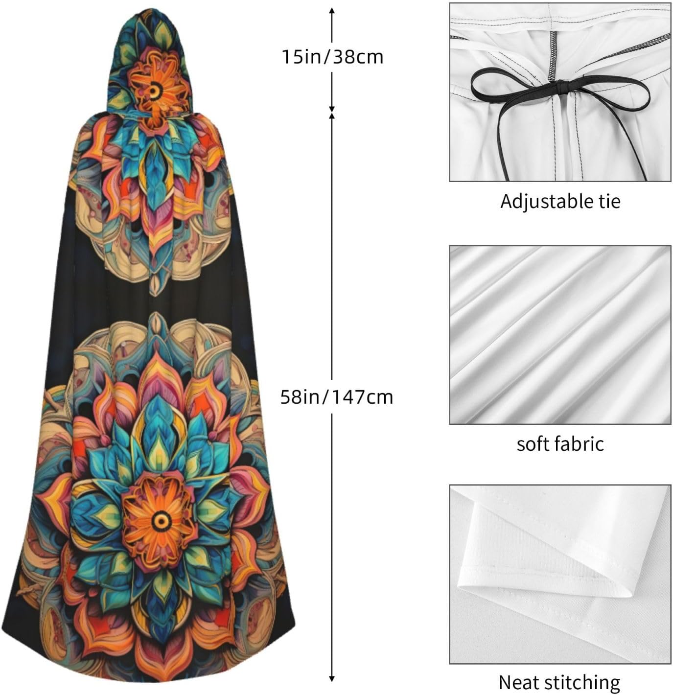 Il nostro mantello con cappuccio vanta un grande design che offre una copertura completa, indipendentemente dalla tua età. Si adatta generosamente intorno al corpo e drappeggia elegantemente, permettendoti di distinguerti dalla folla. Il cappuccio aggiunge un'aria di mistero, migliorando l'effetto generale del tuo costume. La sua applicabilità si estende oltre Halloween. Usalo per eventi cosplay, balli in maschera, mostre di fumetti e feste in costume. Con facili istruzioni di pulizia, mantenere questo mantello con cappuccio da uomo è un gioco da ragazzi. È lavabile in lavatrice e a mano, assicurando che rimanga fresco per il tuo prossimo evento.