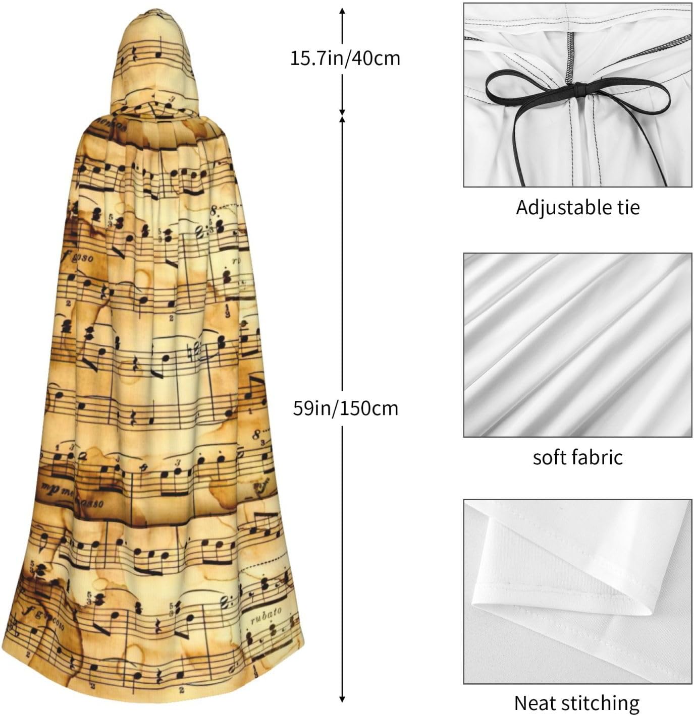 Mantello con cappuccio con stampa nota musicale per tutti i costumi cosplay unisex decorazione di Halloween forniture di carnevale