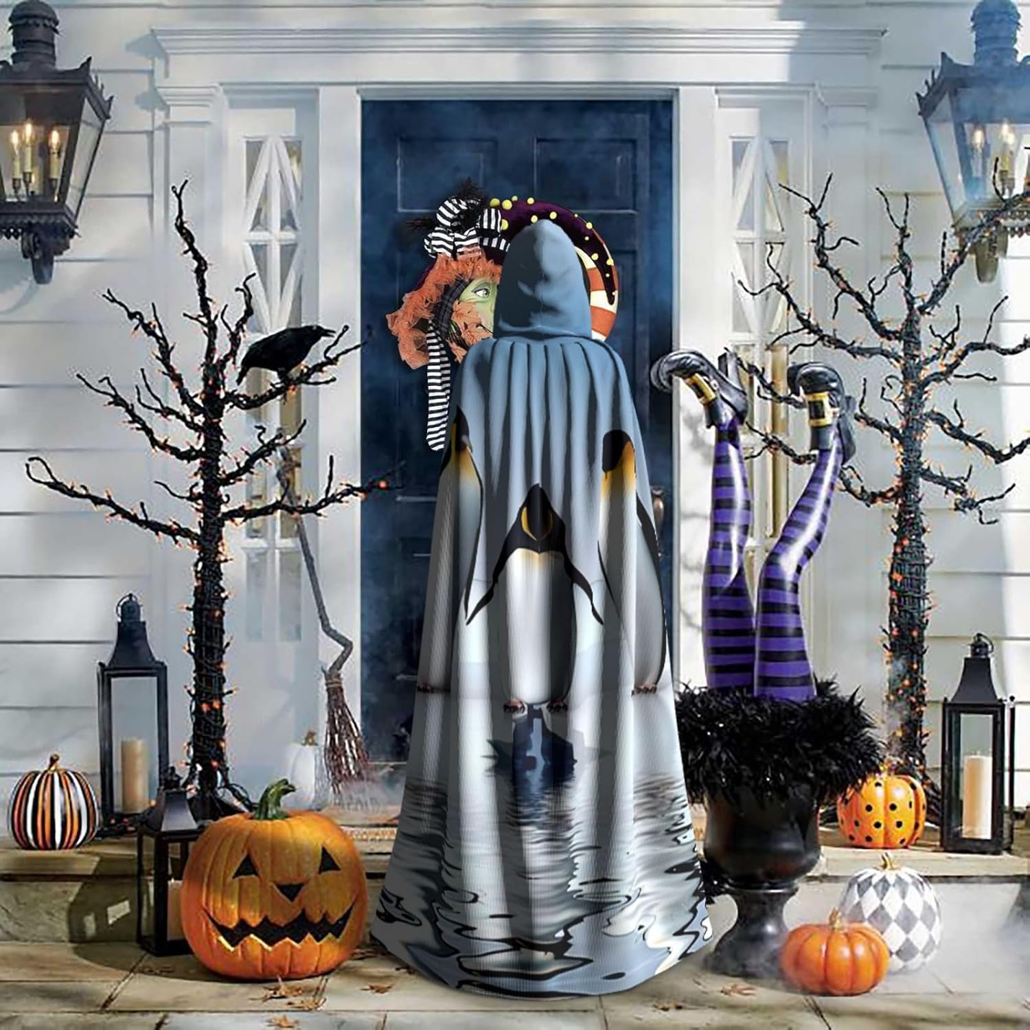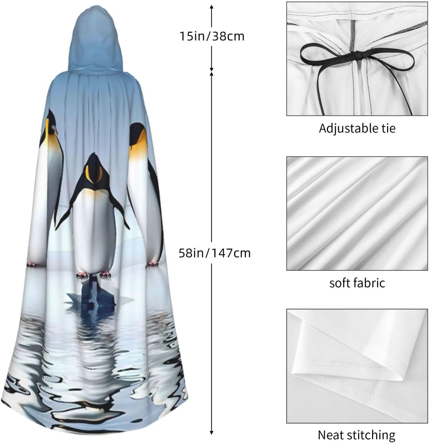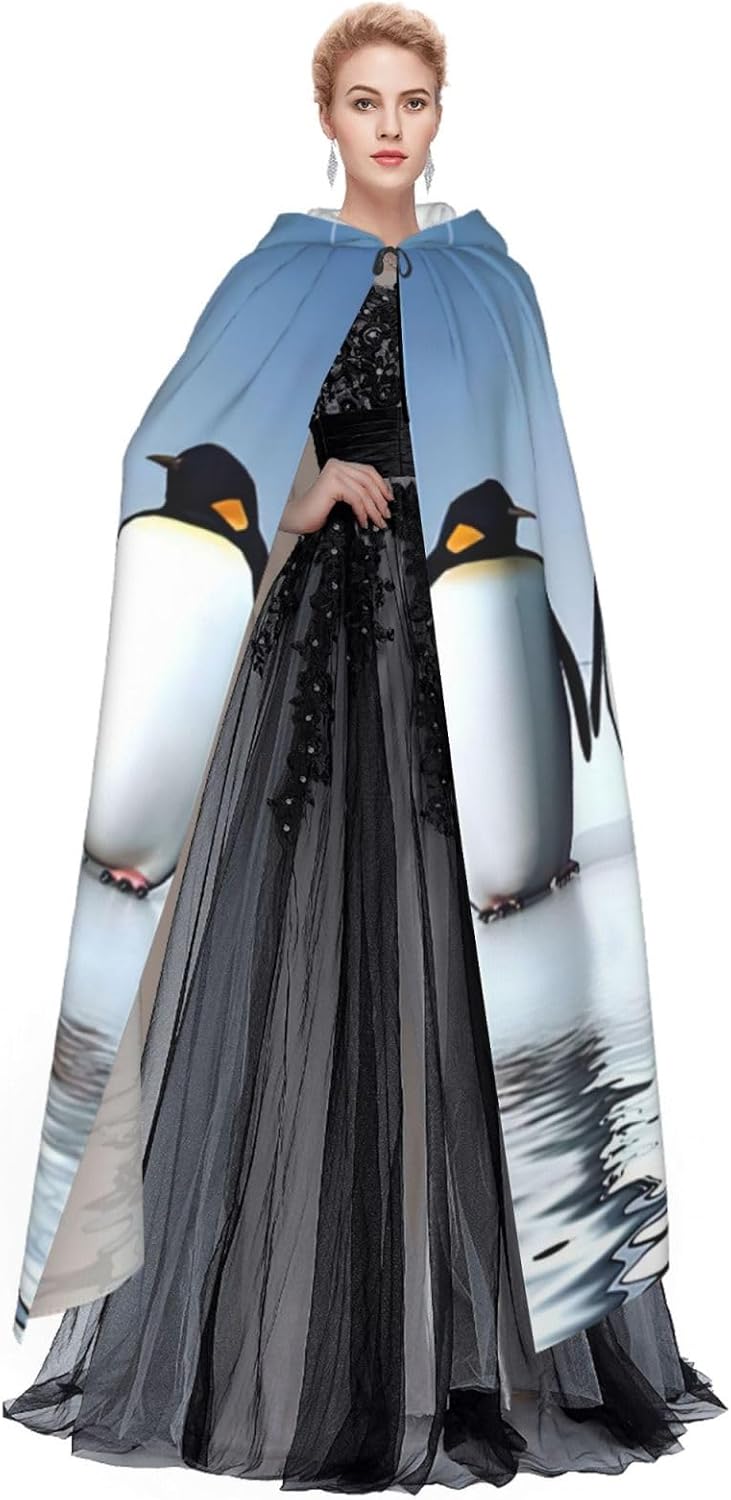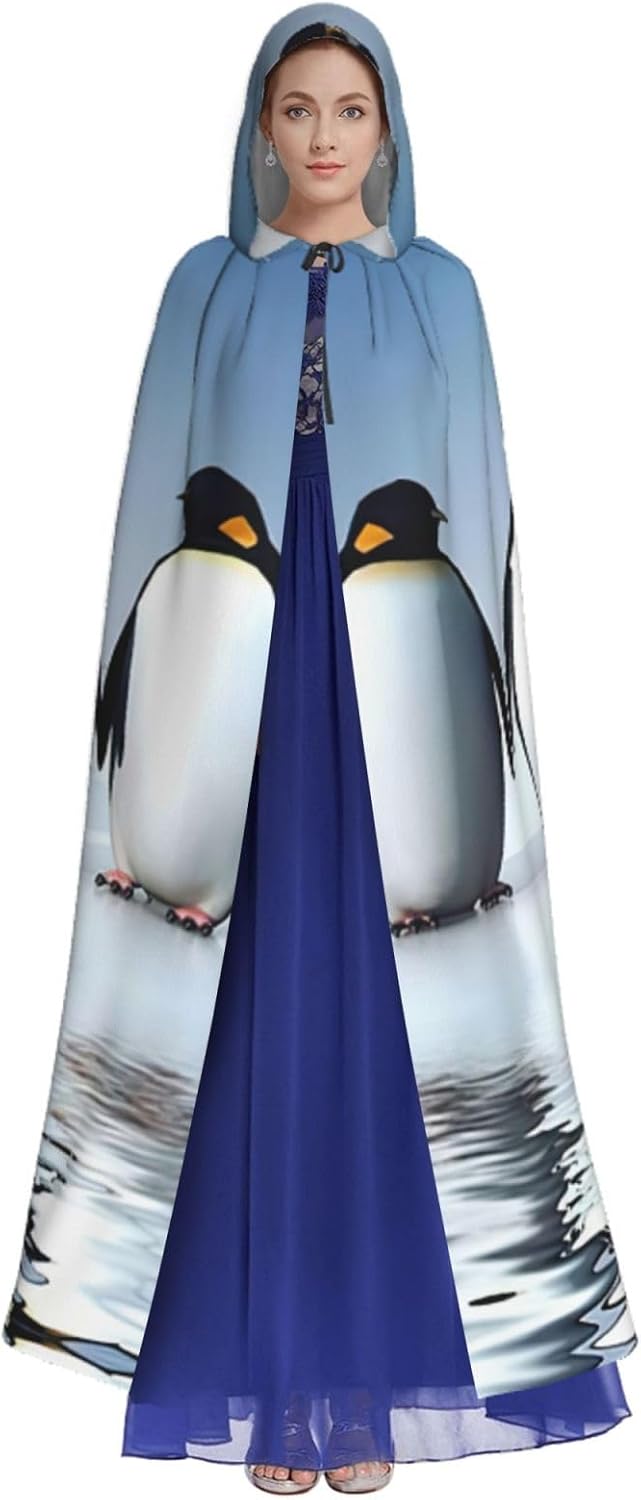 Mantello con cappuccio con stampa pinguino per adulti, elegante, per carnevale, feste a tema cosplay