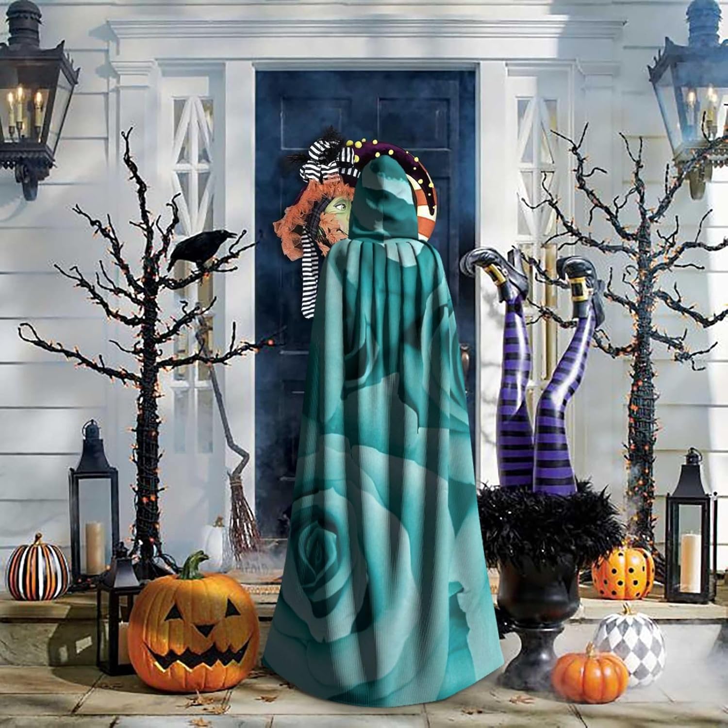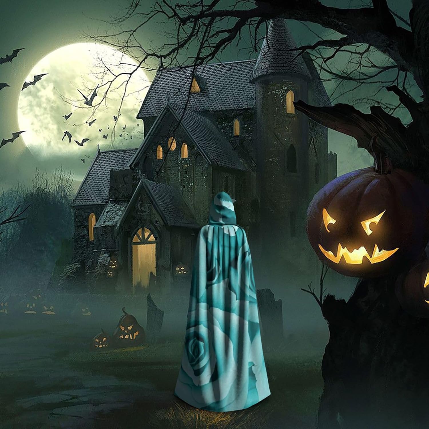Mantello con cappuccio con stampa rosa turchese e cappuccio, un accattivante mantello con cappuccio per adulti per cosplay e Halloween