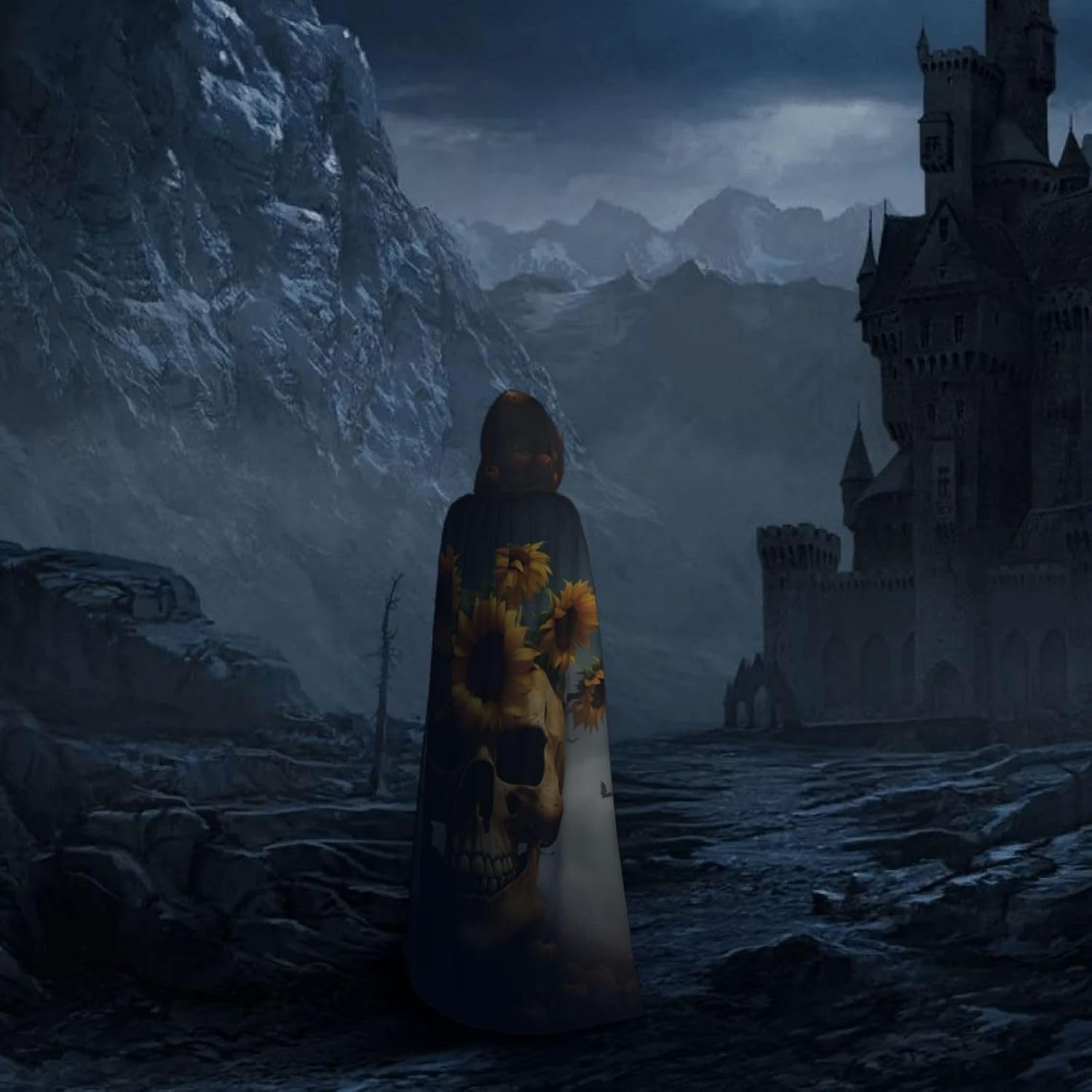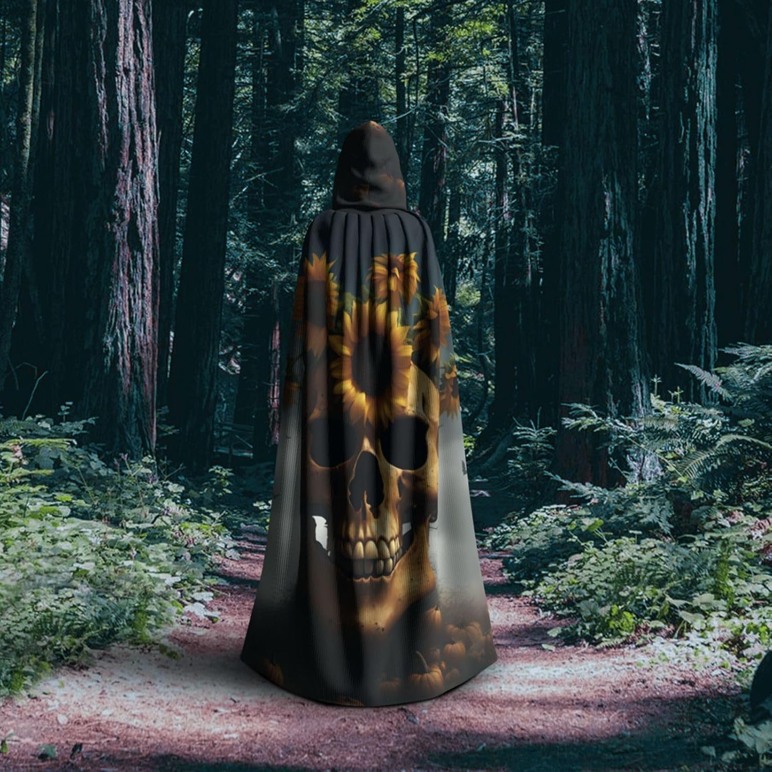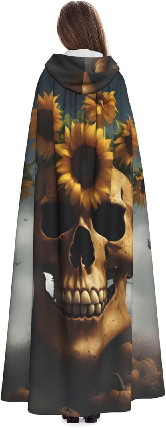 Mantello con cappuccio con stampa teschio di girasole per tutti i costumi cosplay unisex decorazione di Halloween forniture di carnevale