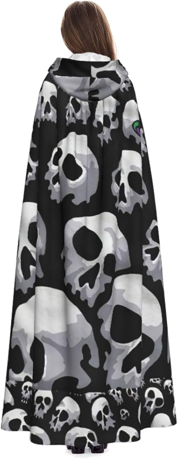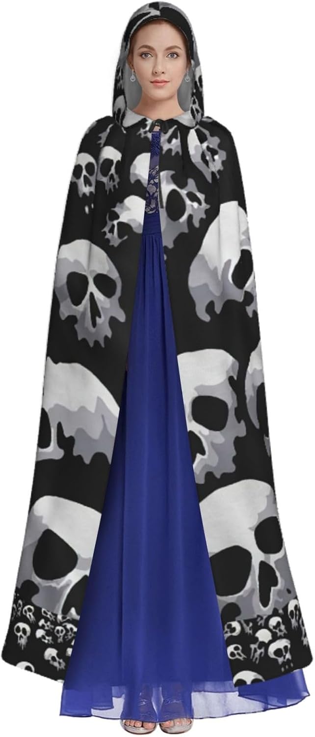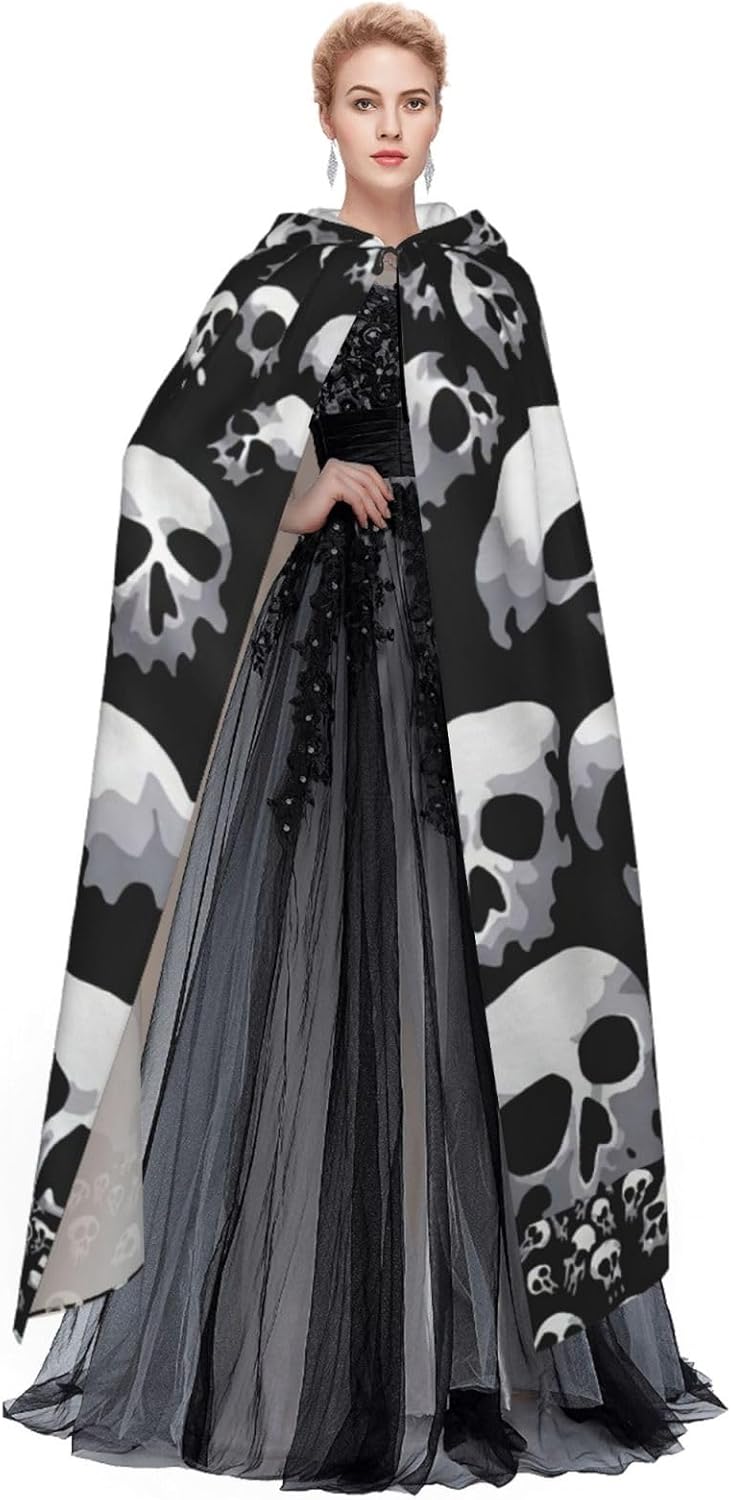 Mantello con cappuccio con stampa teschio per adulti, elegante, per carnevale, feste a tema, cosplay