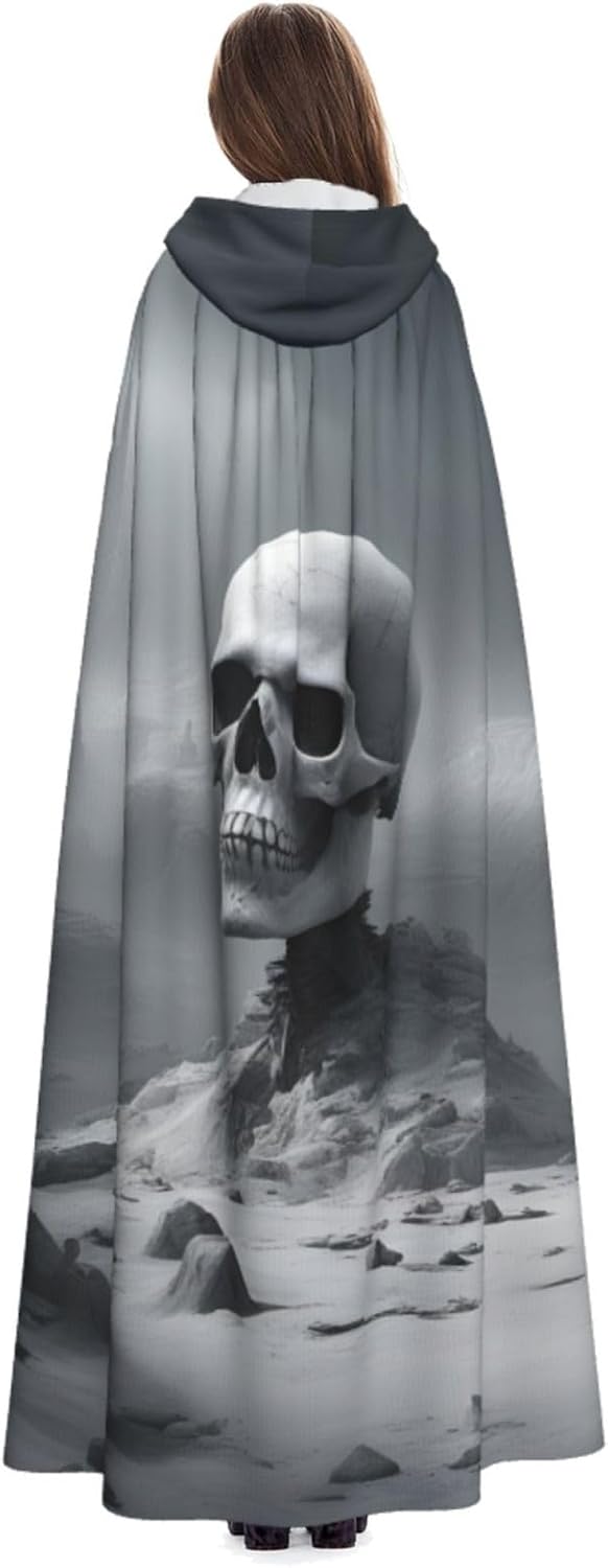 Mantello con cappuccio con stampa teschio punk bianco con cappuccio un accattivante mantello con cappuccio per adulti per cosplay e Halloween