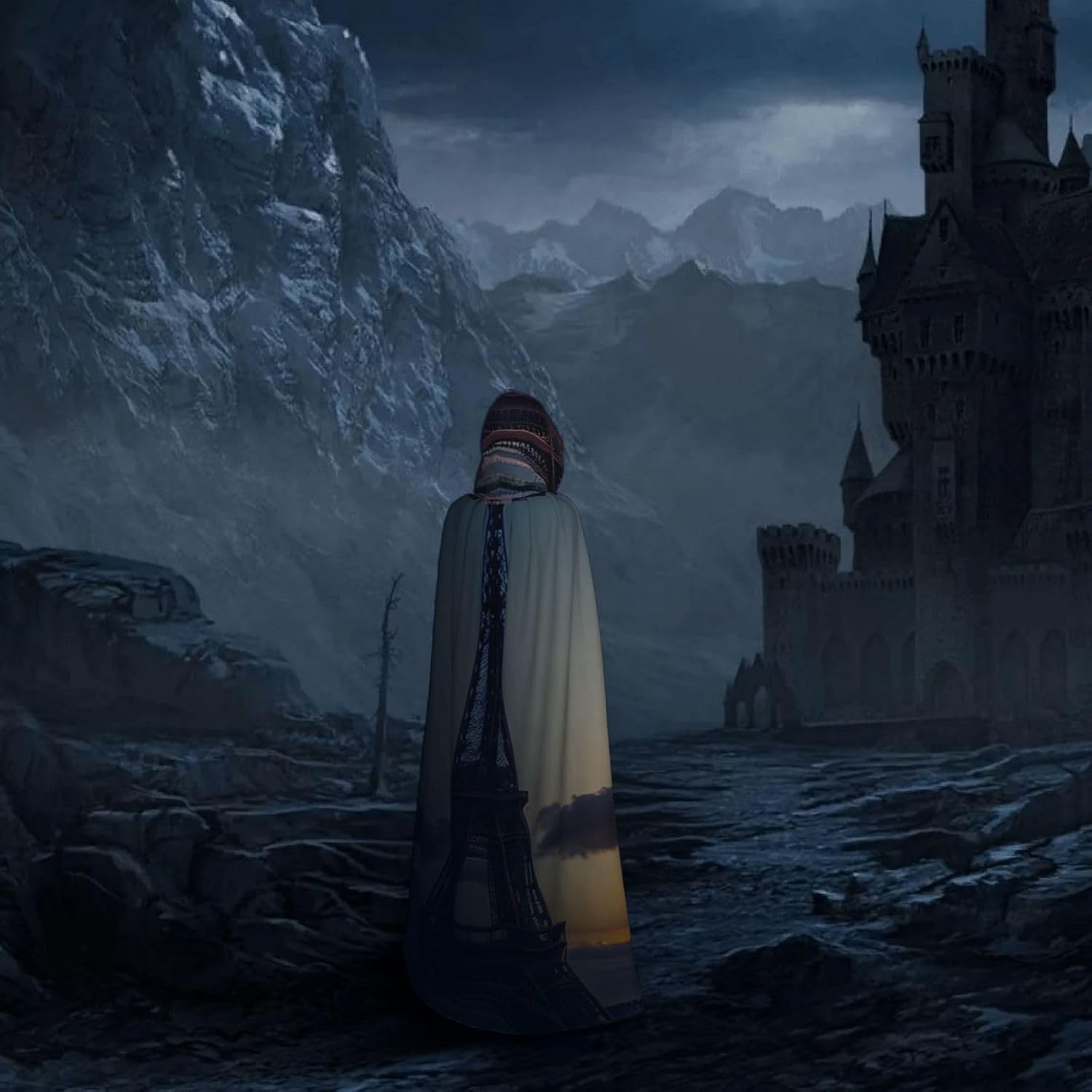 Mantello con cappuccio con stampa Torre Eiffel per tutti i costumi cosplay unisex decorazione di Halloween forniture di carnevale