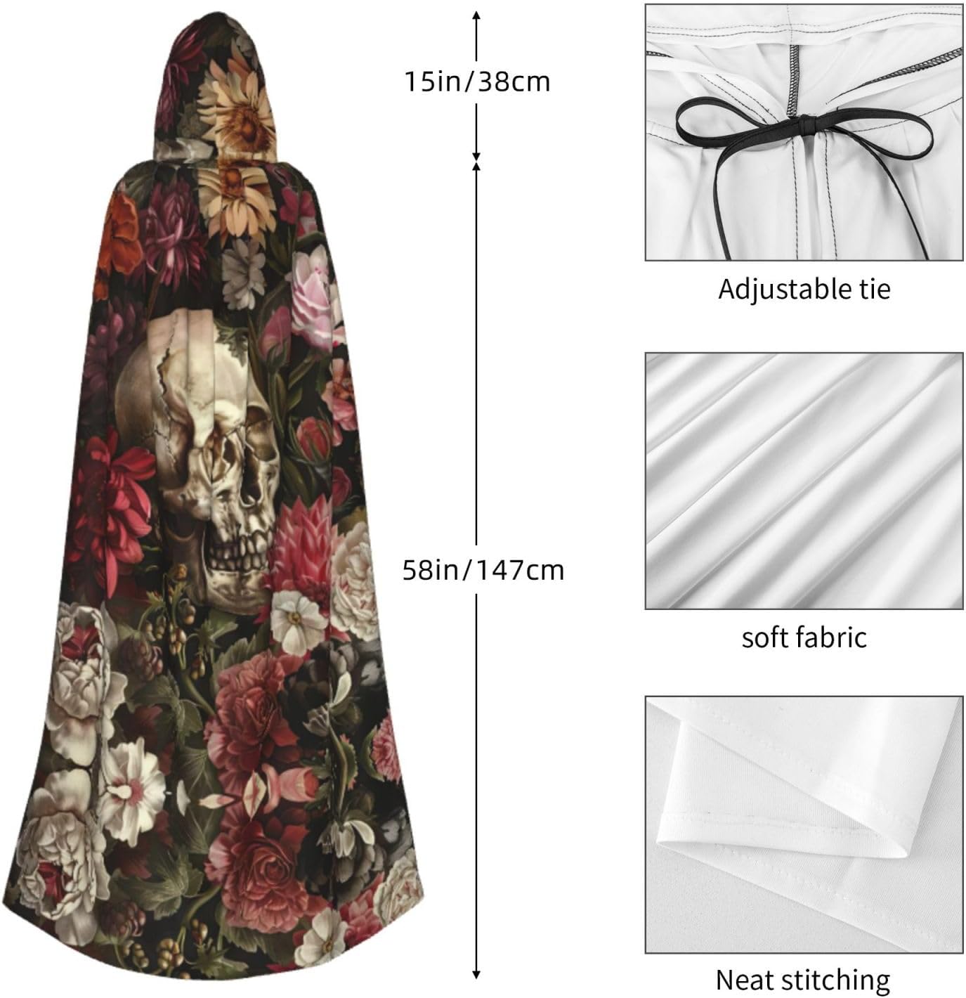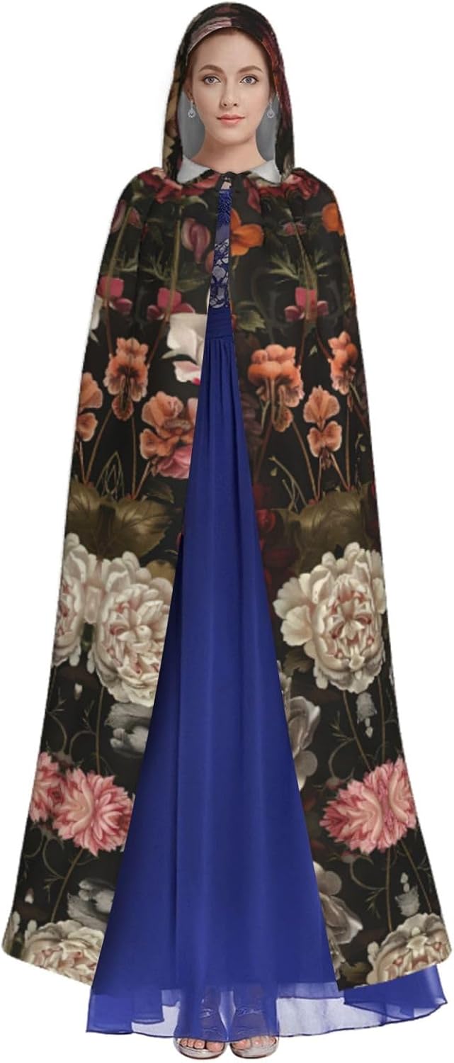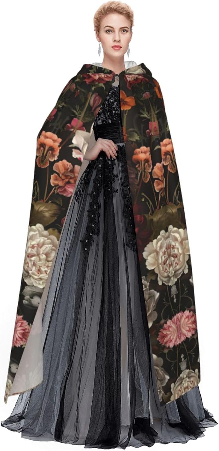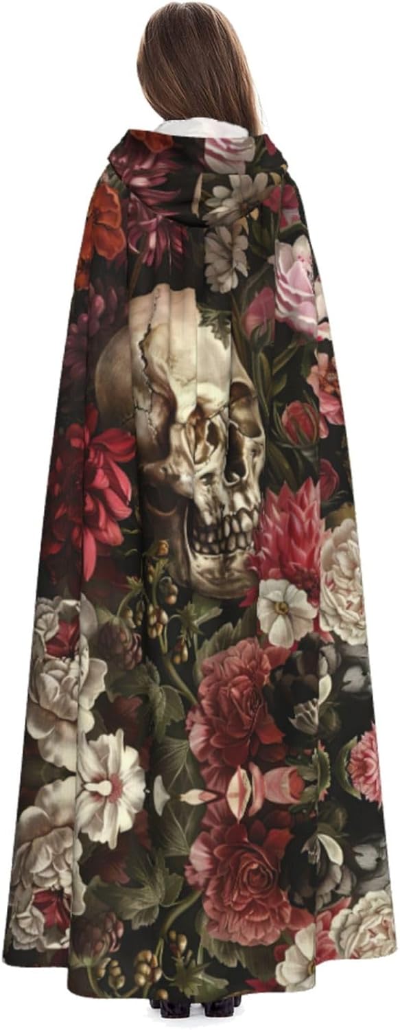 Mantello con cappuccio con teschio floreale mantello medievale mantello da mago mantello nero per adulti costume da strega