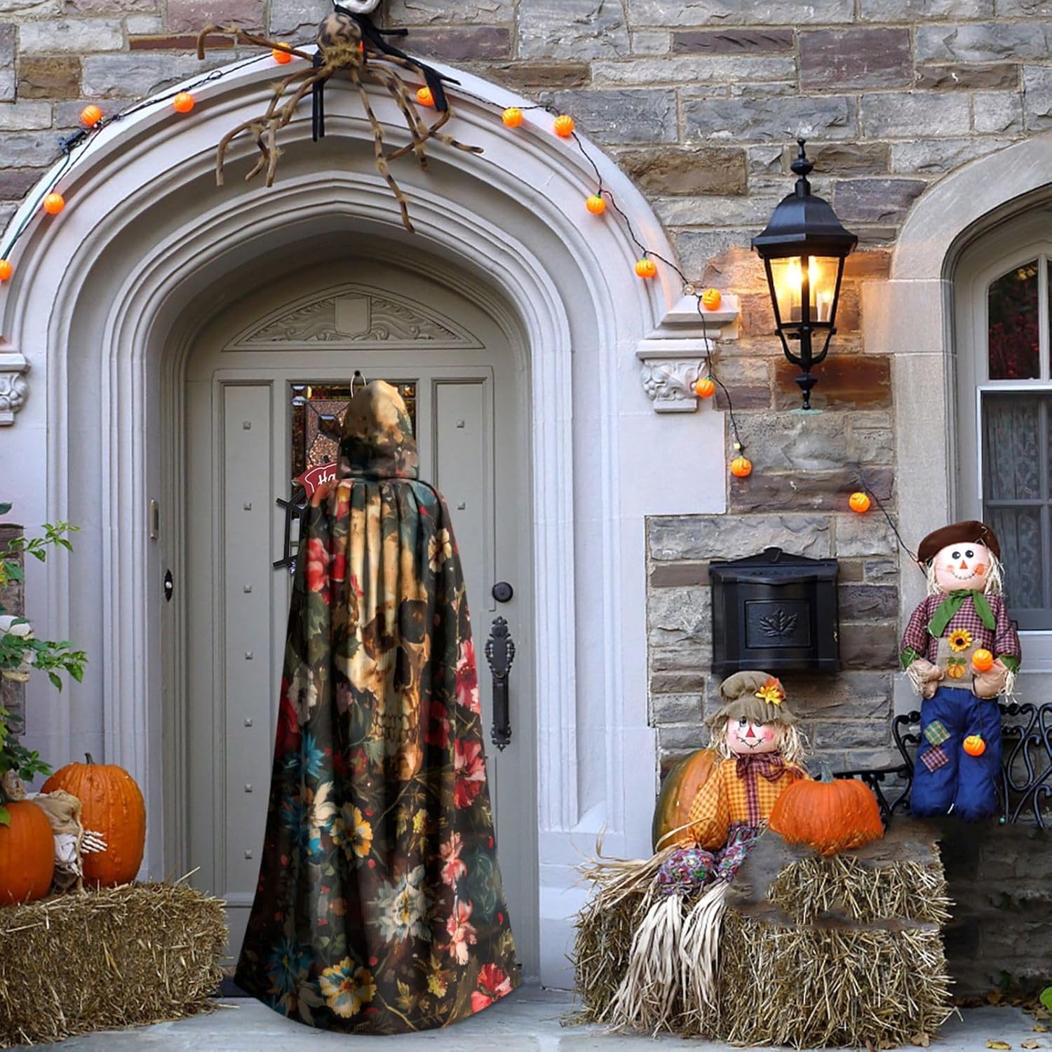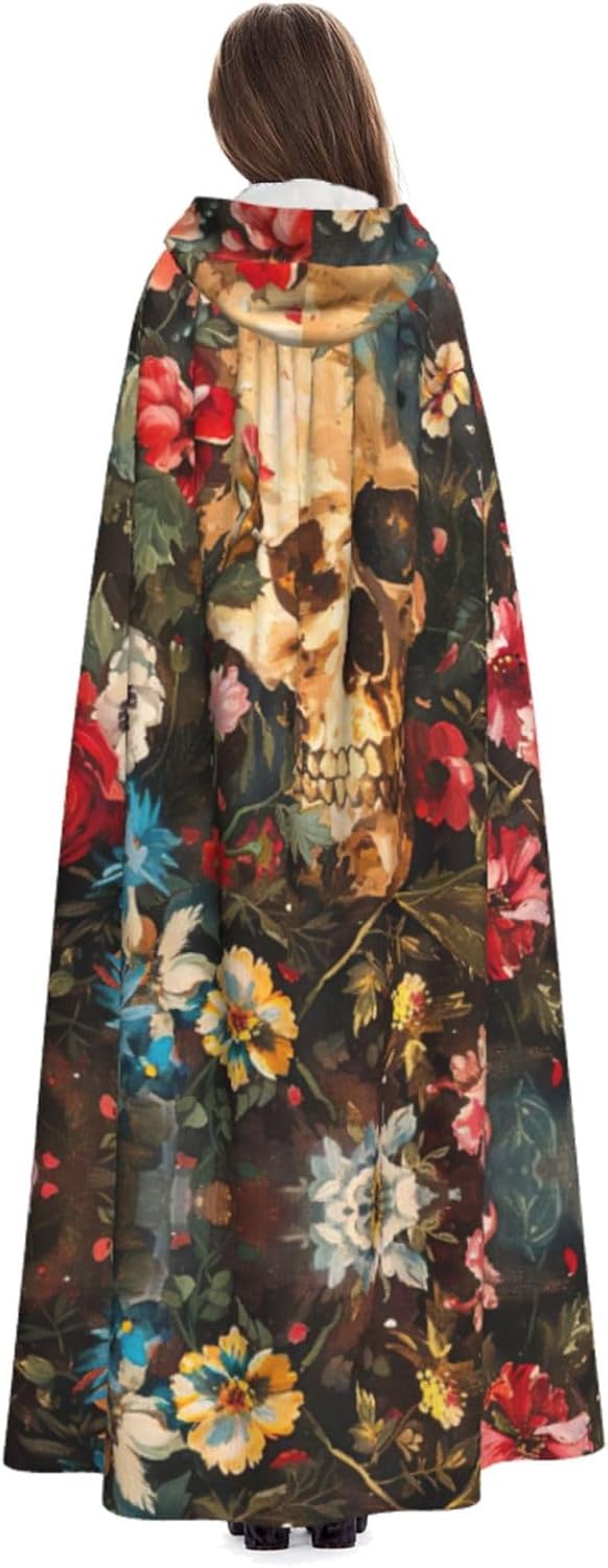 Mantello con cappuccio con teschio floreale mantello medievale mantello da mago mantello nero per adulti costume da strega