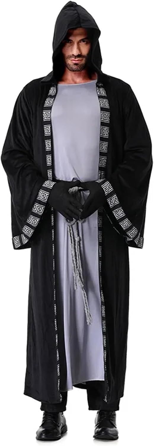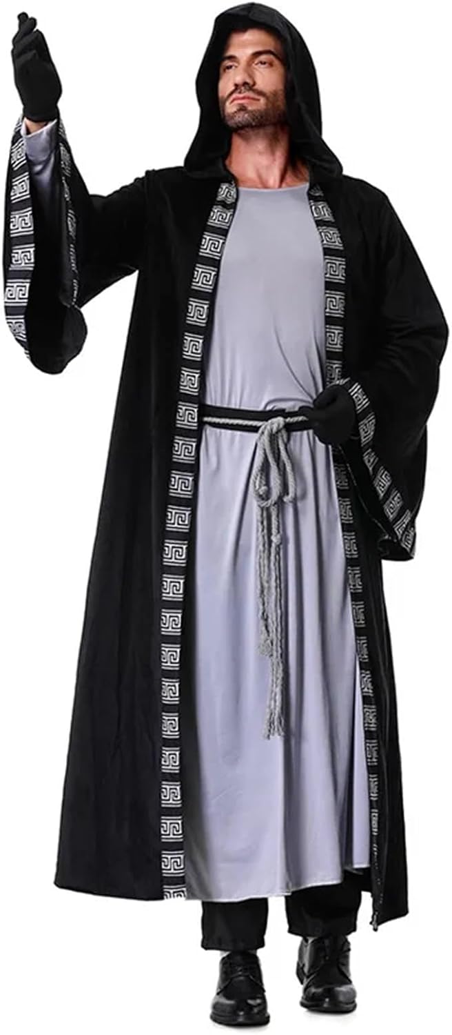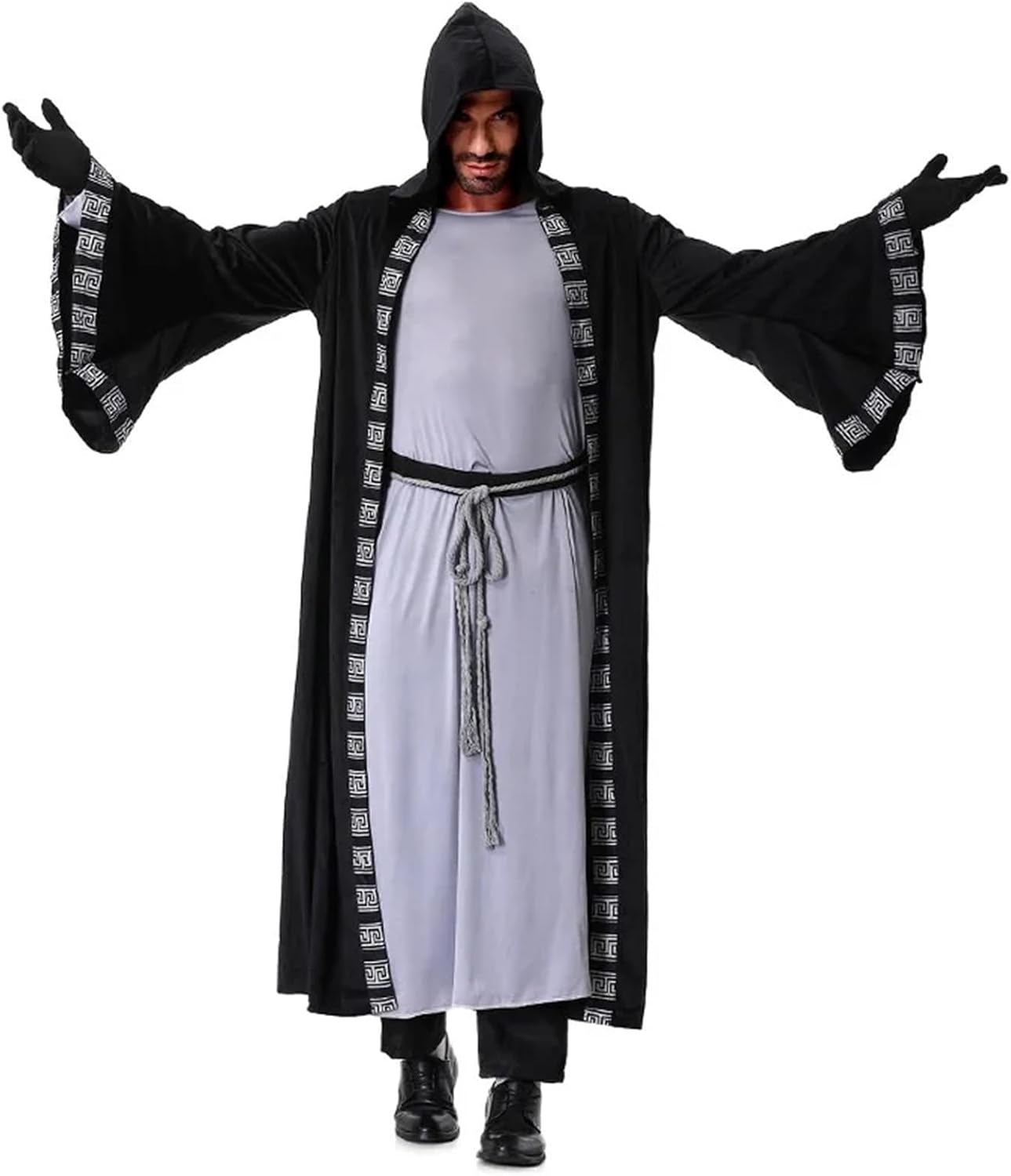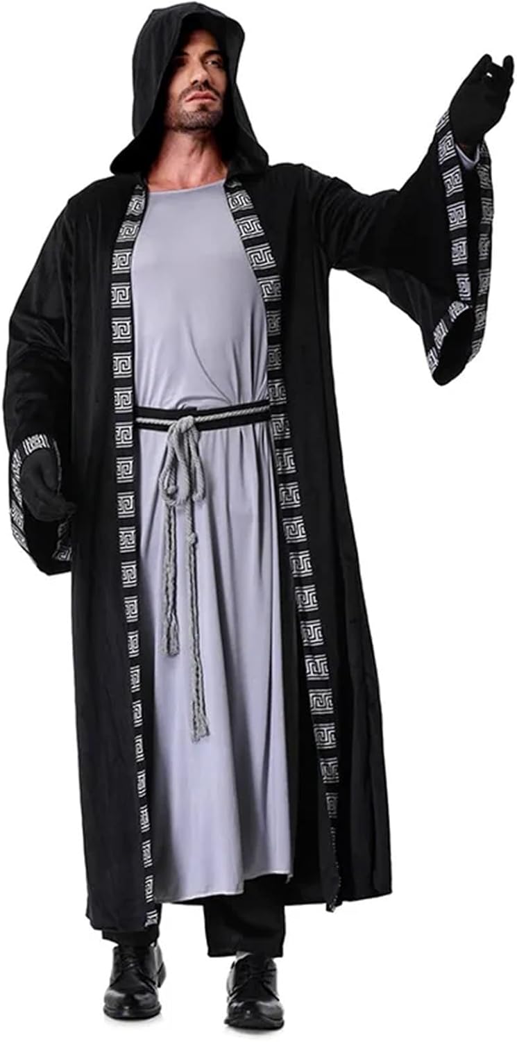Mantello Con Cappuccio Costume da mago medievale for adulti, con cappuccio, mantello, cintura e guanti, for gioco di ruolo Halloween Per Halloween(XL)