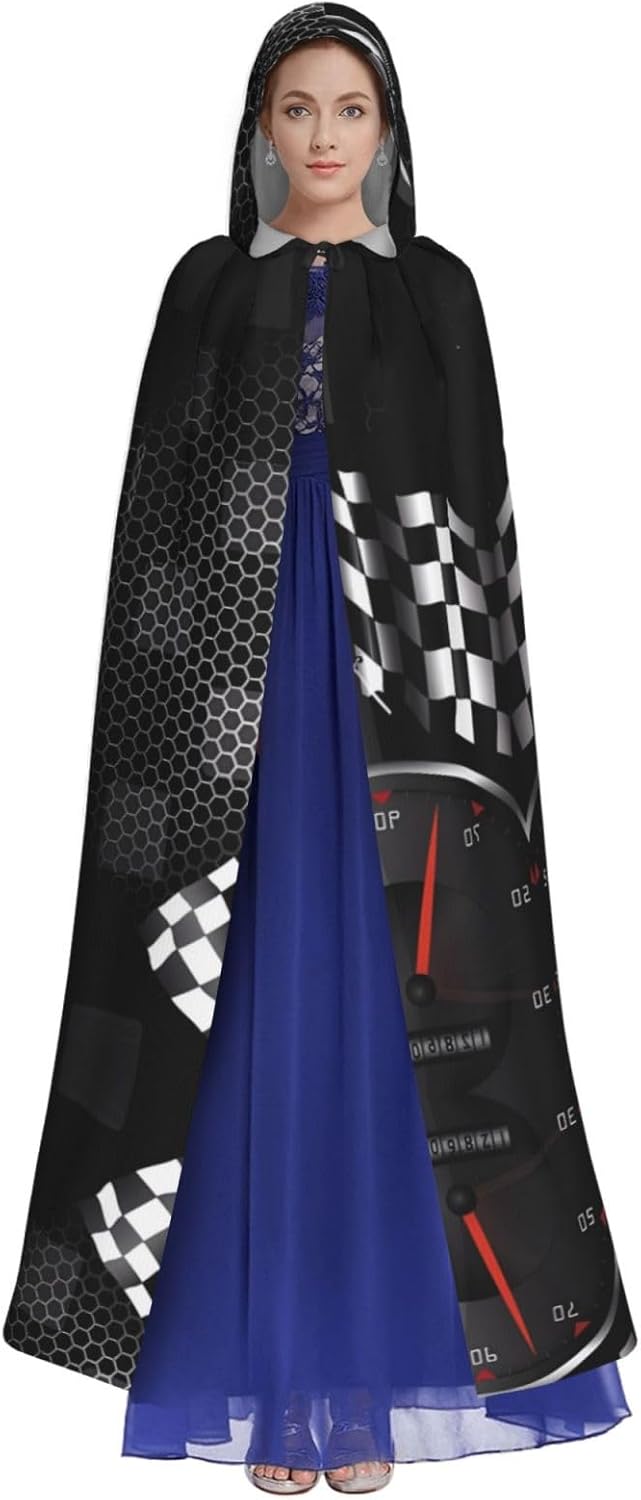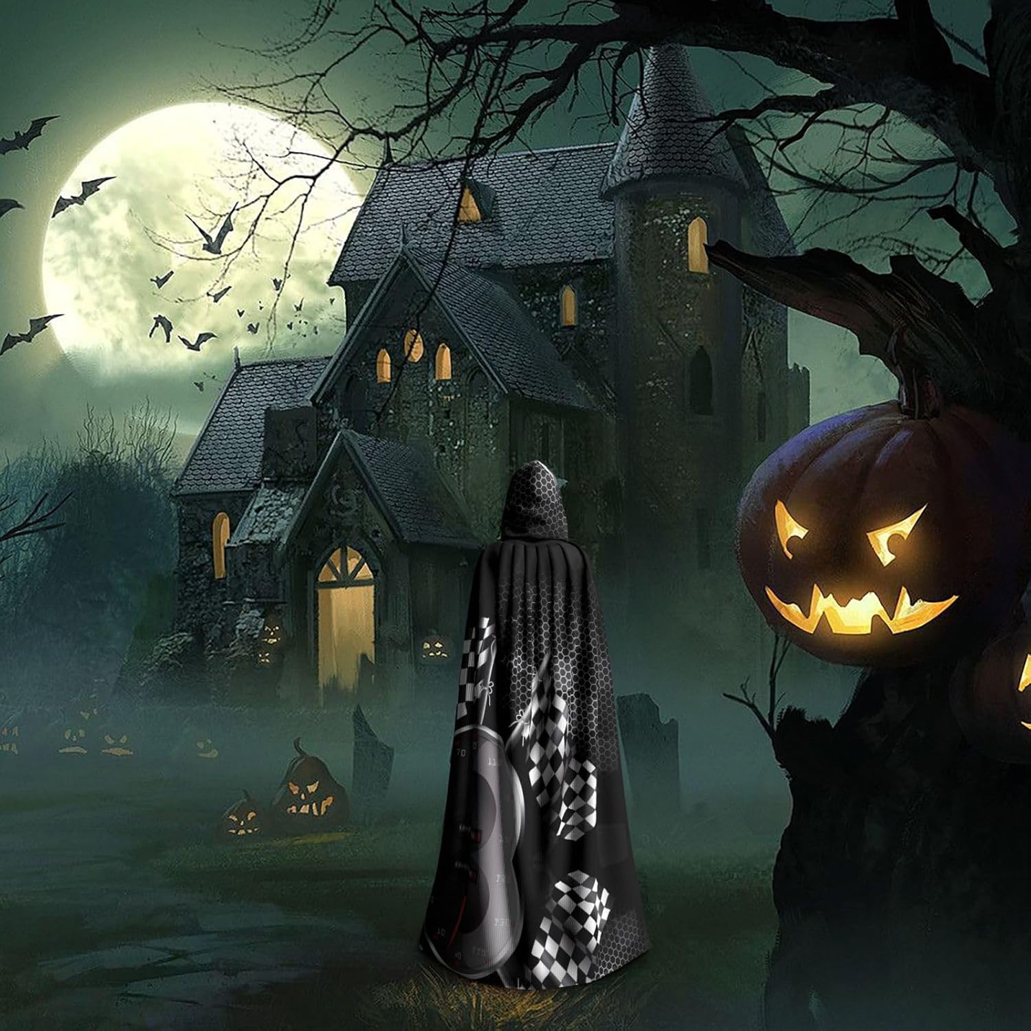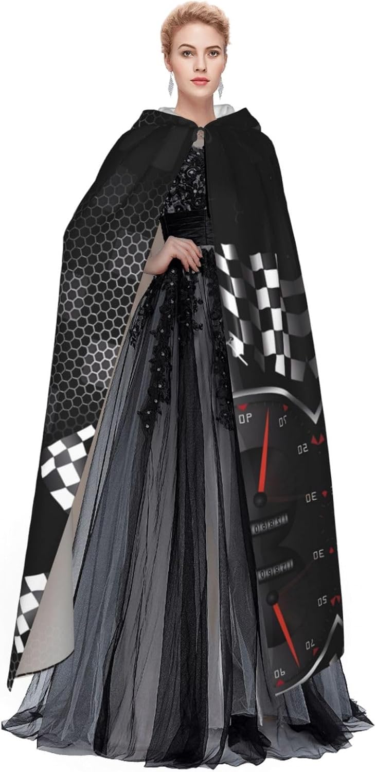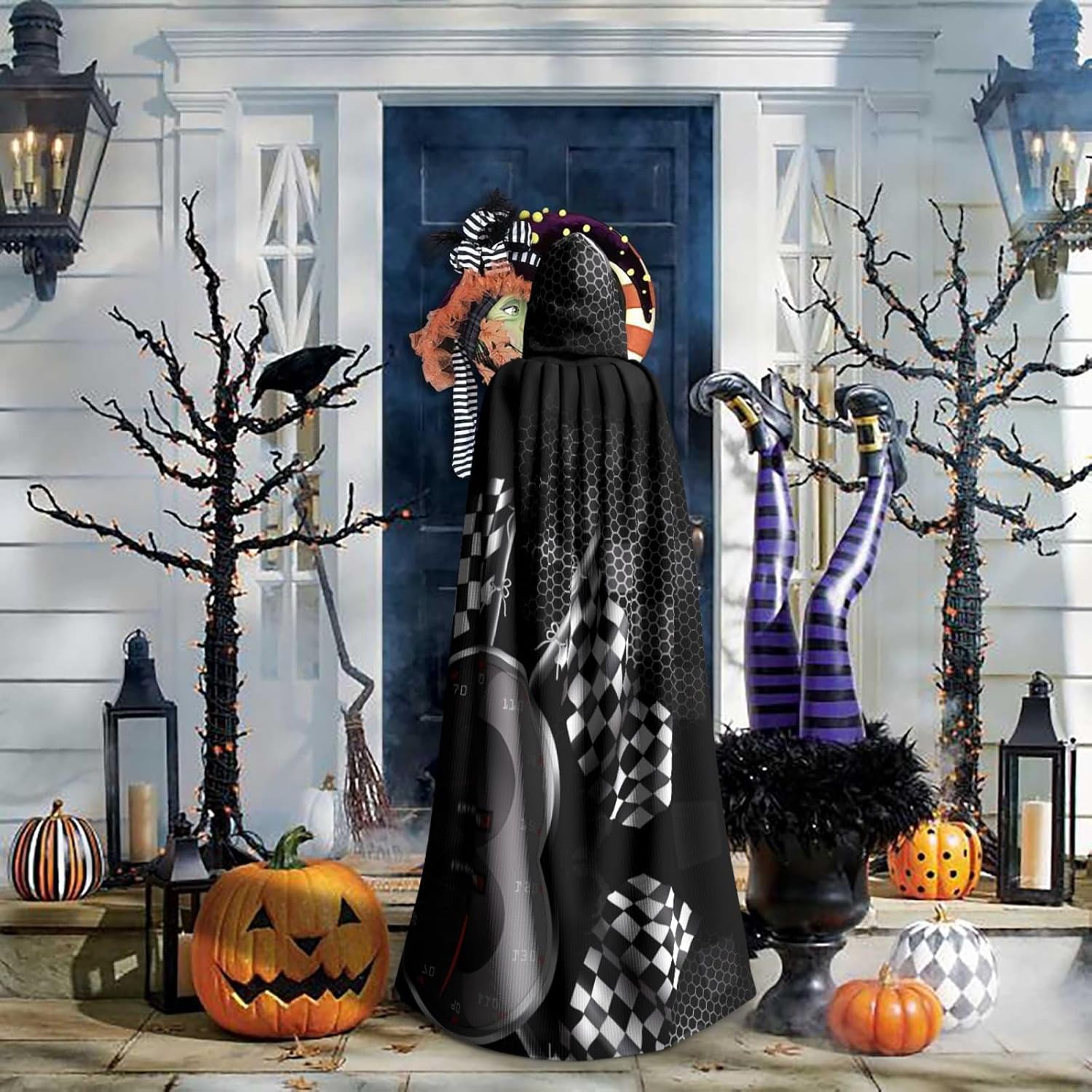 Mantello con cappuccio da corsa con bandiera a scacchi, abiti da uomo e da donna per adulti, costumi cosplay di Natale e Halloween, feste in costume