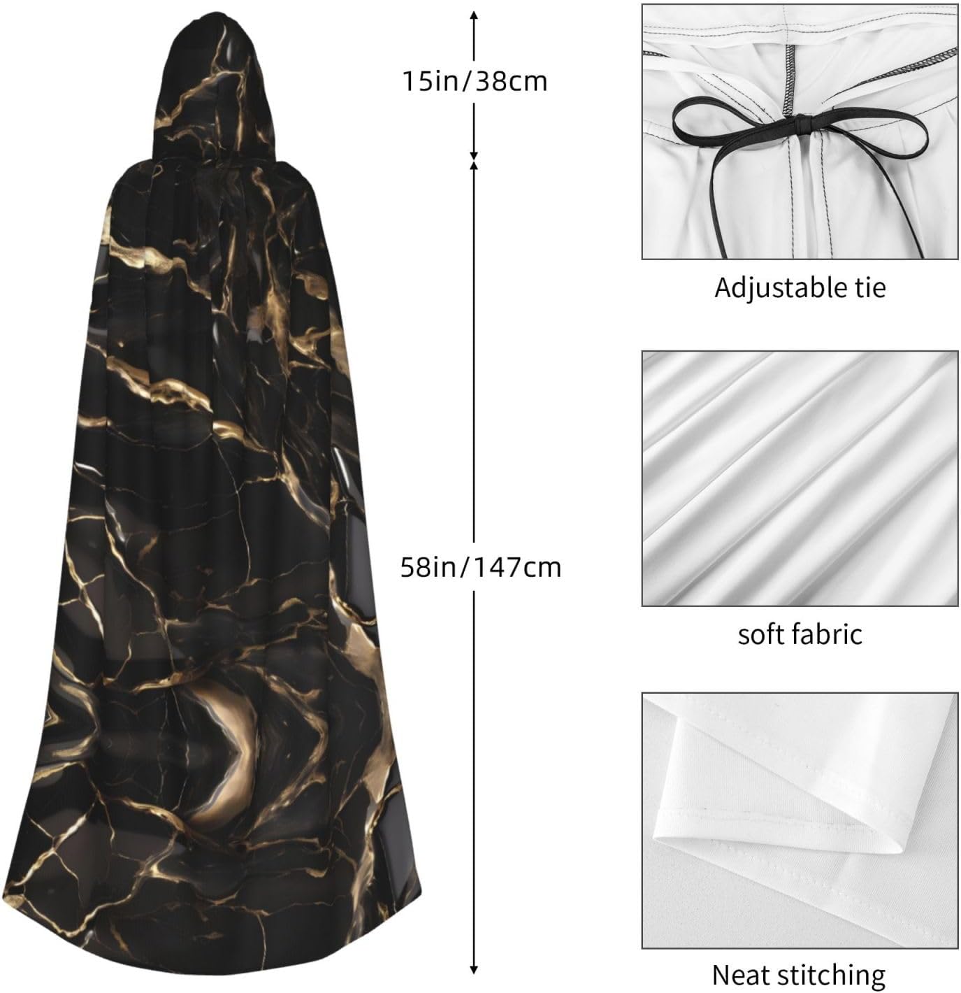 Stampa di larghezza del mantello con cappuccio in marmo nero oro \r Descrizione del materiale: 100% fibra di poliestere (poliestere). \r Prestazioni del prodotto: il mantello con cappuccio oversize è realizzato in tessuto lungo, resistente e non pruriginoso, senza cravatta, senza cerniera, comodo mantello con cappuccio e tessuto lungo, resistente e non prurito) \r Scenari applicabili adatti per Halloween, costumi cosplay, costumi da palco, feste in maschera, feste a tema, balli, convegni di fumetti, ecc. Può essere utilizzato per feste, carnevale, Halloween, feste in costume, ecc. \r Istruzioni di lavaggio: lavabile in lavatrice a mano, facile da pulire e durevole