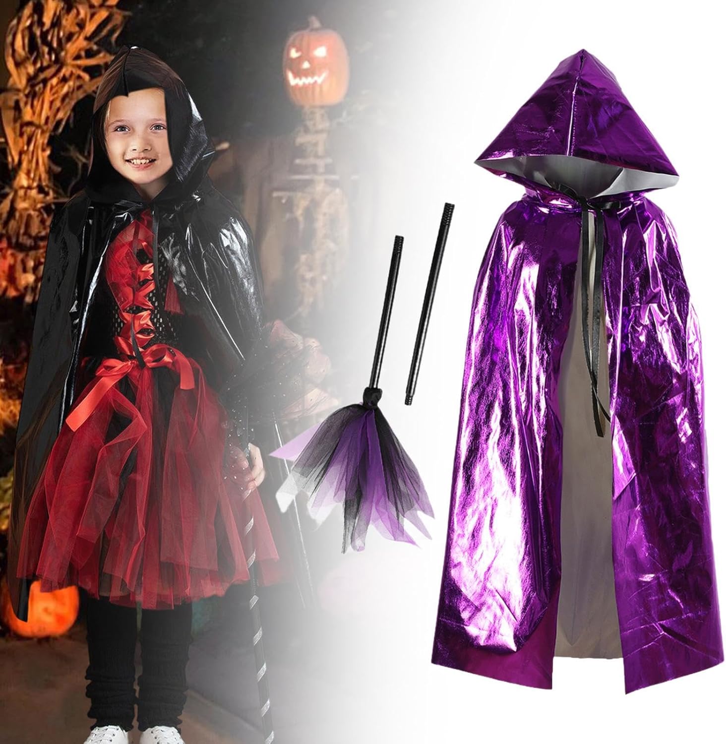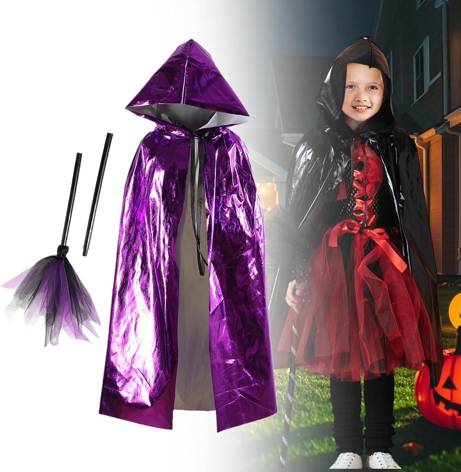 【Divertimento di gioco di ruolo versatile】: ideale per una vasta gamma di occasioni tra cui Halloween, streghe o cosplay, balli in maschera, spettacoli teatrali, carnevali e feste in maschera a tema 【Comfort e durata】: realizzato in fibra di poliestere, questo mantello è leggero, morbido e robusto, garantendo un uso confortevole per ore di divertimento festivo 【Set completo di costumi】: questo pacchetto include un mantello con cappuccio e una scopa abbinata, fornendo un costume completo ed emozionante 【Regalo】: crea senza sforzo un'atmosfera spettrale, mantello da mago per feste di Halloween e , che è un regalo ideale per i bambini 【Design incantevole per bambini】: progettato per i bambini, questo classico mantello con cappuccio presenta una chiusura a laccio sicura e un'accattivante finitura , rendendo i tuoi bambini eleganti e accattivanti