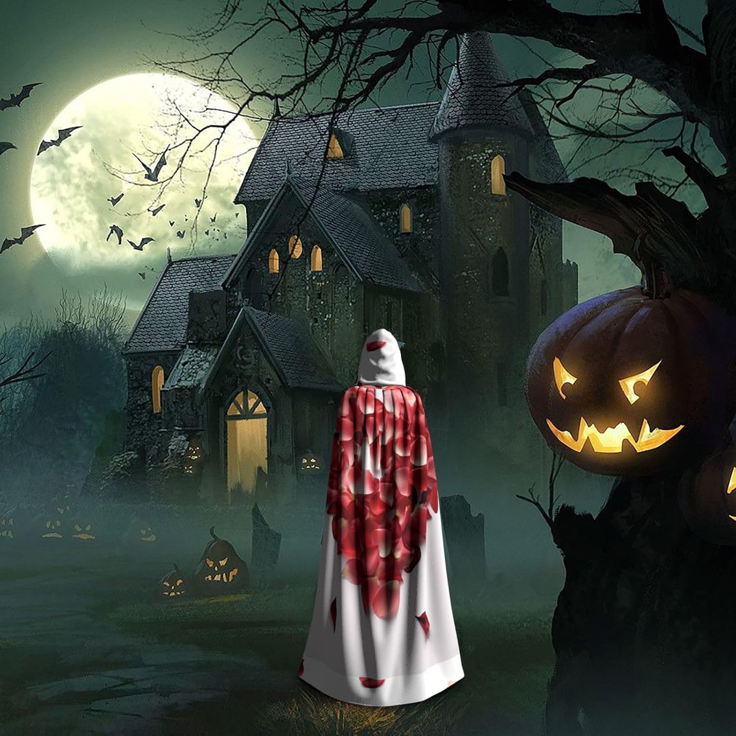 Adulto Il nostro Mantello Con Cappuccio Di Halloween Descrizione del design: stampa a tutta larghezza, adatto per uomini e donne adulti. Descrizione del materiale: 85% fibra di poliestere, 15% spandex. Prestazioni del prodotto: utilizzando un mantello oversize è un papillon, senza cerniera e un comodo mantello con cappuccio con tessuti lunghi, resistenti e non pruriginosi. Scene applicabili: adatto per Halloween, Natale, costumi cosplay festivi, costumi da palcoscenico, feste in maschera, feste a tema, feste da ballo, fiere di fumetti, ecc. Può essere utilizzato per feste, carnevale, Halloween, feste in costume e molto altro ancora. Istruzioni di lavaggio: lavare a mano in lavatrice, facile da pulire e durevole. Buon Halloween e Buon Natale per la tua famiglia.