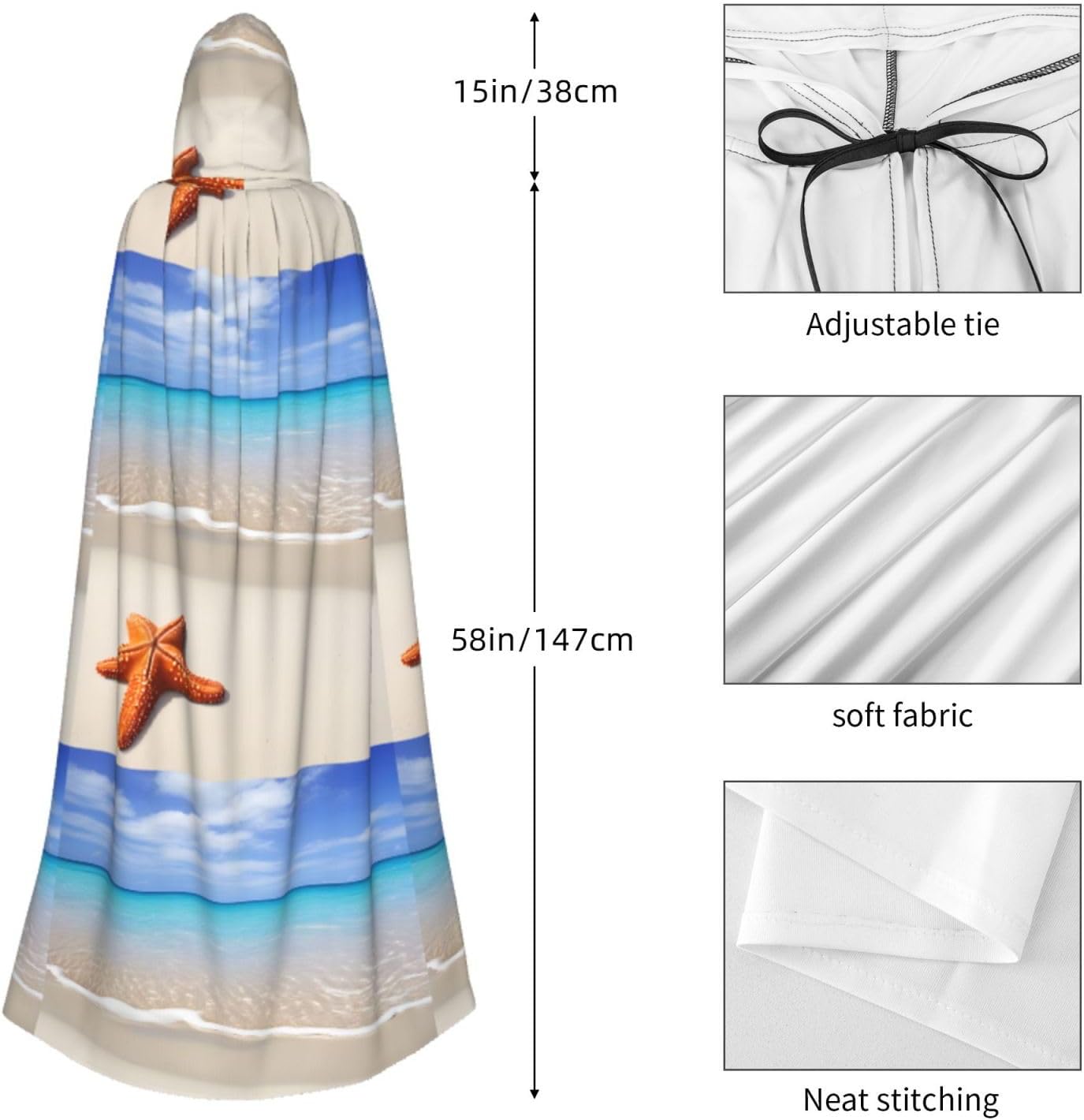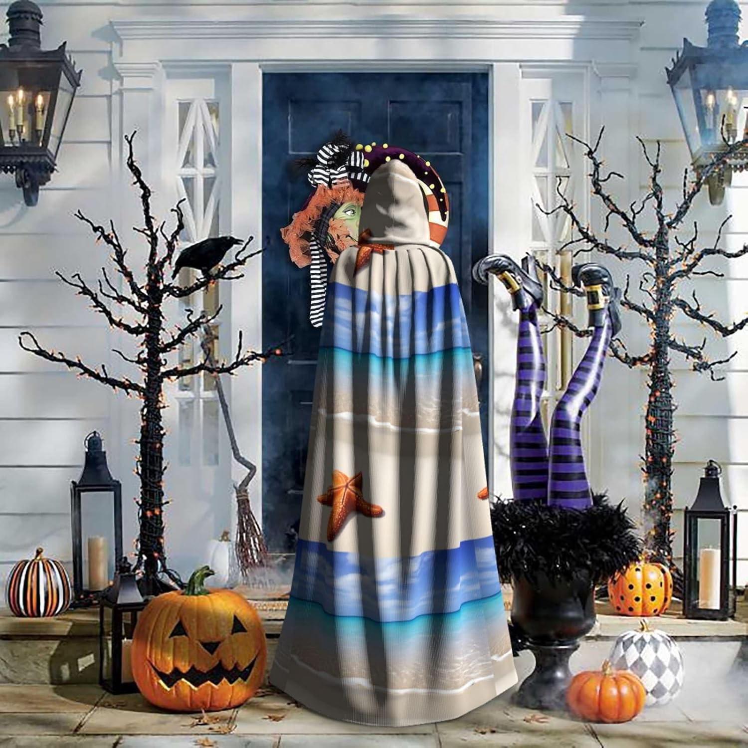 Mantello con cappuccio da strega mago di Halloween, mantello con cappuccio natalizio per cosplay, per adulti, uomini, donne, bomboniere, forniture per feste, vestiti, vestiti, costume - mare