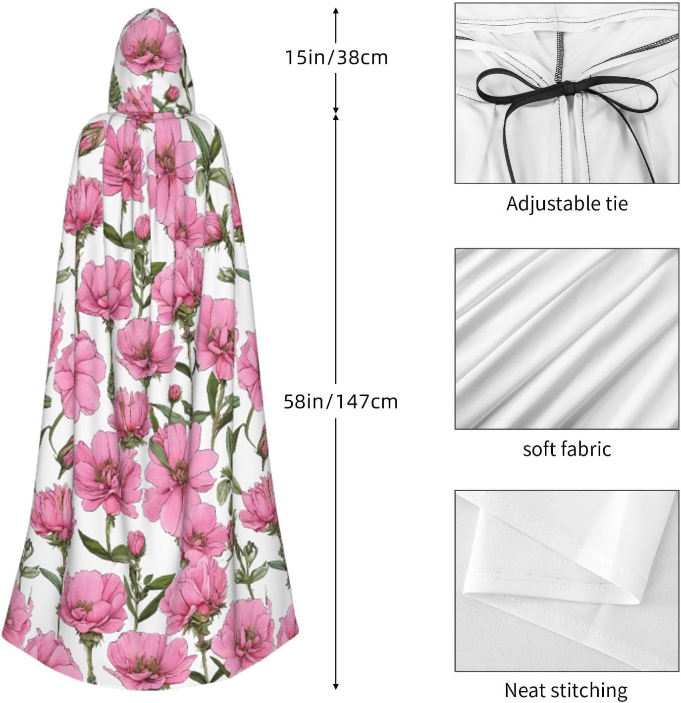 Mantello con cappuccio da strega mago di Halloween, mantello con cappuccio natalizio per cosplay, per adulti, uomini, donne, bomboniere, forniture per feste, vestiti, vestiti, costume - Peonia