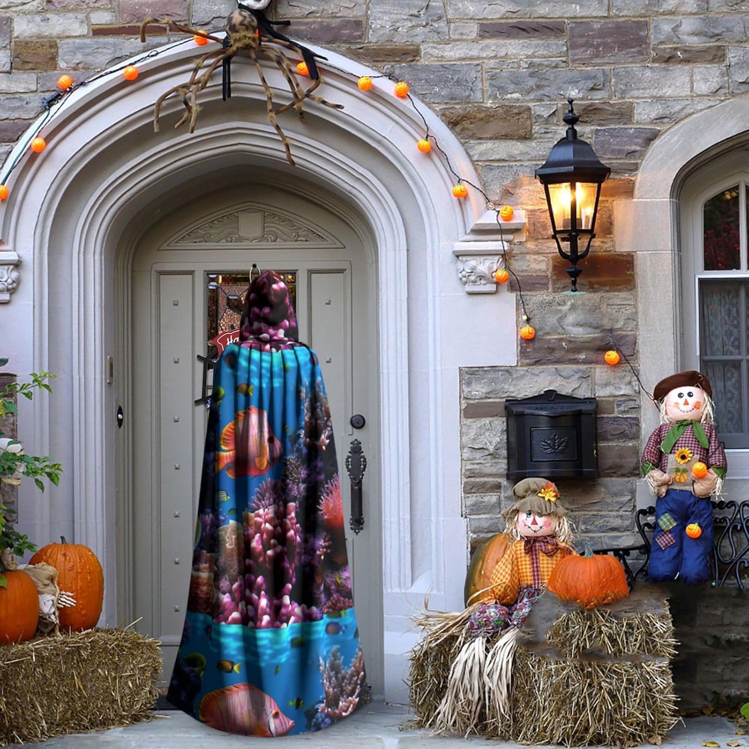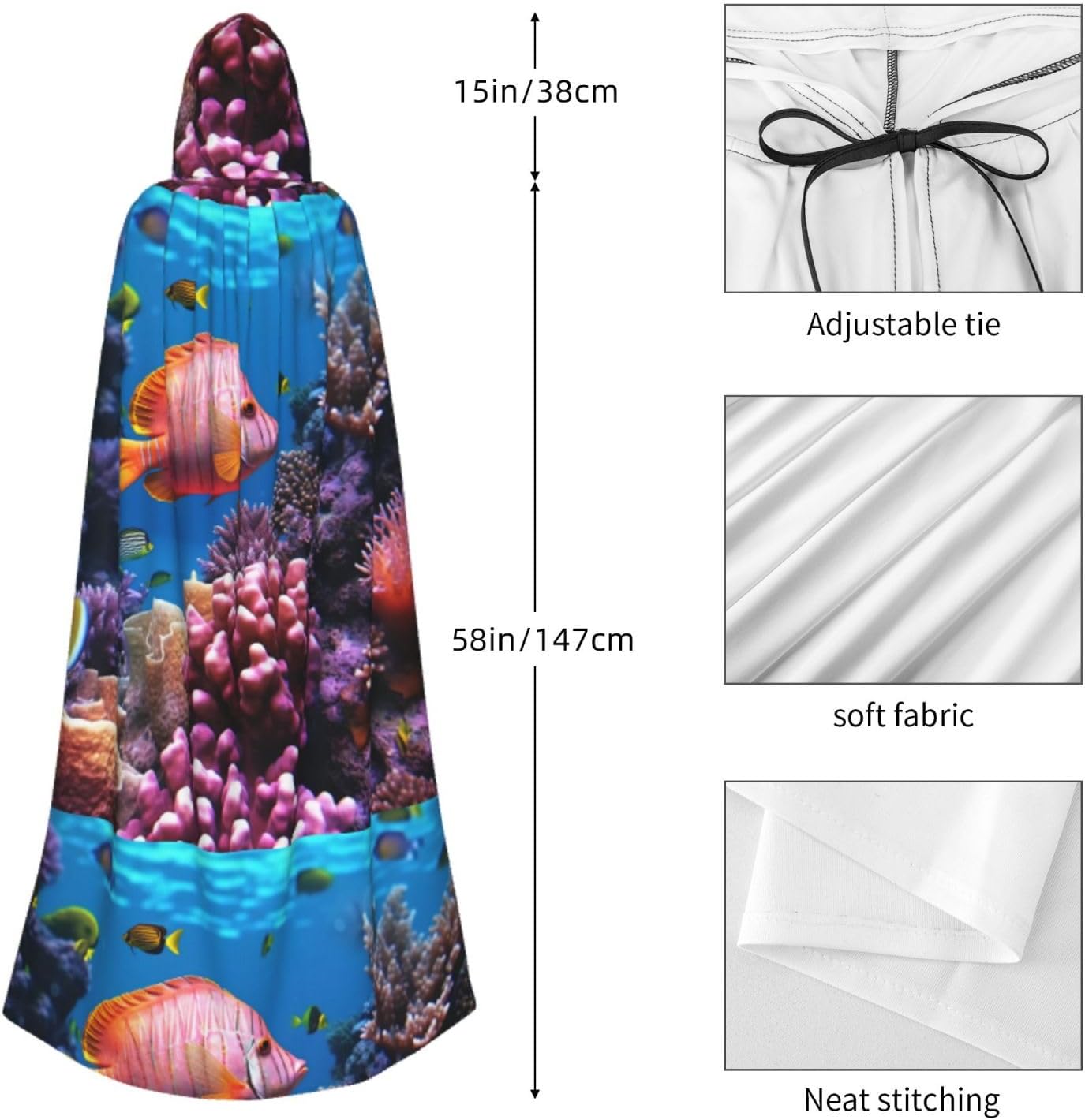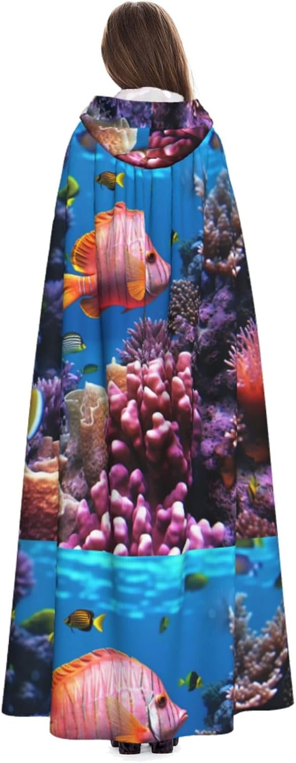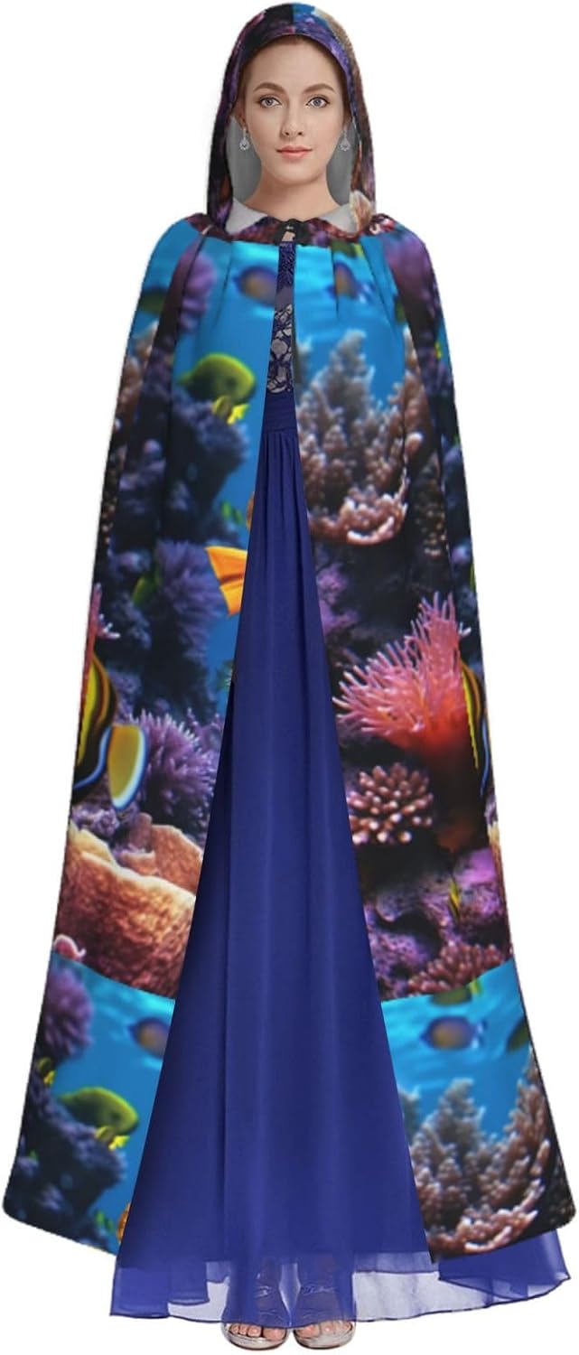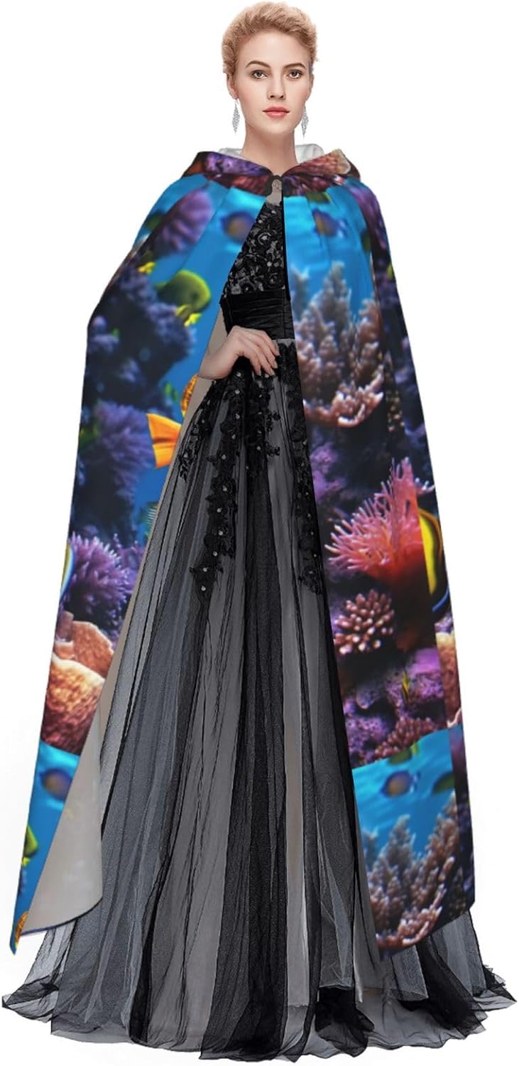 Mantello con cappuccio da strega mago di Halloween, mantello con cappuccio natalizio per cosplay, per adulti, uomini, donne, bomboniere, forniture per feste, vestiti, vestiti, costume - Pesce