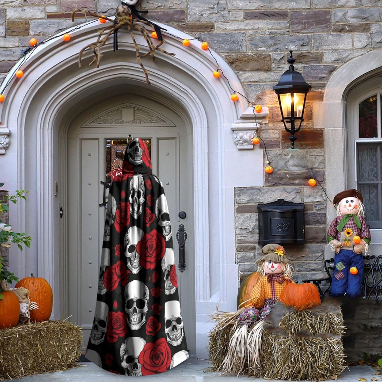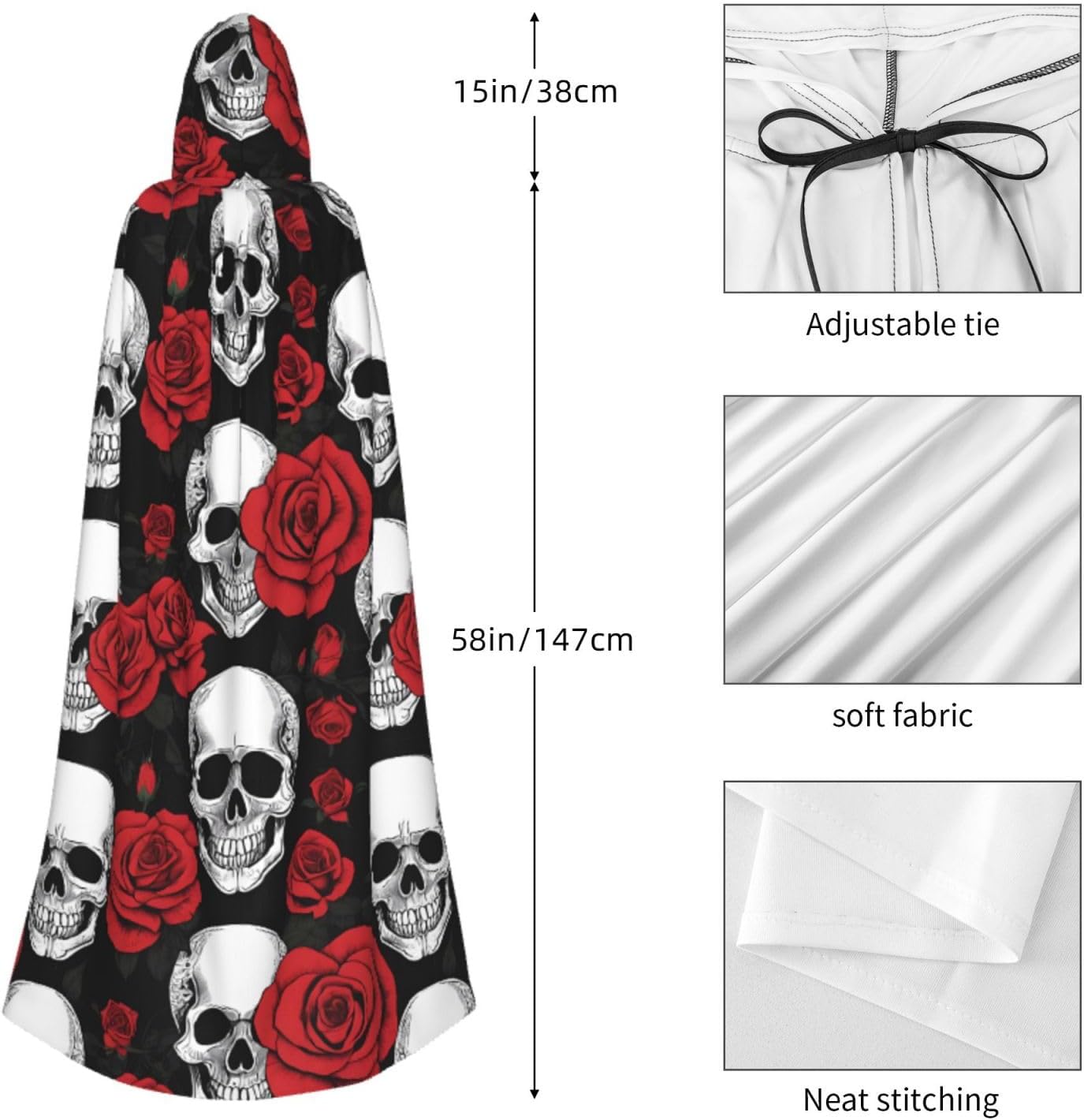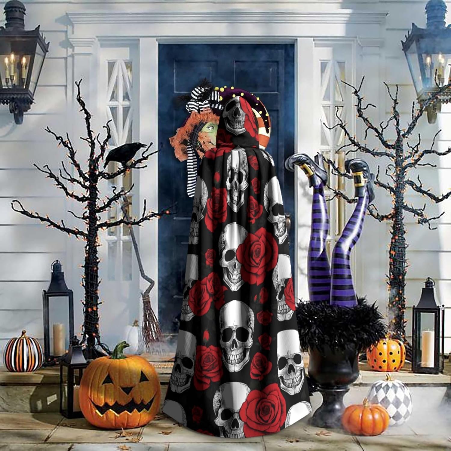 Mantello con cappuccio da strega mago di Halloween, mantello con cappuccio natalizio per cosplay, per adulti, uomini, donne, bomboniere, forniture per feste, vestiti, vestiti, costume - teschio