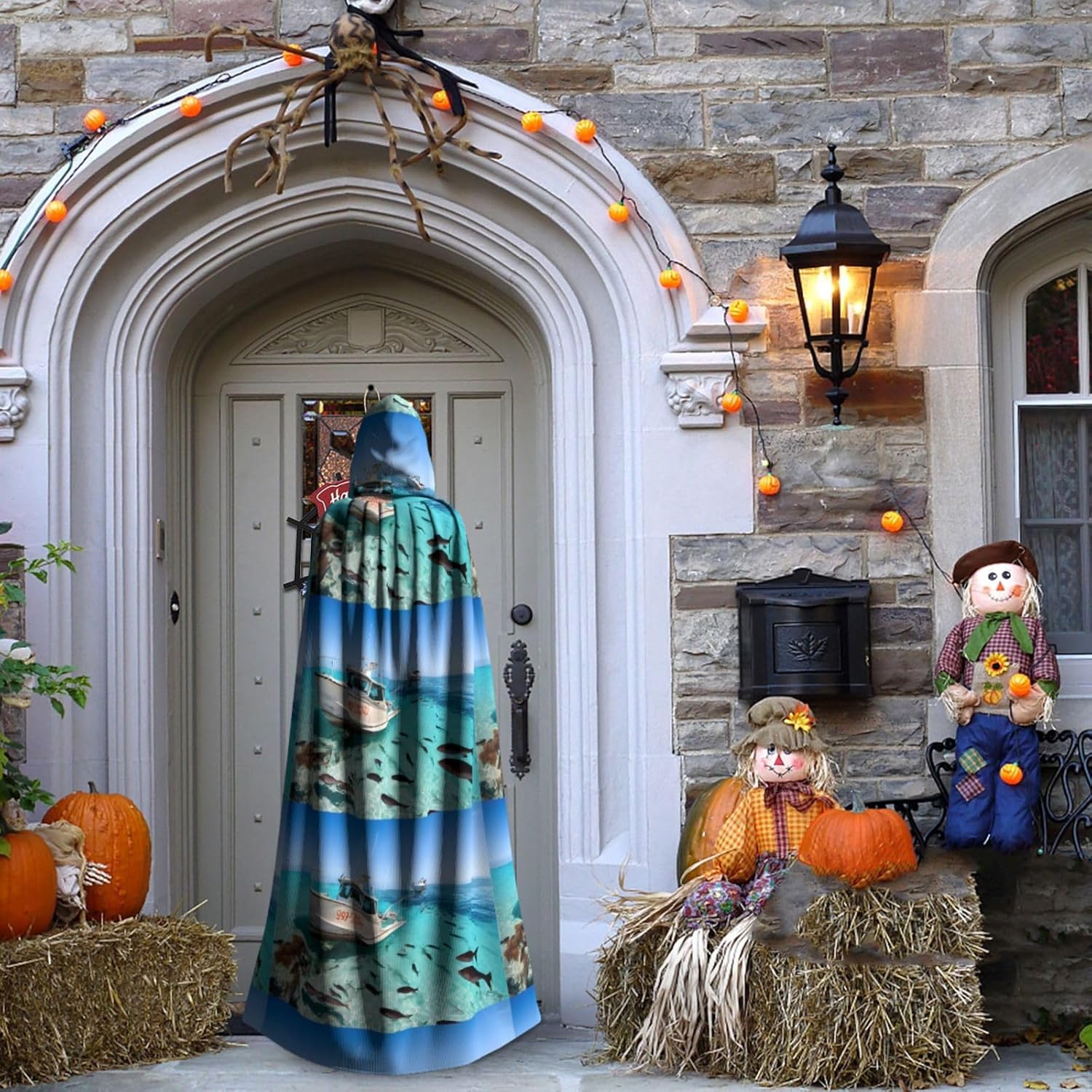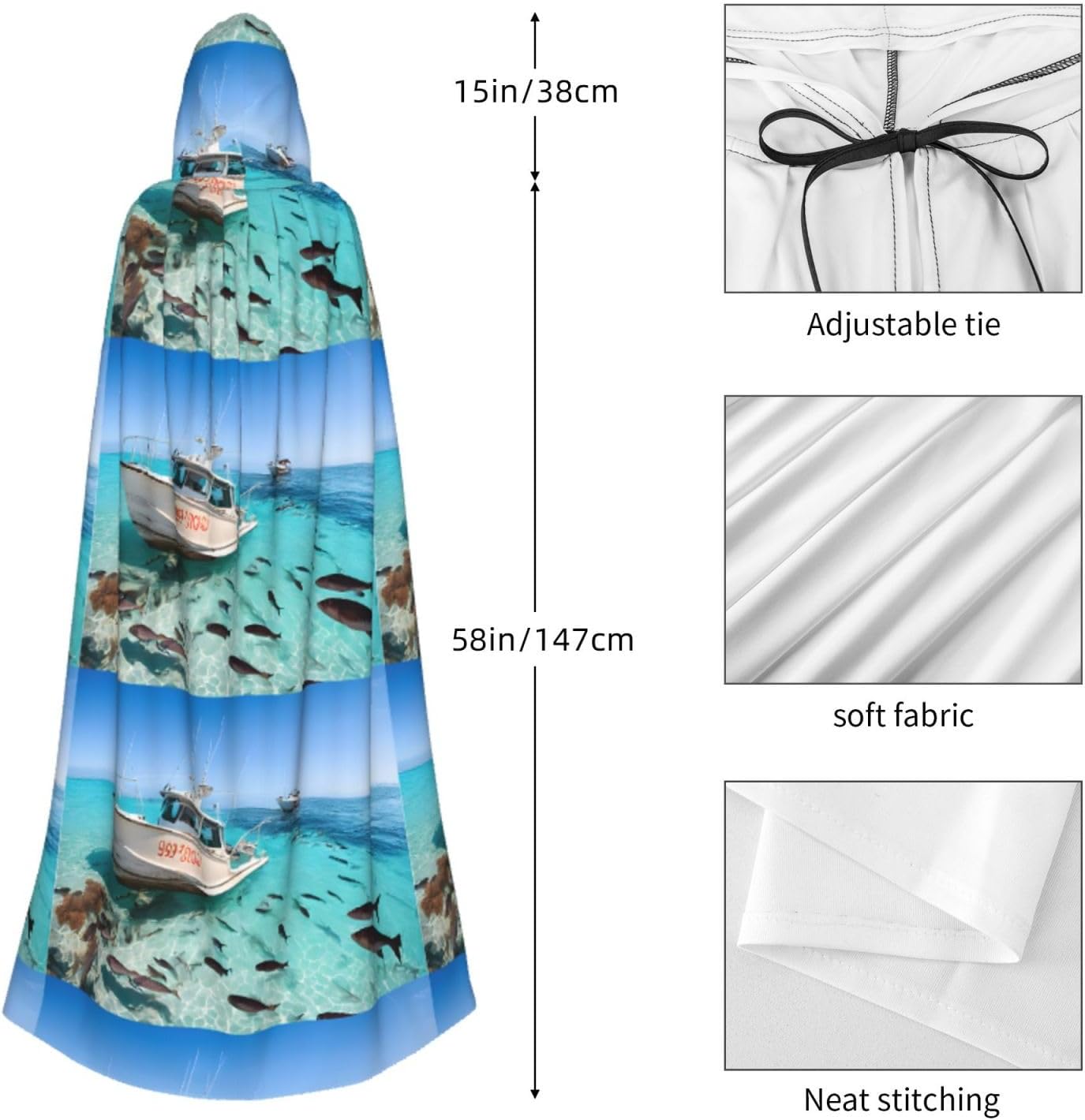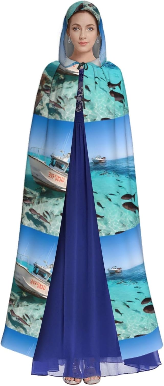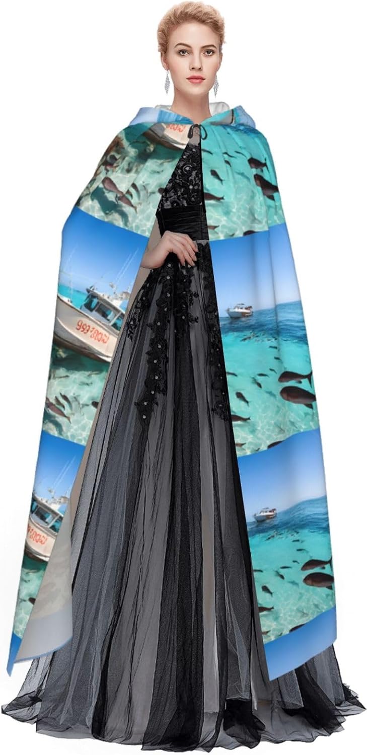 Mantello con cappuccio da strega mago di Halloween, mantello con cappuccio natalizio per cosplay, per adulti, uomini, donne, bomboniere, forniture per feste, vestiti, vestiti, costumi - Pesci