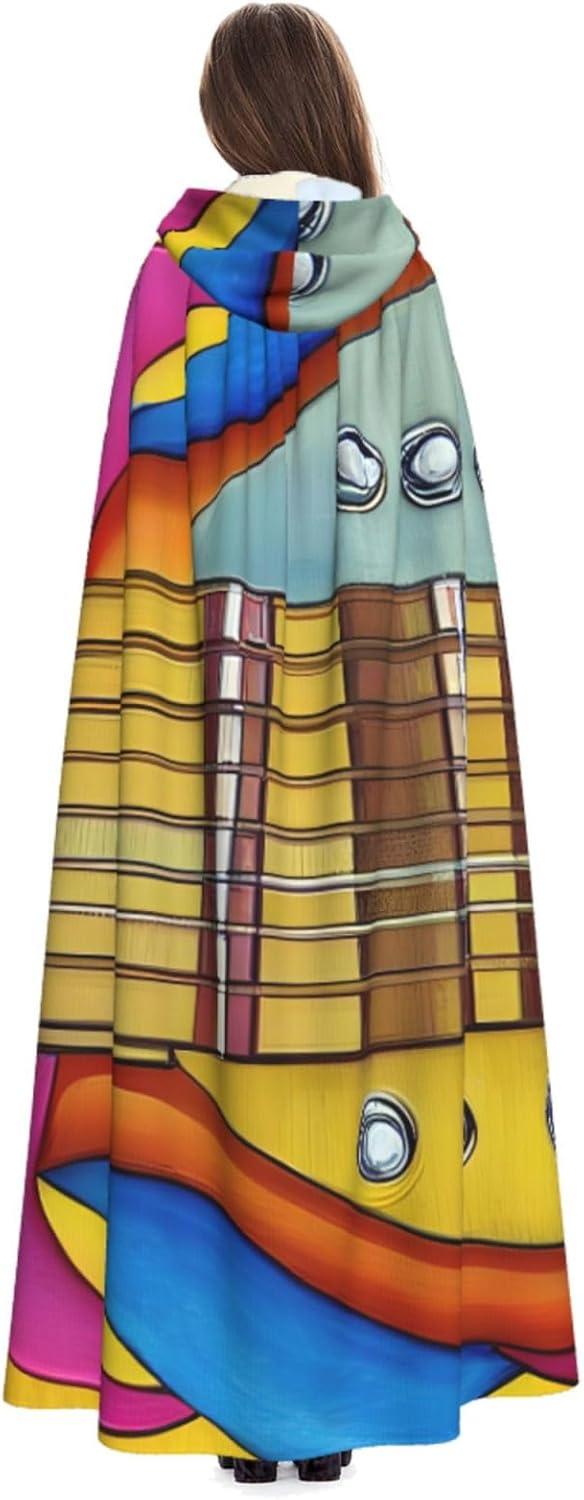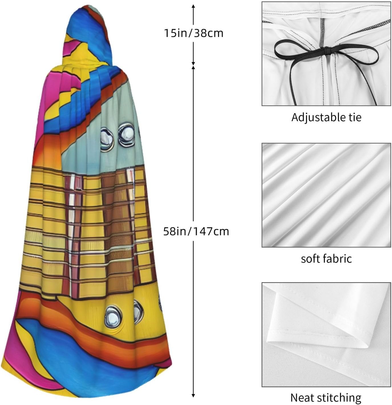 Il mantello con cappuccio per Halloween è realizzato con tessuto in poliestere morbido anche sulla pelle, prevenendo qualsiasi irritazione. Il mantello presenta un ampio cappuccio e uno stile annodato senza cerniere per un design sofisticato ed elegante. Con la sua dimensione universale, offre una copertura completa, adatta a tutti, assicurandoti di distinguerti tra la folla. Questo mantello con stampa a forma di chitarra artistica non è solo per Halloween; è abbastanza versatile per cosplay, spettacoli teatrali, balli in maschera, feste a tema e molto altro ancora.