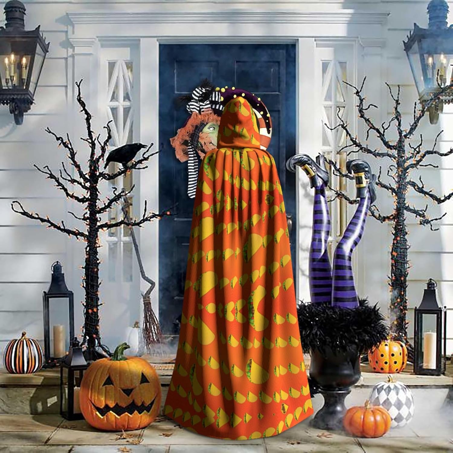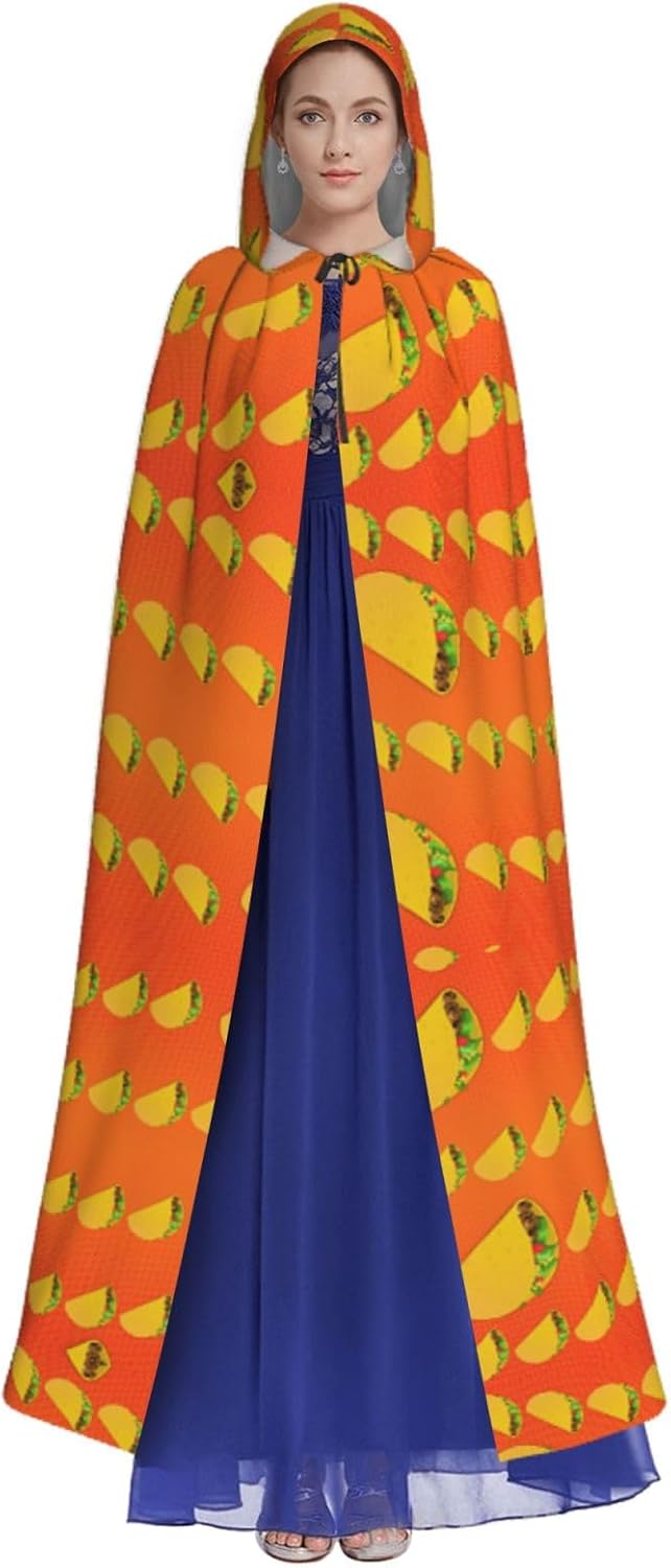 Il mantello con cappuccio per Halloween è realizzato con tessuto in poliestere morbido anche sulla pelle, prevenendo qualsiasi irritazione. Il mantello presenta un ampio cappuccio e uno stile annodato senza cerniere per un design sofisticato ed elegante. Con la sua dimensione universale, offre una copertura completa, adatta a tutti, assicurandoti di distinguerti tra la folla. Questo mantello con stampa divertente con motivo alimentare non è solo per Halloween; è abbastanza versatile per cosplay, spettacoli teatrali, balli in maschera, feste a tema e molto altro ancora.