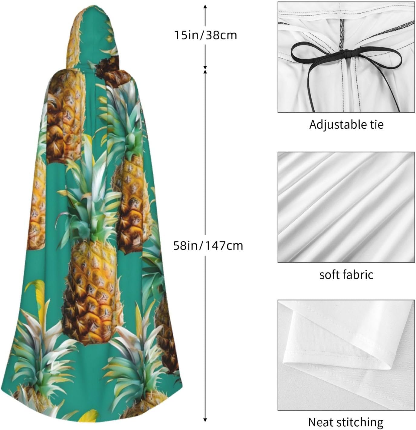 Il mantello con cappuccio per Halloween è realizzato con tessuto in poliestere morbido anche sulla pelle, prevenendo qualsiasi irritazione. Il mantello presenta un ampio cappuccio e uno stile annodato senza cerniere per un design sofisticato ed elegante. Con la sua dimensione universale, offre una copertura completa, adatta a tutti, assicurandoti di distinguerti tra la folla. Questo mantello tropicale con stampa hawaiana ananas non è solo per Halloween; è abbastanza versatile per cosplay, spettacoli teatrali, balli in maschera, feste a tema e molto altro ancora.