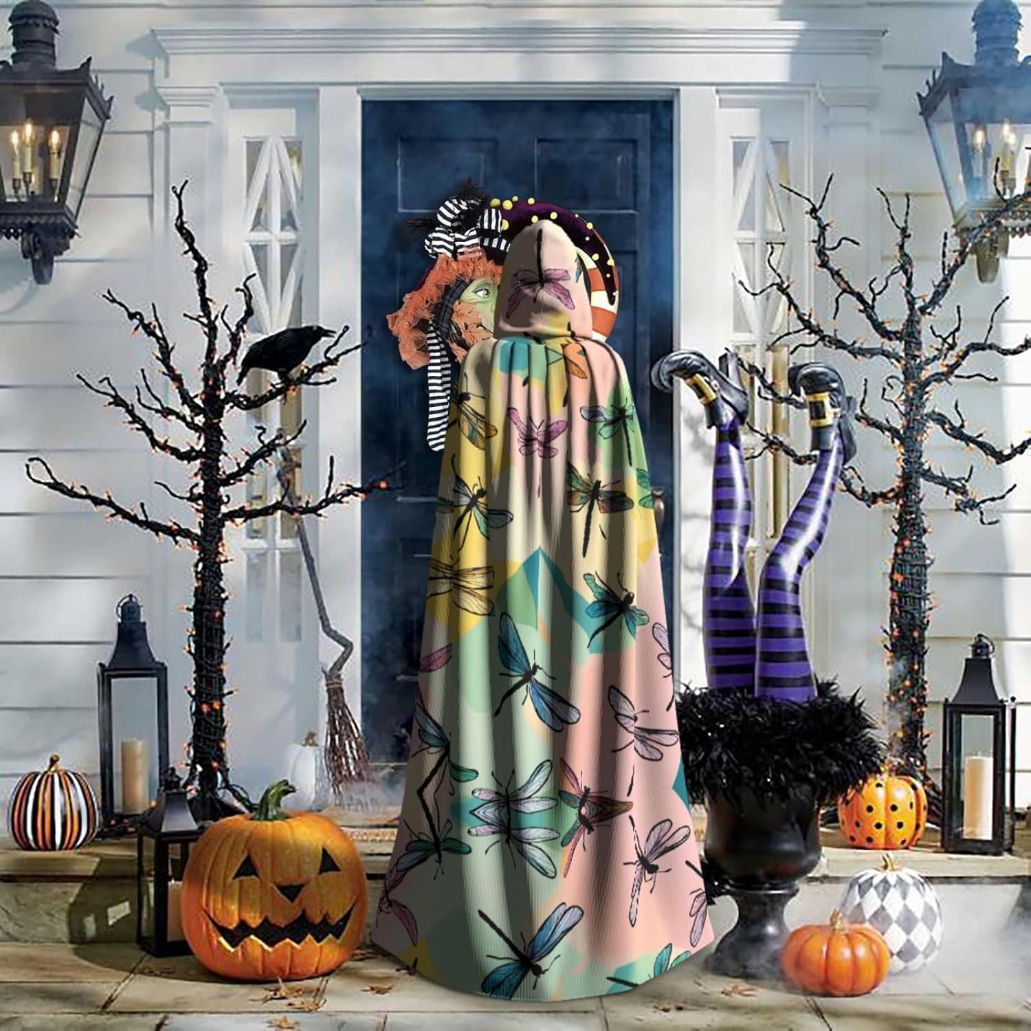 Il mantello con cappuccio per Halloween è realizzato con tessuto in poliestere morbido anche sulla pelle, prevenendo qualsiasi irritazione. Il mantello presenta un ampio cappuccio e uno stile annodato senza cerniere per un design sofisticato ed elegante. Con la sua dimensione universale, offre una copertura completa, adatta a tutti, assicurandoti di distinguerti tra la folla. Questo mantello con stampa libellula non è solo per Halloween; è abbastanza versatile per cosplay, spettacoli teatrali, balli in maschera, feste a tema e molto altro ancora.