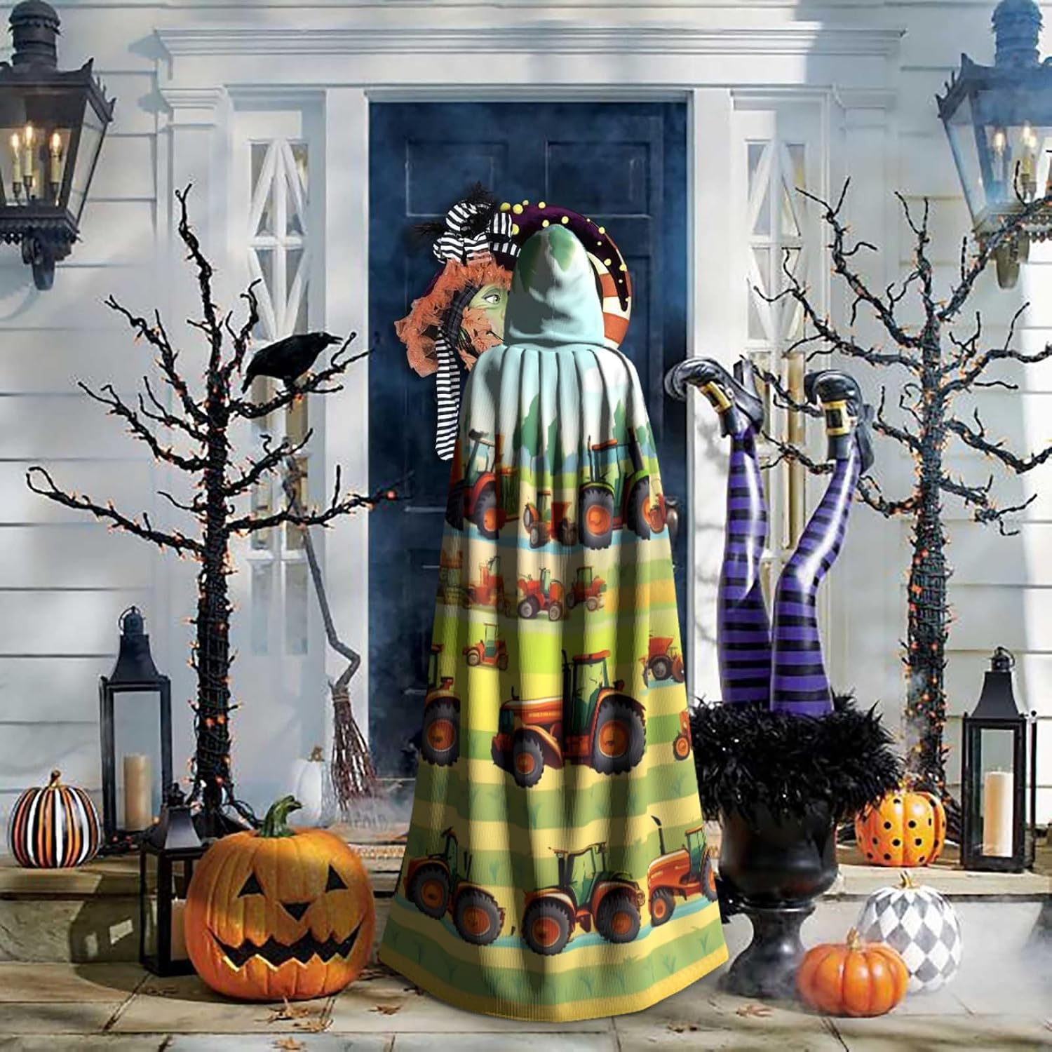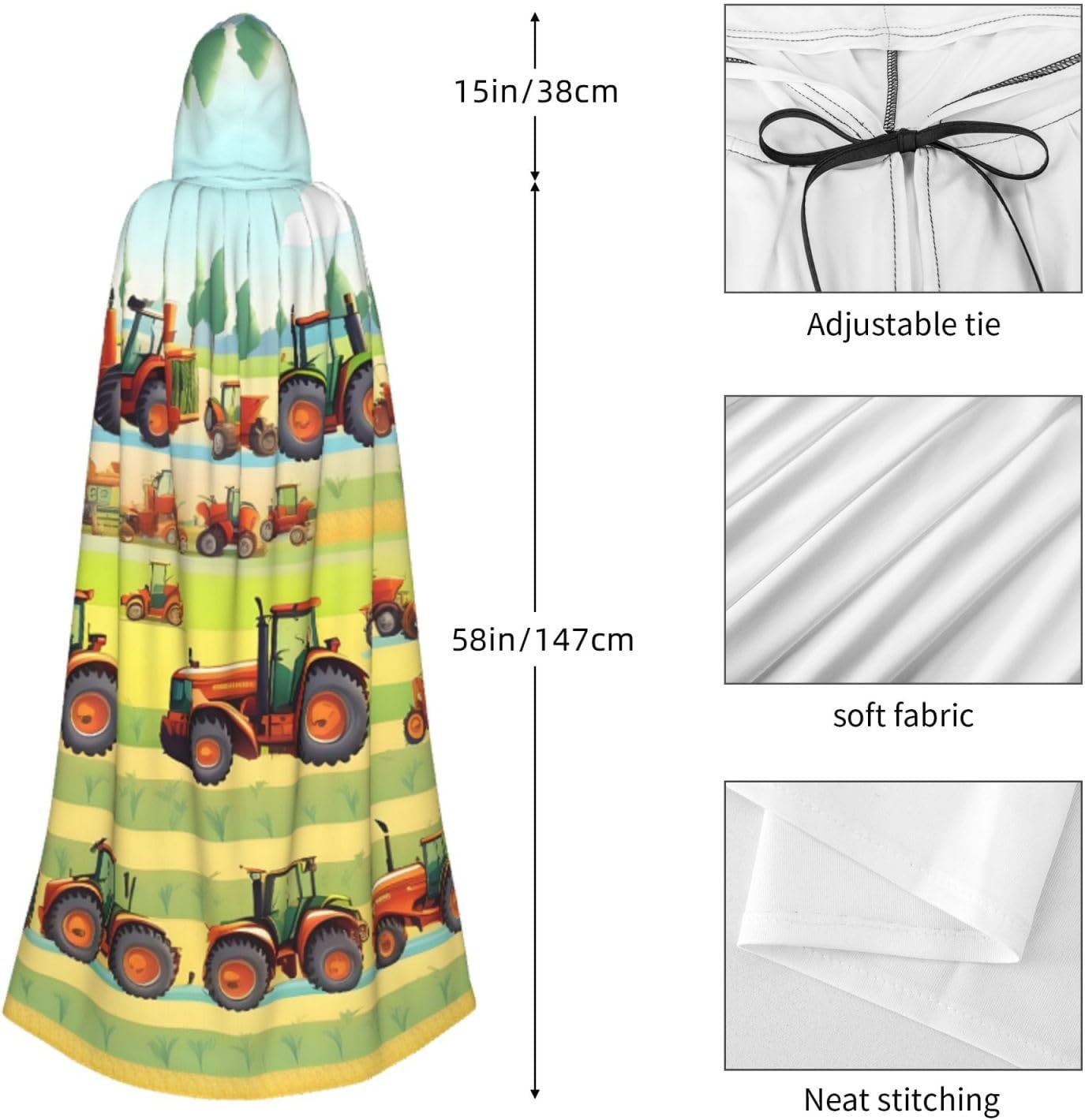 Il mantello con cappuccio per Halloween è realizzato con tessuto in poliestere morbido anche sulla pelle, prevenendo qualsiasi irritazione. Il mantello presenta un ampio cappuccio e uno stile annodato senza cerniere per un design sofisticato ed elegante. Con la sua dimensione universale, offre una copertura completa, adatta a tutti, assicurandoti di distinguerti tra la folla. Questo mantello con stampa trattore agricolo non è solo per Halloween; è abbastanza versatile per cosplay, spettacoli teatrali, balli in maschera, feste a tema e molto altro ancora.